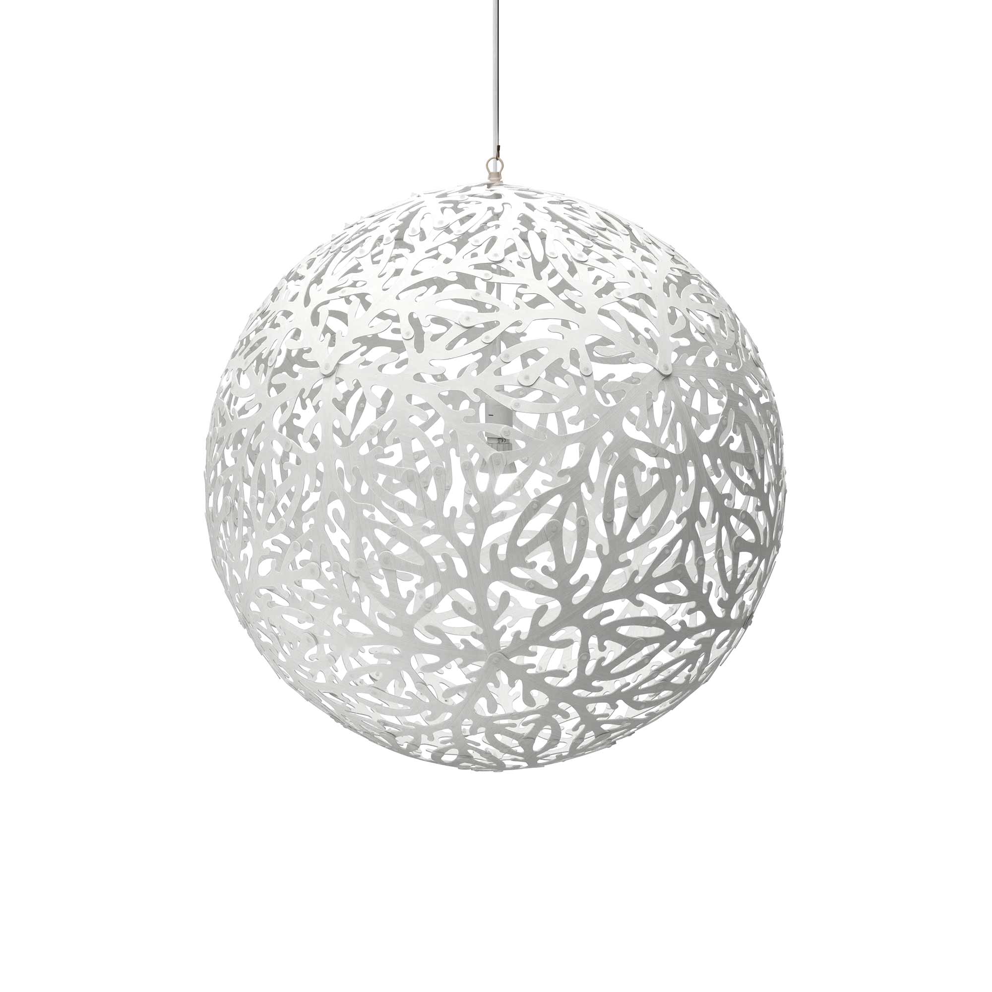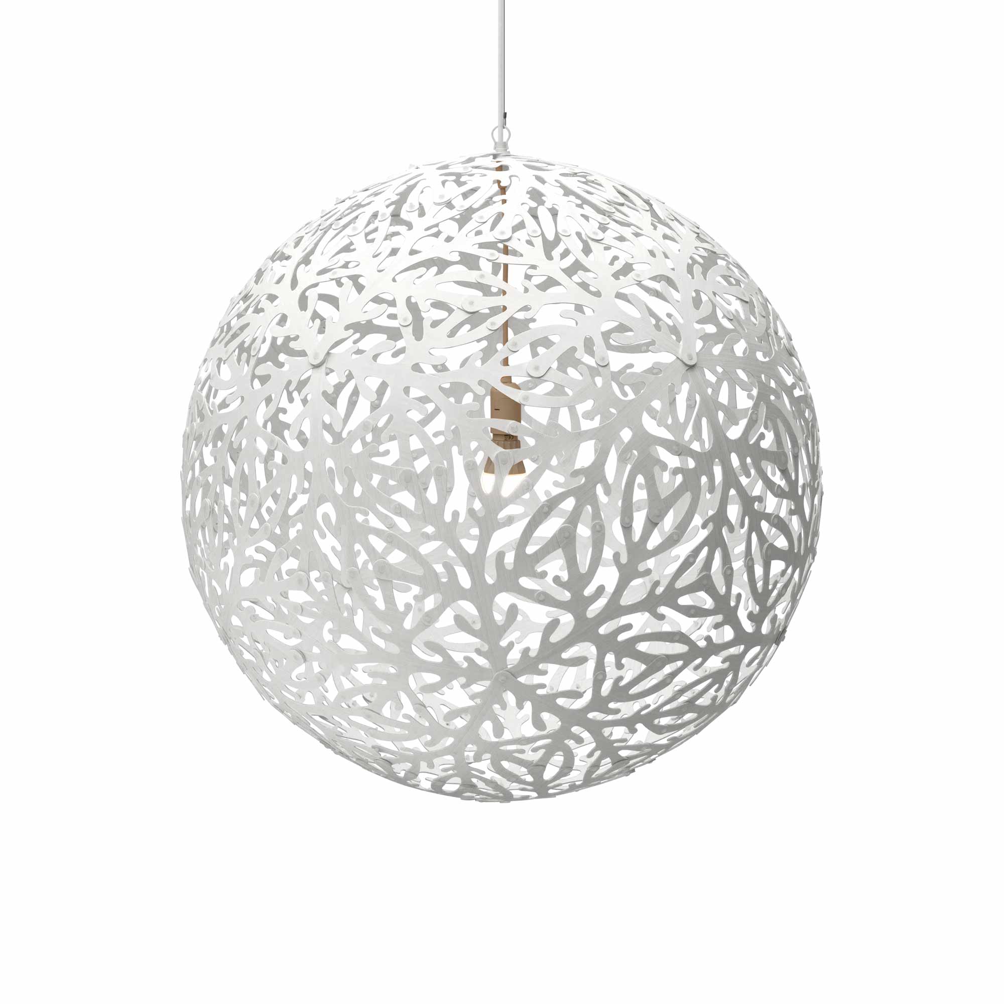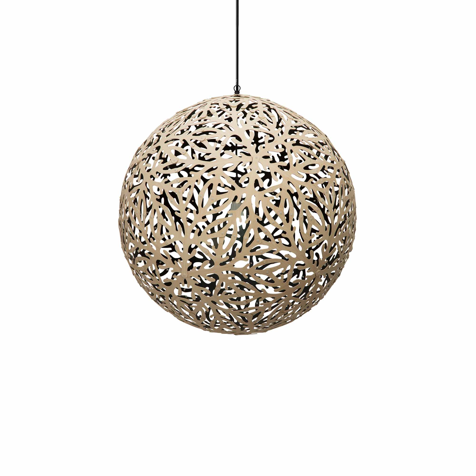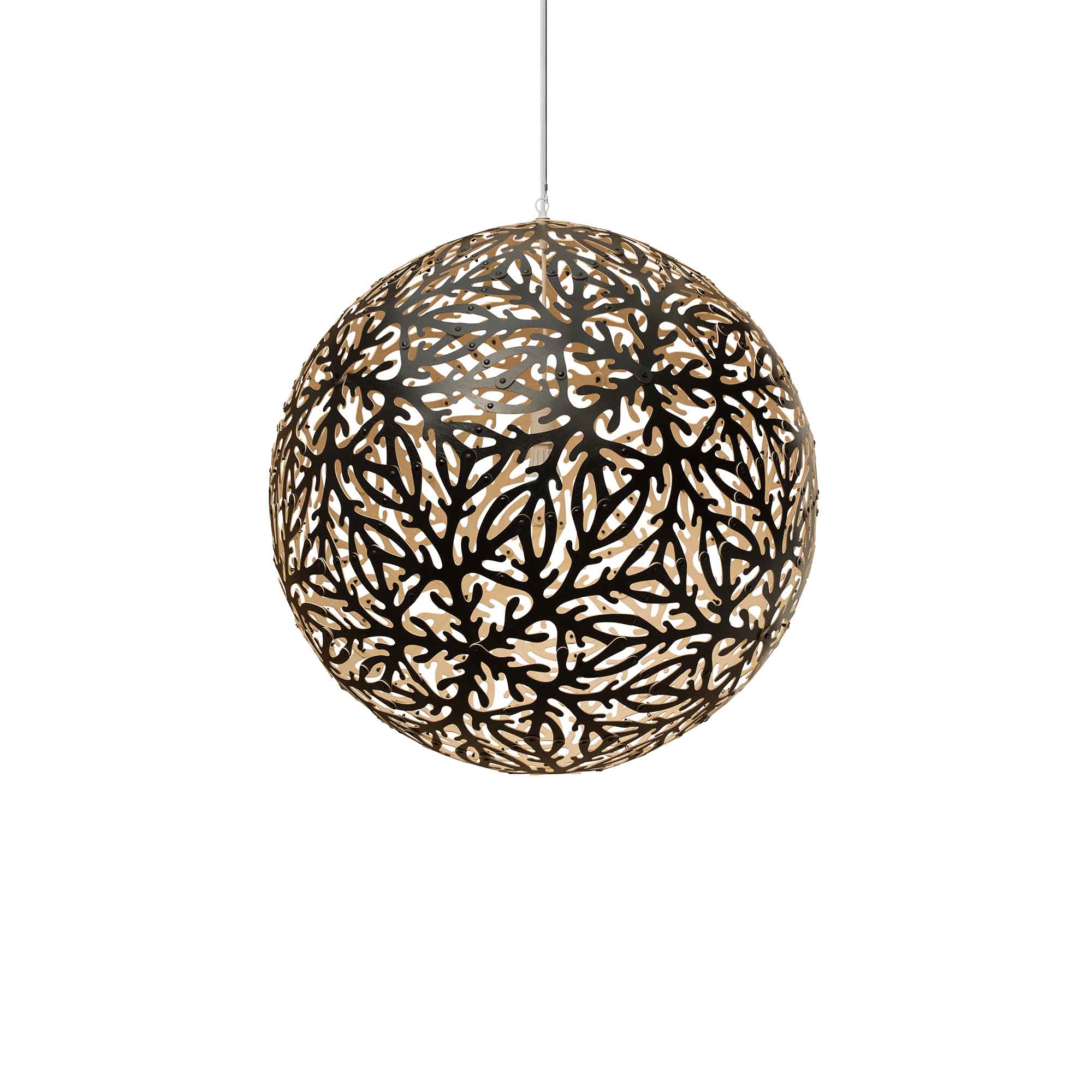 Highly decorative, the Sola Pendant Light from David Trubridge is constructed of intricate, intertwined fronds that spill light to create engaging, artistic shadow patterns across a foyer or dining room. Its orb silhouette introduces a sense of balance and symmetry to its complex, geometric structure.