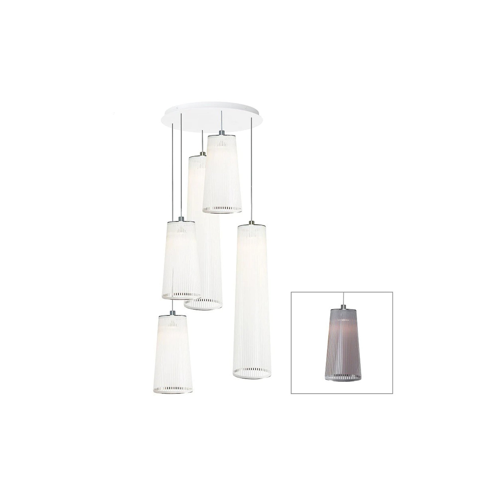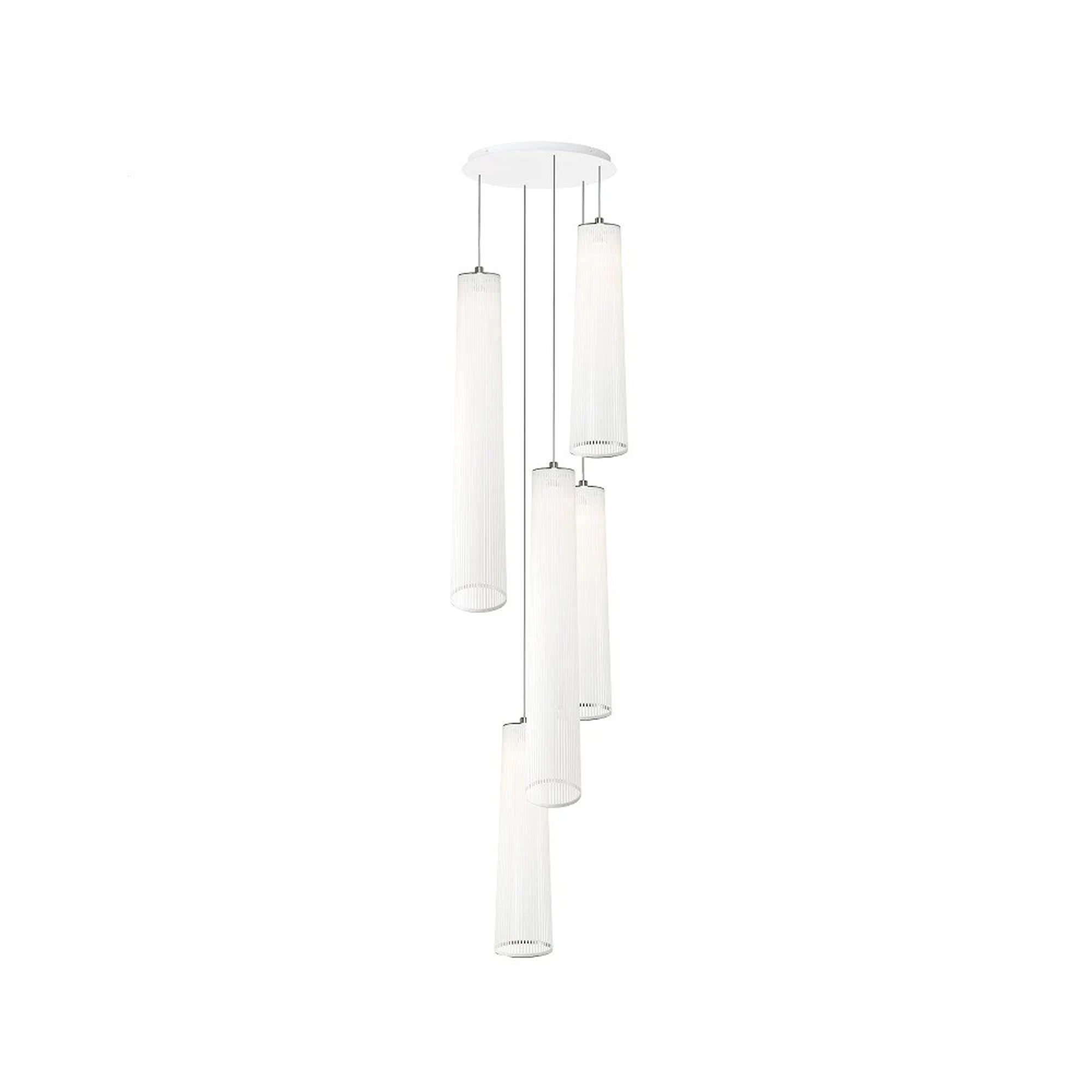 An embellished sense of conventional style yields simple yet upscale elegance in a light fixture with Solis Chandelier from Pablo. Relish the decadence and delicacy of dangling white glass luminaires in a graduated arrangement, adding a visual enticement that captures attention in a contemporary setting.