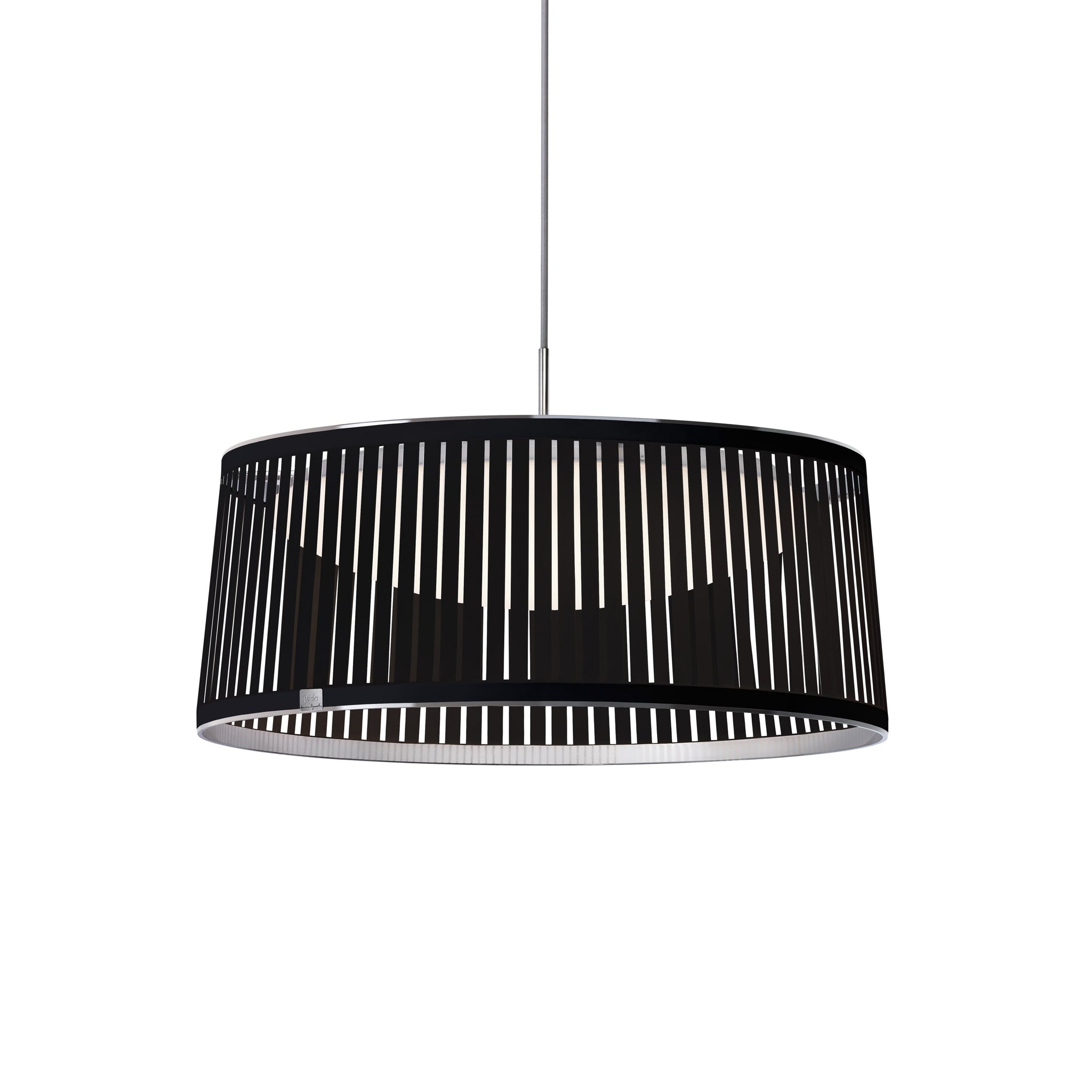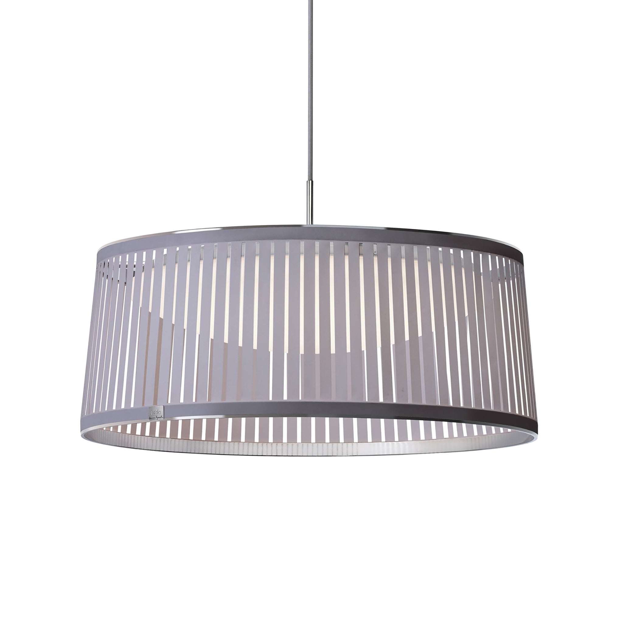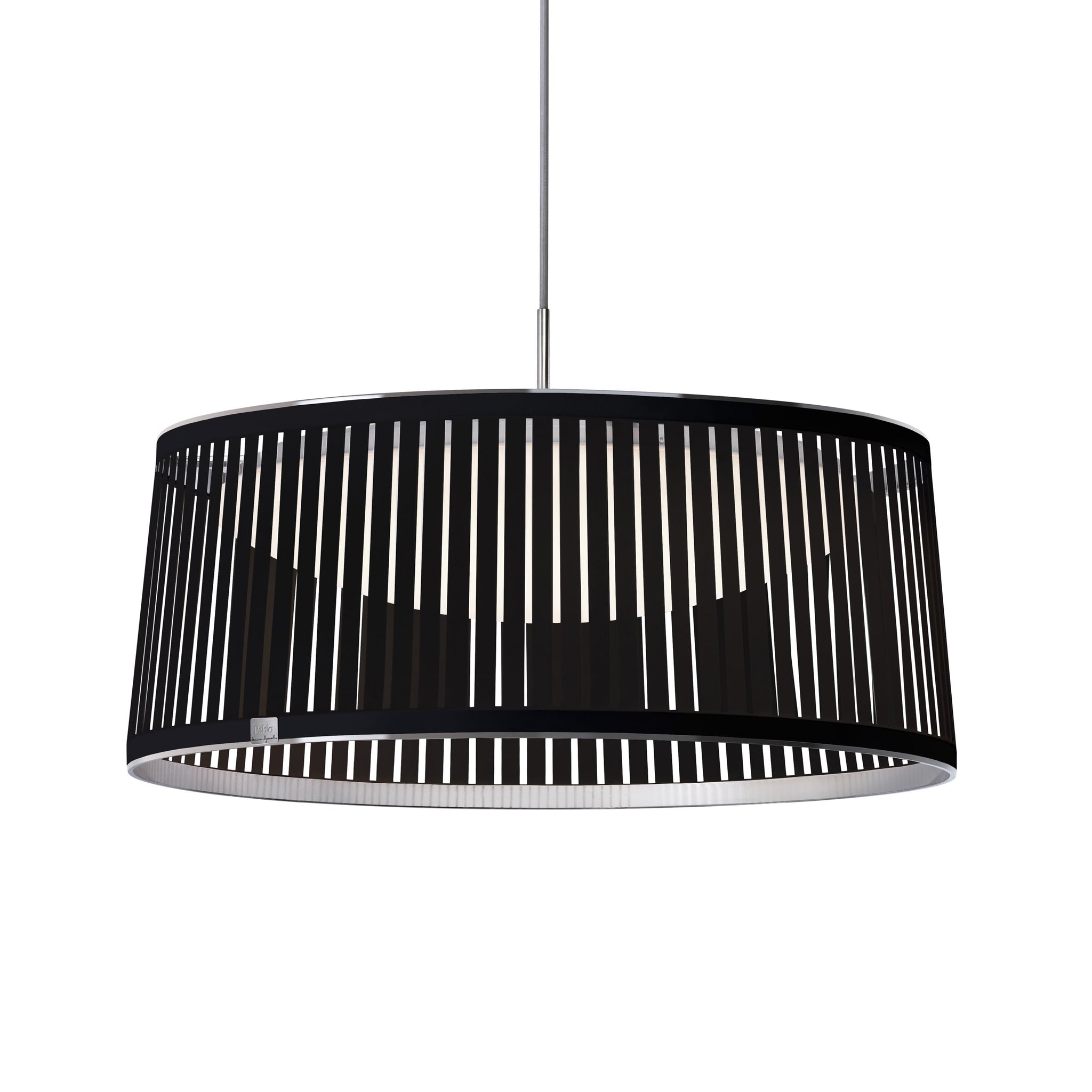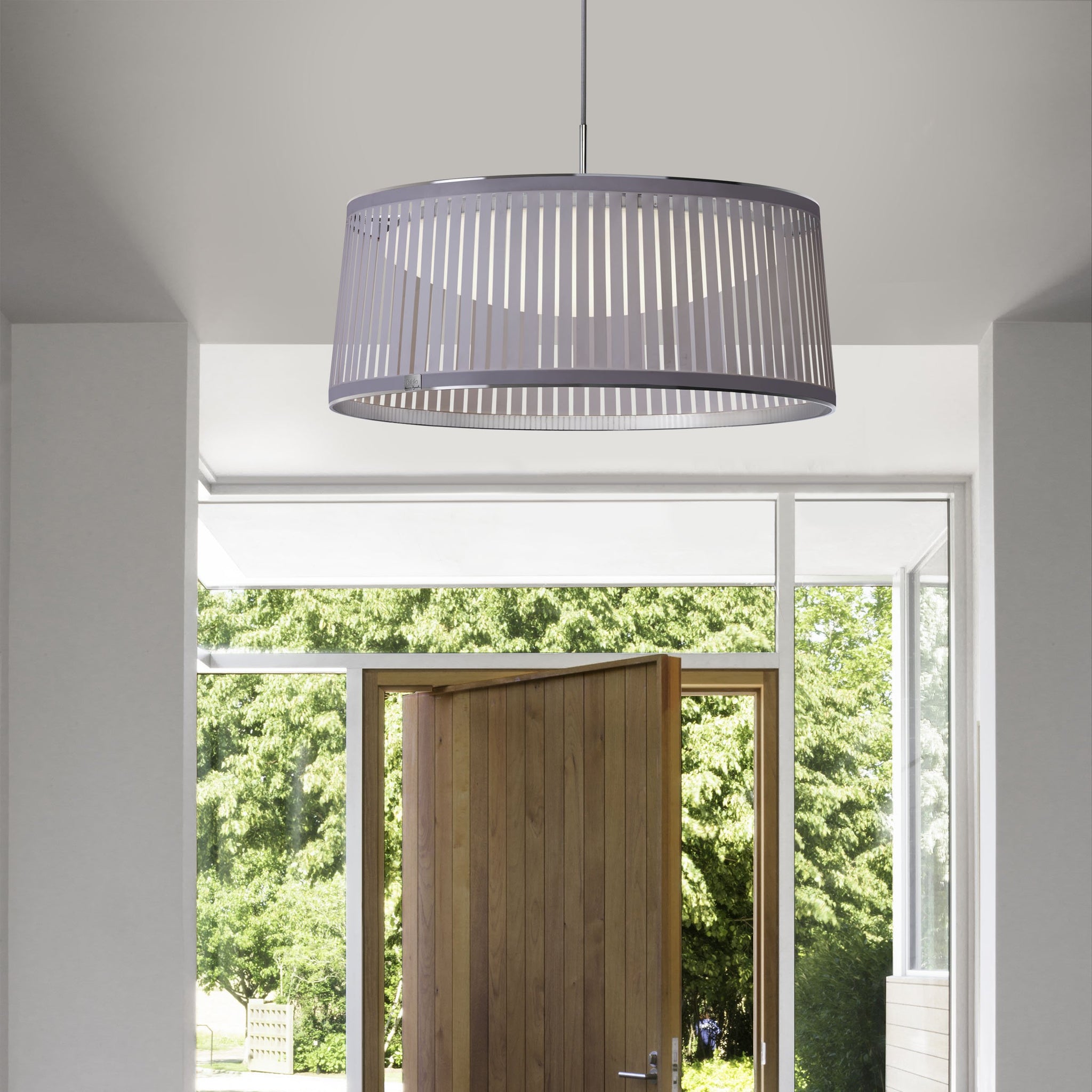 Take it to the next step as you embellish contemporary design schemes, choosing a light fixture that speaks to custom artisanal style. The Solis LED Drum Pendant Light from Pablo offers a hybrid contemporary and industrial look with simplicity. Laser cut fabric strips create interesting lighting effects, as a host of choices allow for the perfect finish and size.