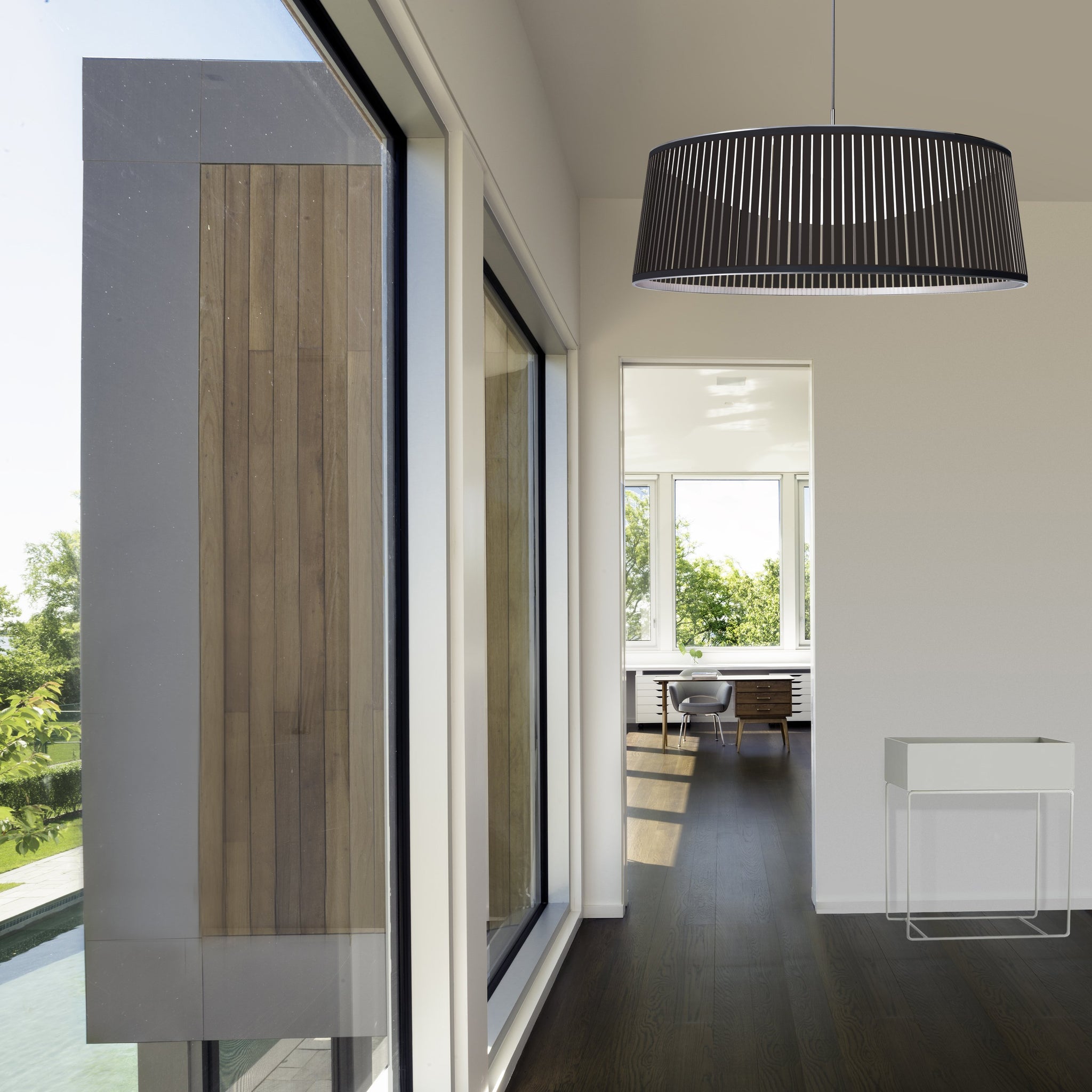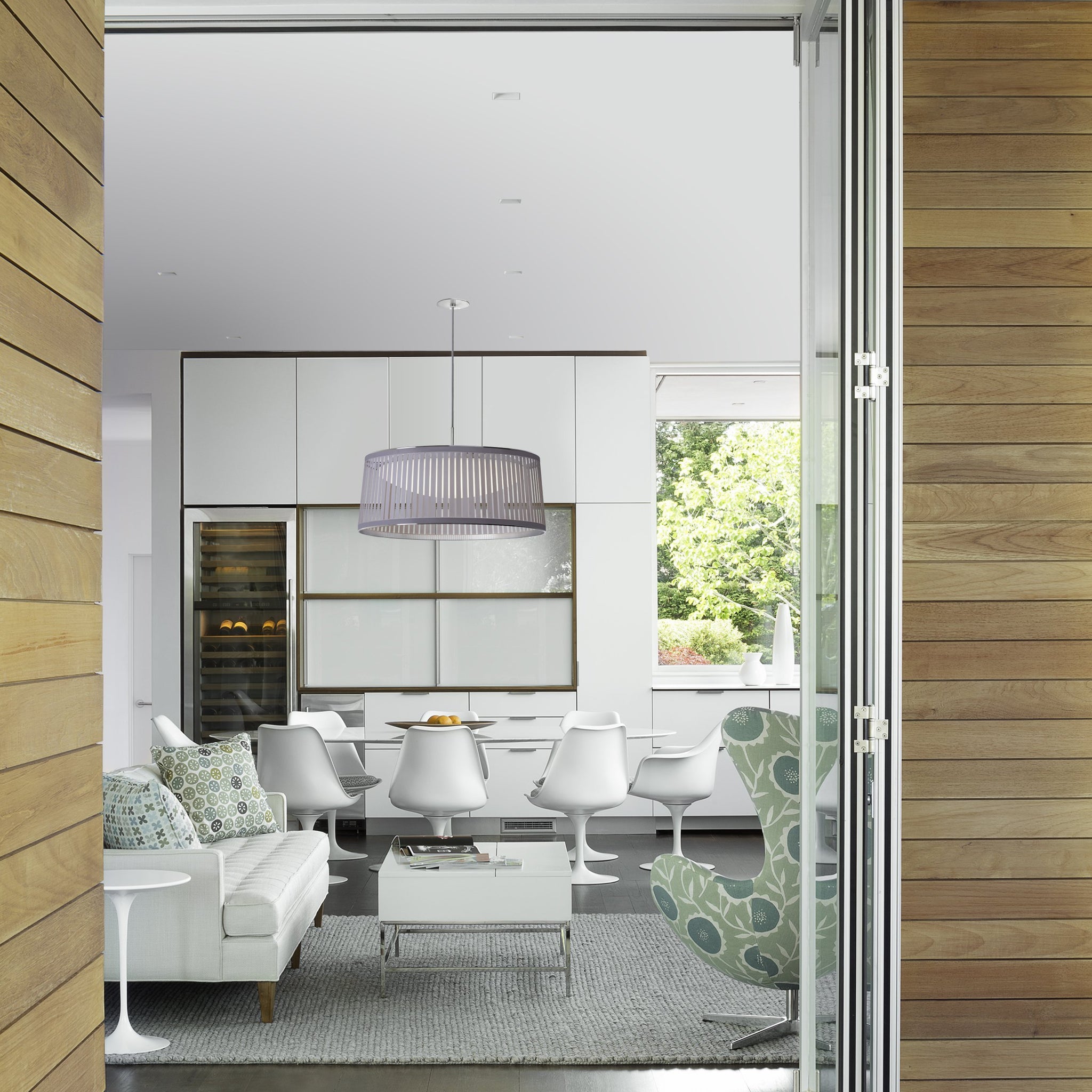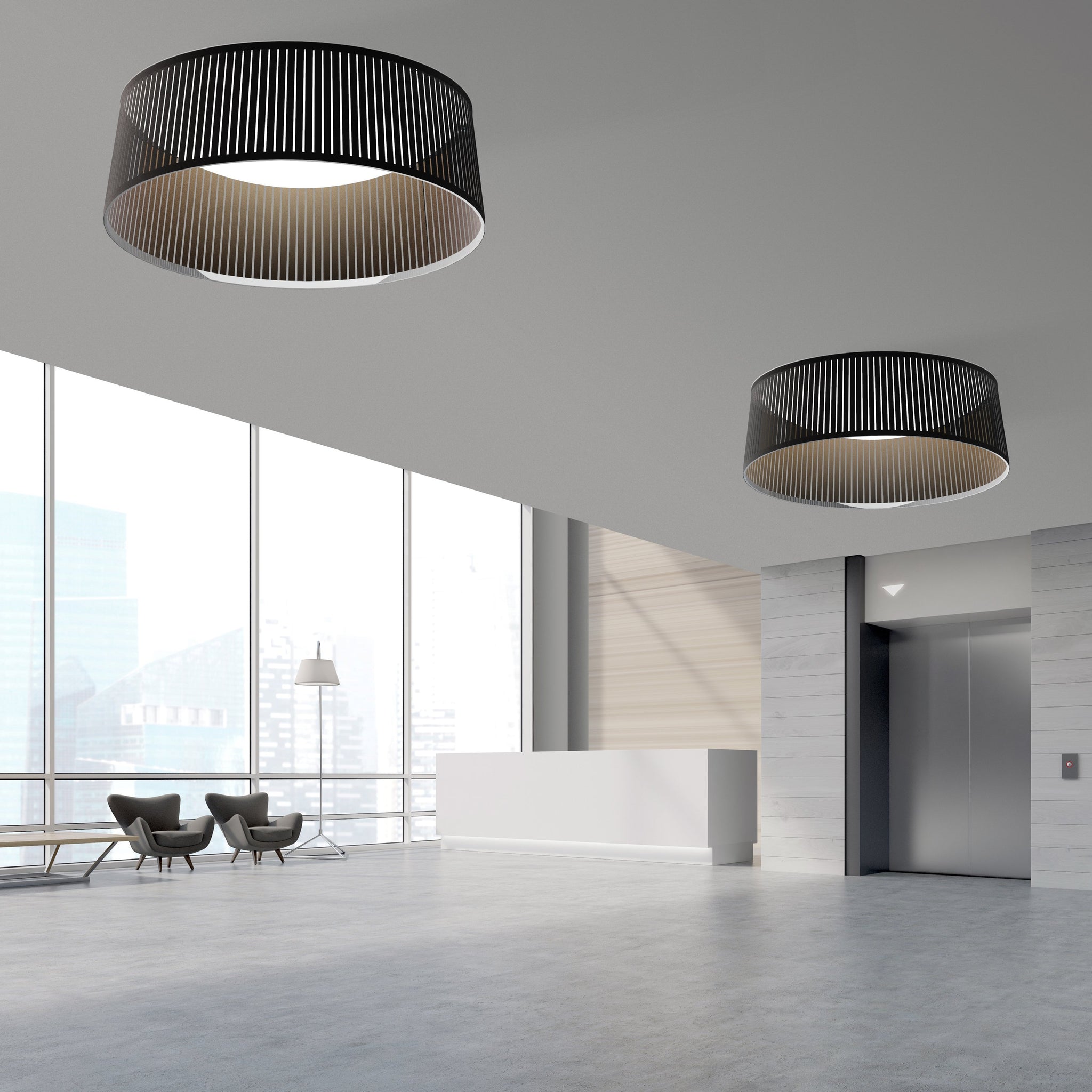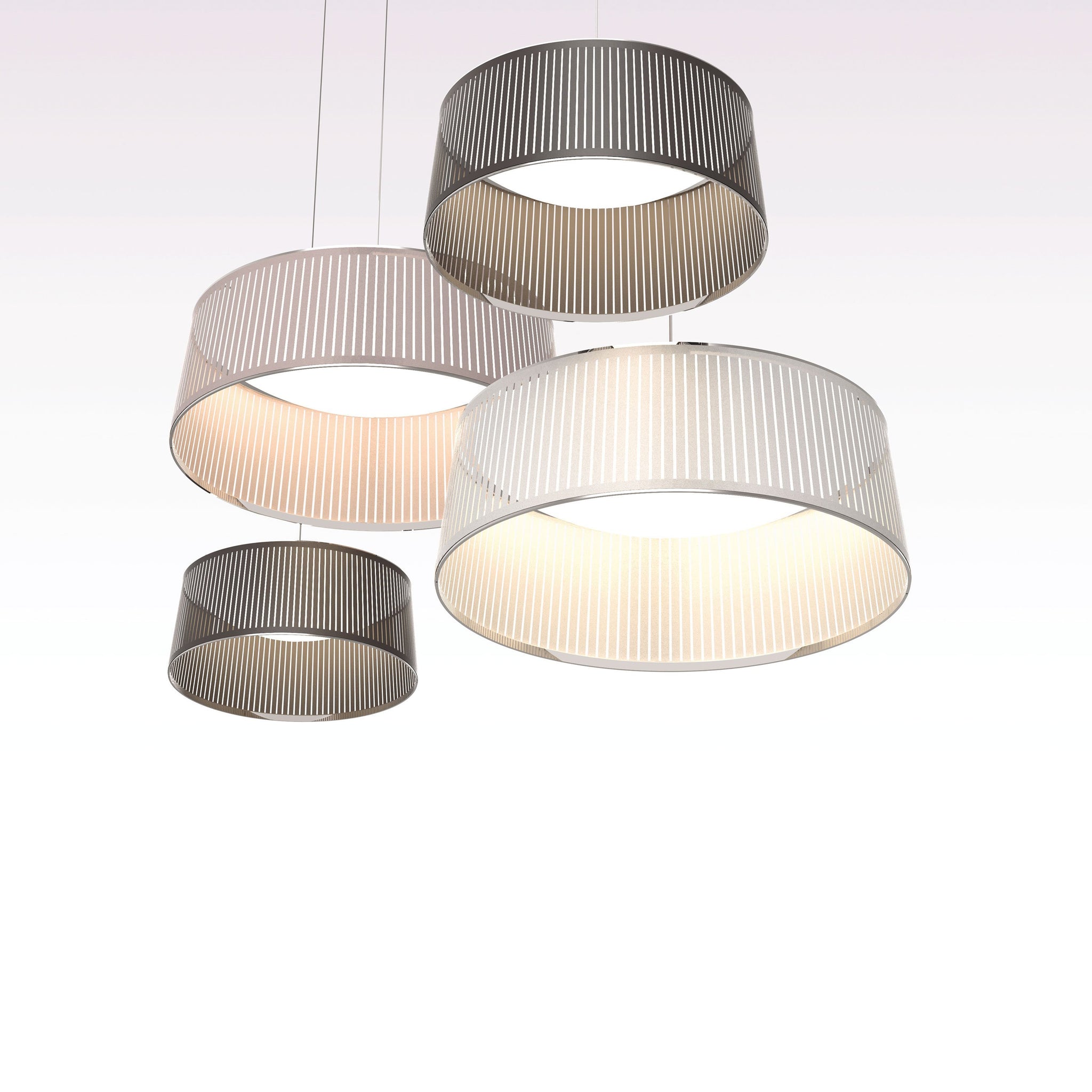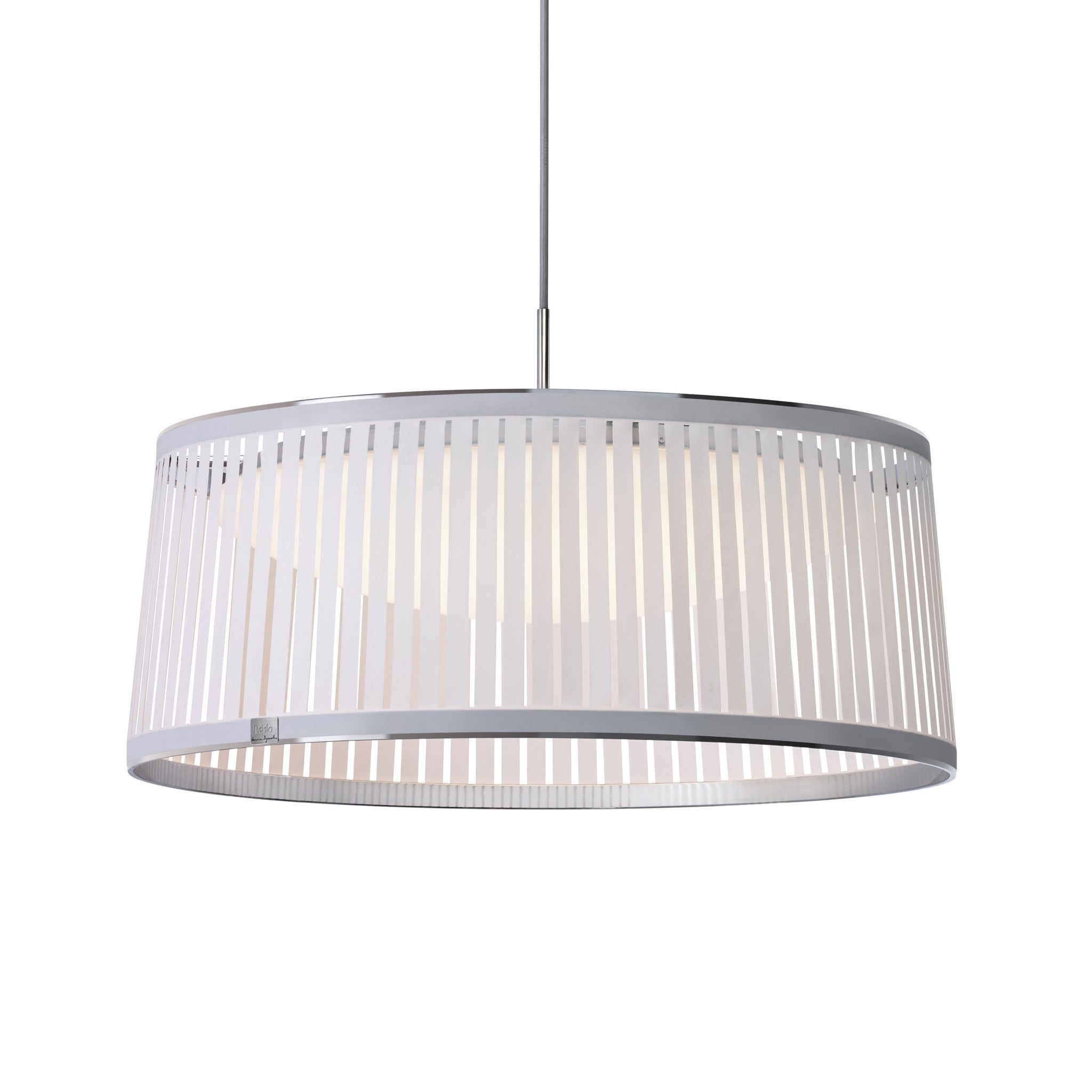 Take it to the next step as you embellish contemporary design schemes, choosing a light fixture that speaks to custom artisanal style. The Solis LED Drum Pendant Light from Pablo offers a hybrid contemporary and industrial look with simplicity. Laser cut fabric strips create interesting lighting effects, as a host of choices allow for the perfect finish and size.