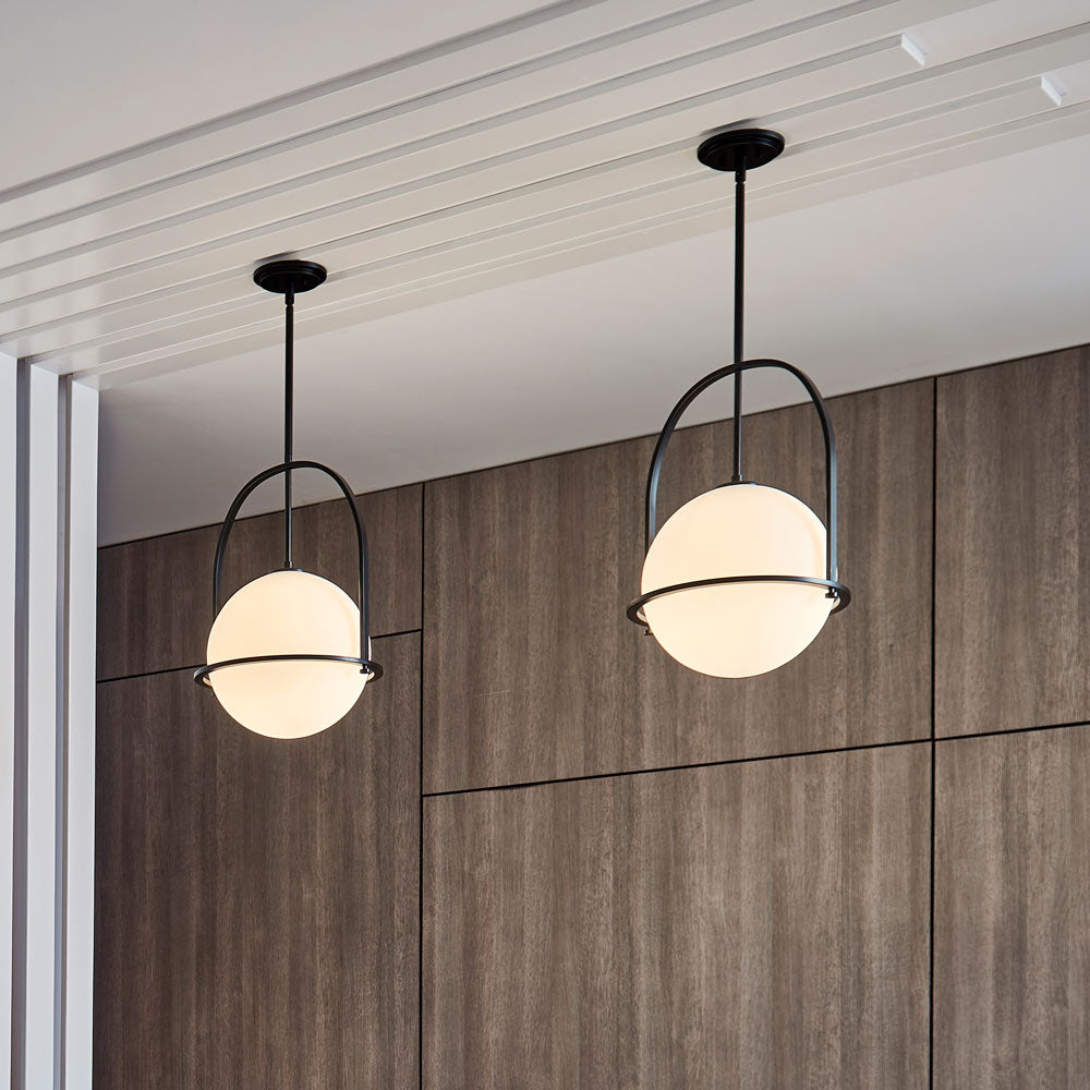 Chic and elegant, the Somerset collection exudes a quiet and precise sophistication. Subtly fusing modernity with vintage appeal, its etched opal glass deftly floats inside a streamlined metal yoke and ring while understated turned metal knobs add an authentic edge.