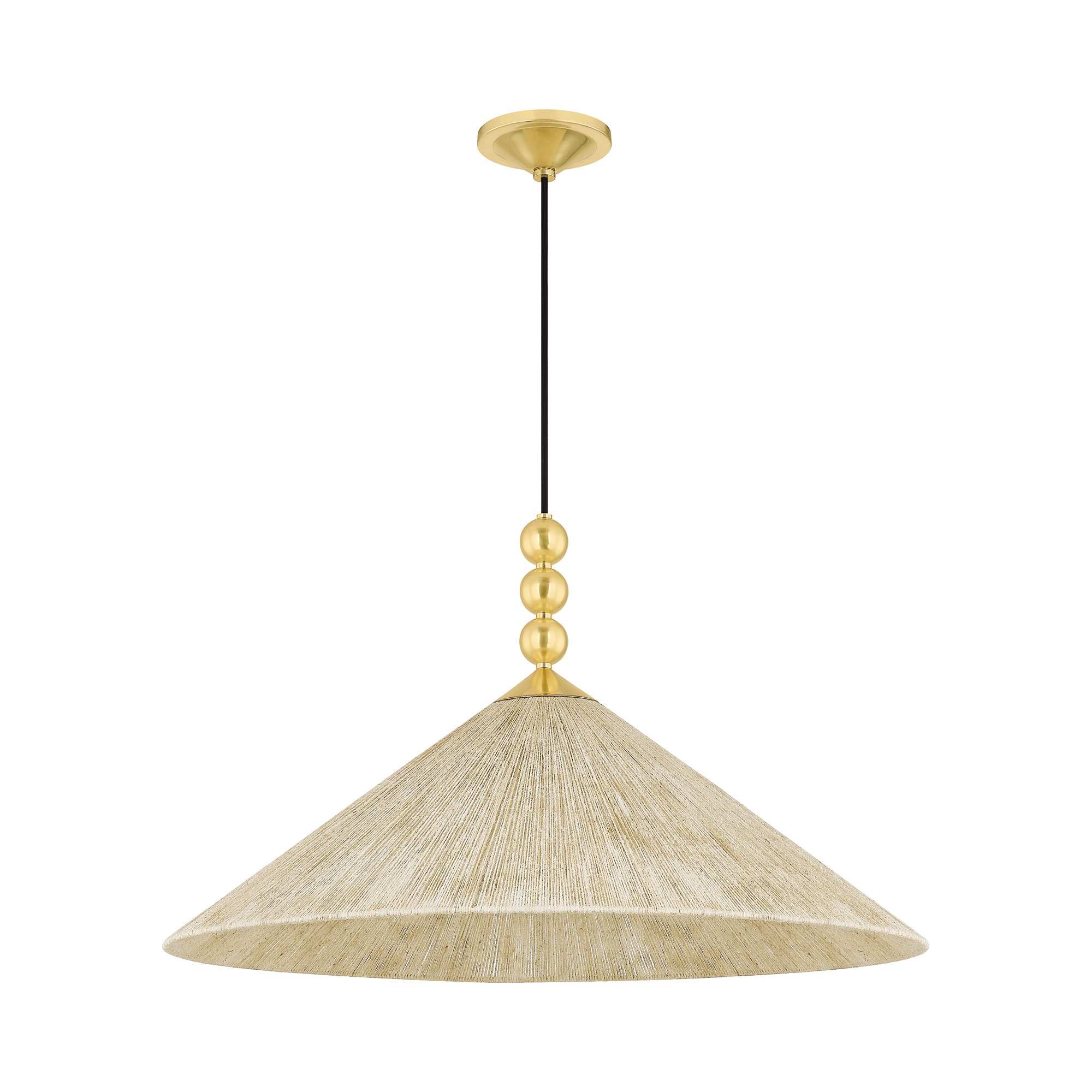 Put musicality to an exotic reach with a decadent light fixture designed around a commitment to nature. Organic and glam-inspired, the Song Pendant Light from Mitzi reflects an even balance between bejeweled artistry and island influence. A light jute shade is dressed up with delicate metal accents creating a perfect embellishment.