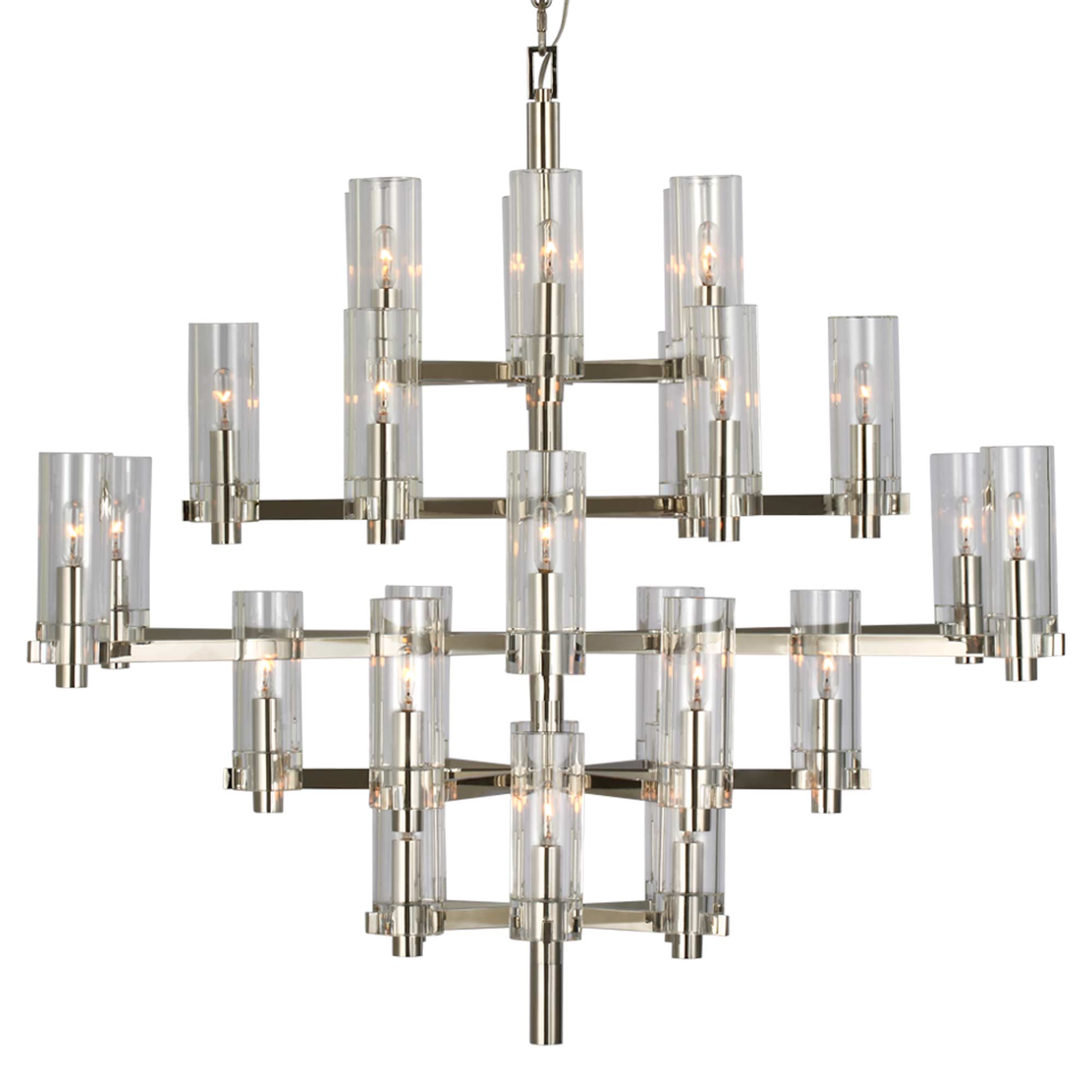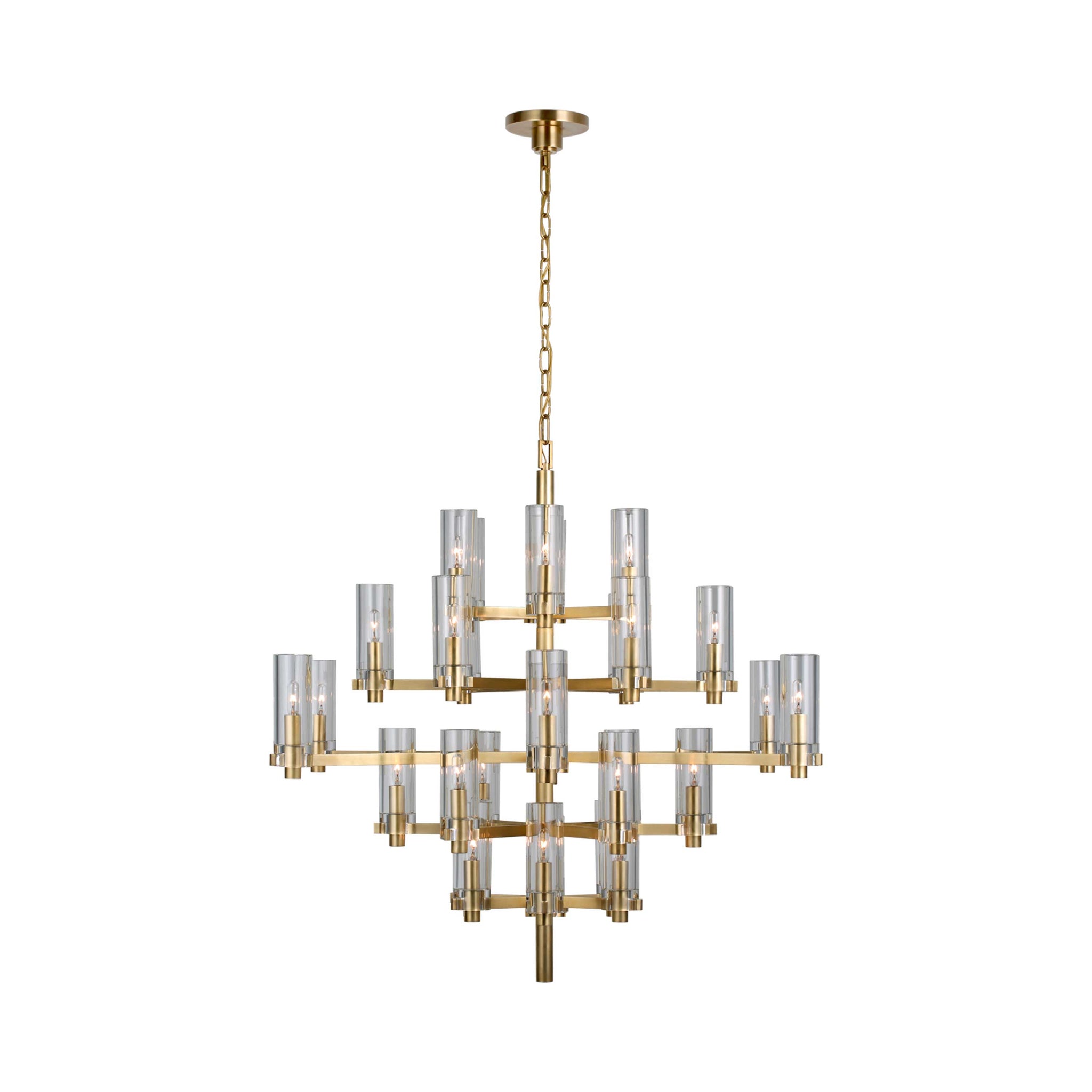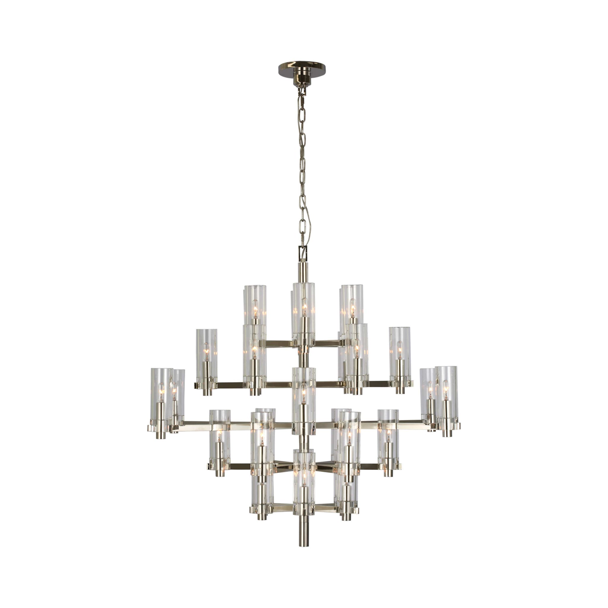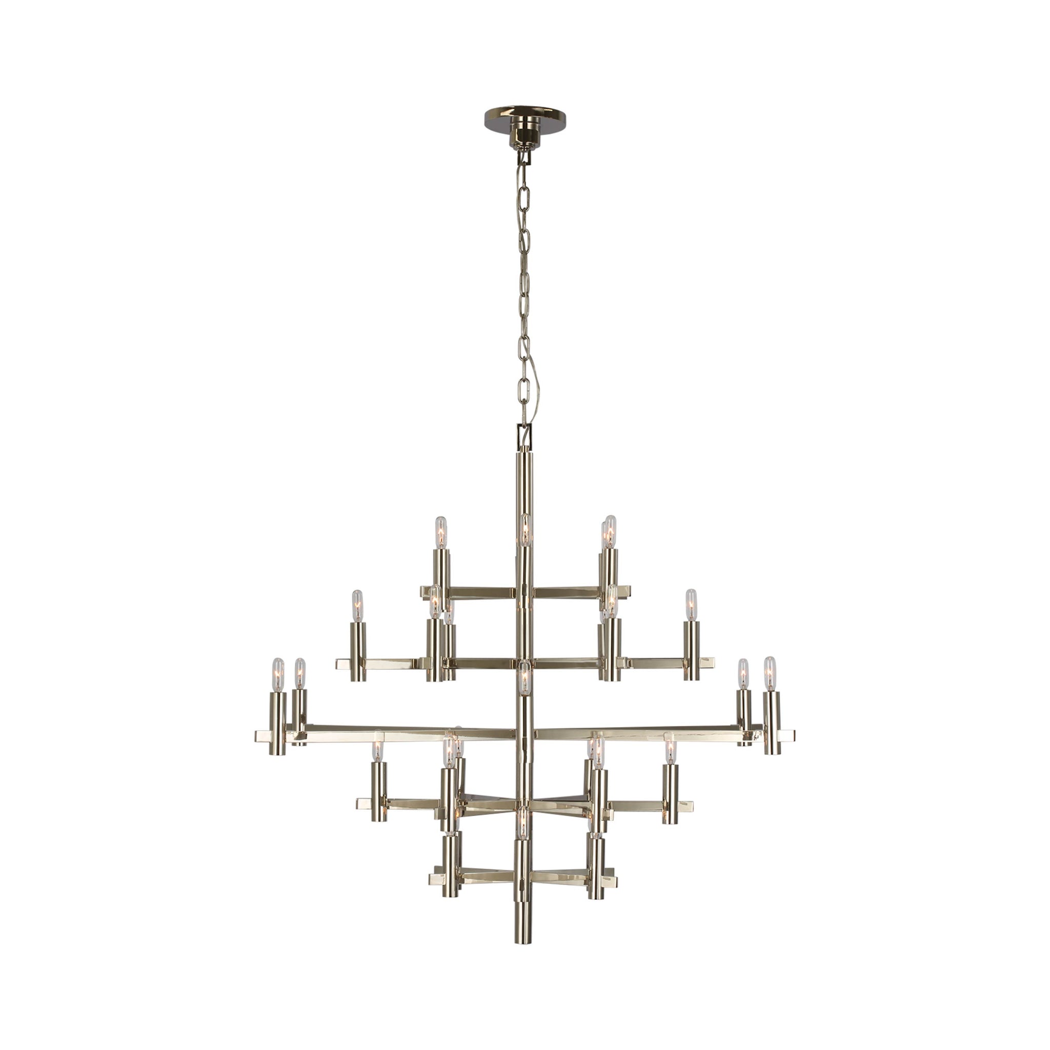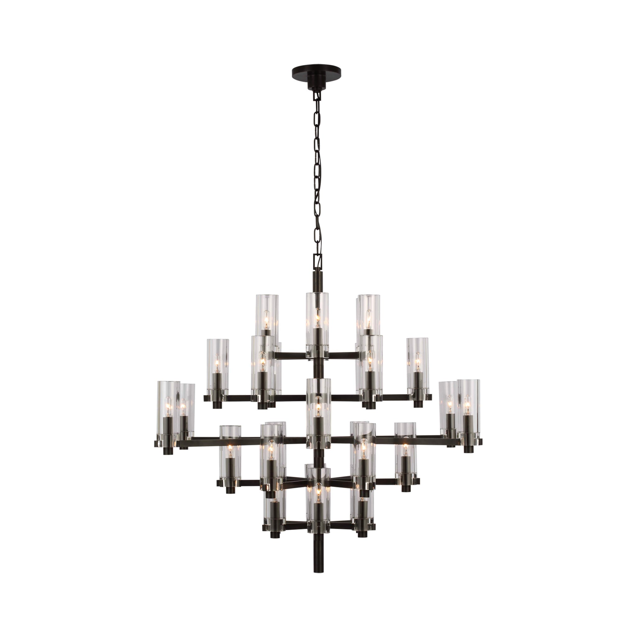 Striking contemporary silhouetting merges design motifs, transforming the Sonnet Chandelier from Visual Comfort Signature into a primary décor element in a tailored living space. Embrace a structured shape featuring rows of LED candelabra-style bulb sockets that deliver an unforgettable blend of old and new.