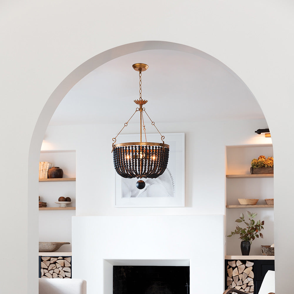 Detail is key in the rustic look of a light fixture that captivates in any setting. Beaded strands made of black finish wood drape from a metal frame to allow rays of light in the Southern Living Fabian Chandelier from Regina Andrew, with decadent and charming accents fashioning a mixed motif. Make this chandelier a go-to, unforgettable light source.
