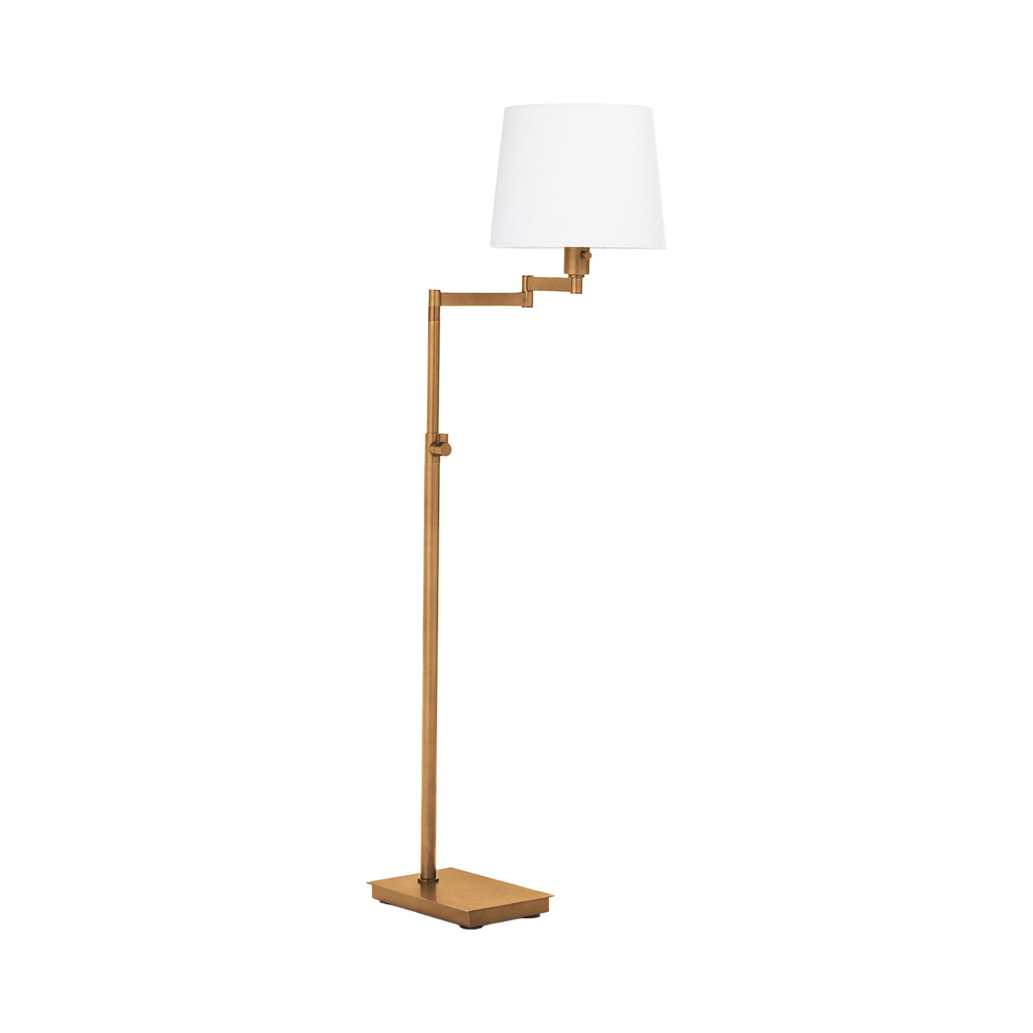 Edgy angles play with conventional shaping to create the Southern Living Virtue Floor Lamp from Regina Andrew. Transitional and modern settings welcome a lamp with an asymmetrical silhouette, as adjustable arms tailor light delivery. Fashioned of natural brass finish metal and topped with a bright fabric shade, this stylish lamp suits reading spaces and bedrooms.