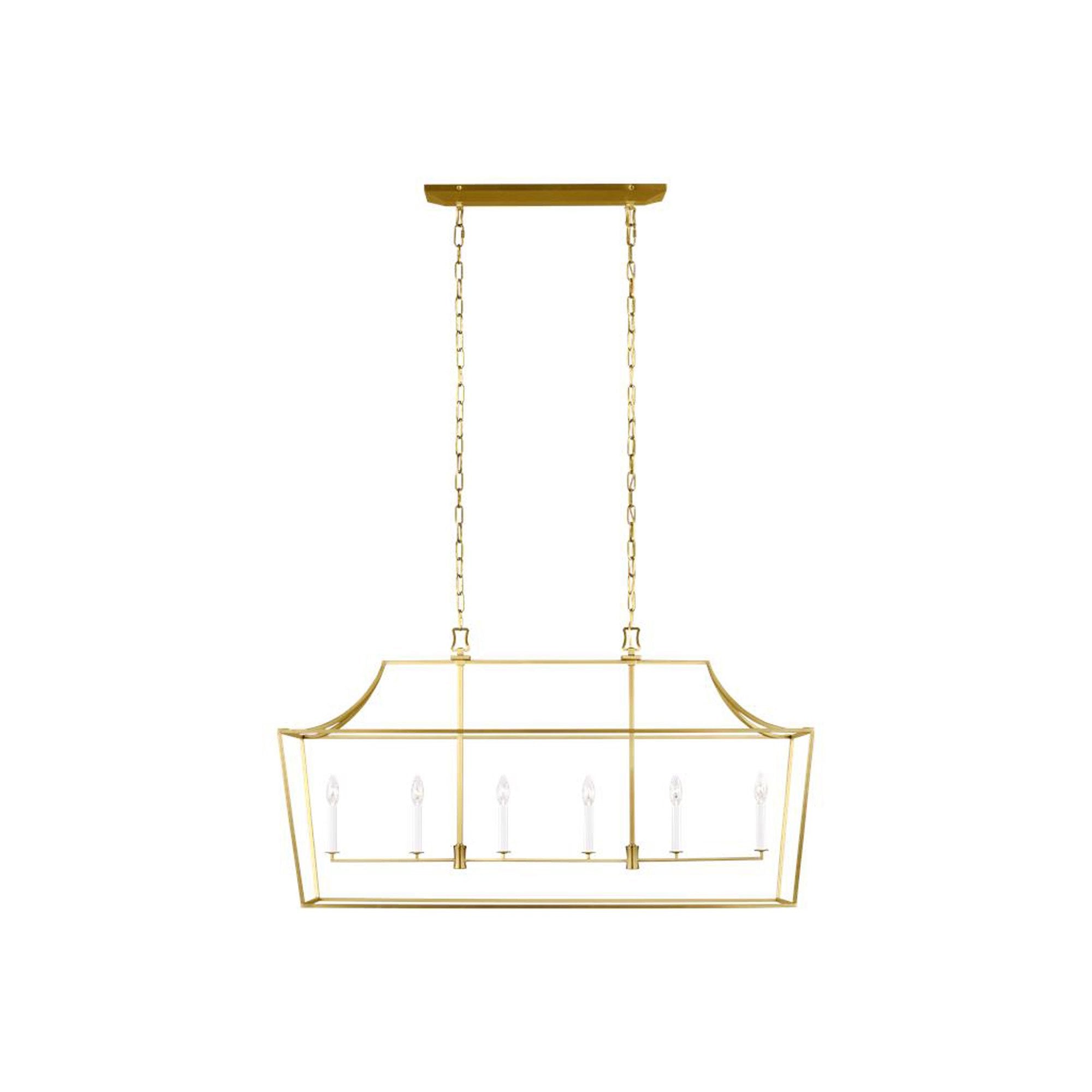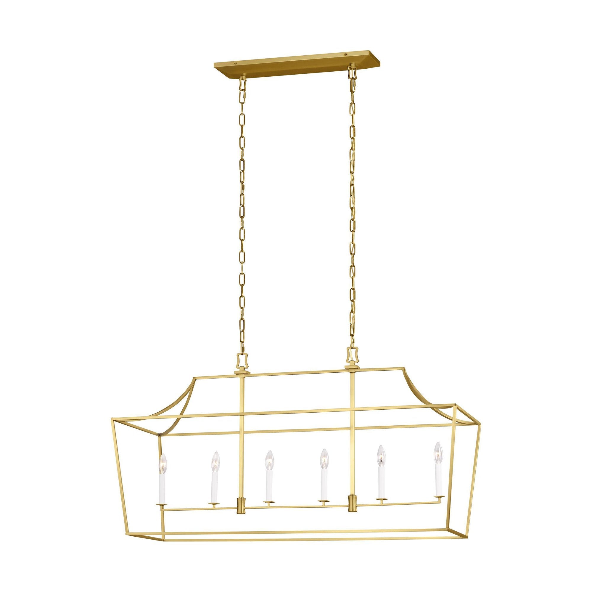 Evoking an old-fashioned tent, the Southold Linear Chandelier from Visual Comfort Studio delivers swooping curves and a compelling finish.