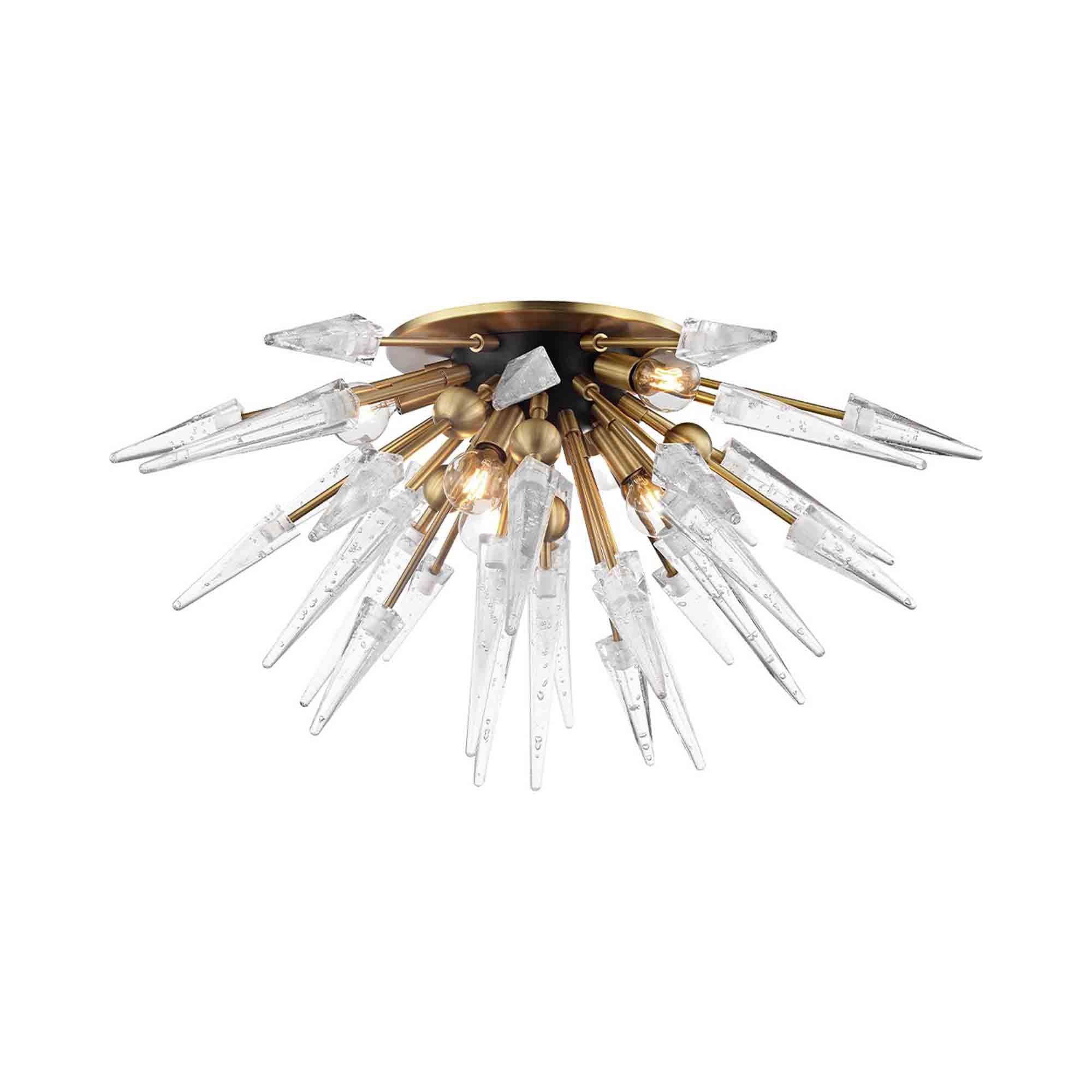 Dramatic decor elements deliver a compelling energy to dining and living spaces, and the Sparta Semi-Flush Mount Ceiling Light from Hudson Valley Lighting pours it on with a dynamic silhouette using arrowed shapes in a choice of finishes.