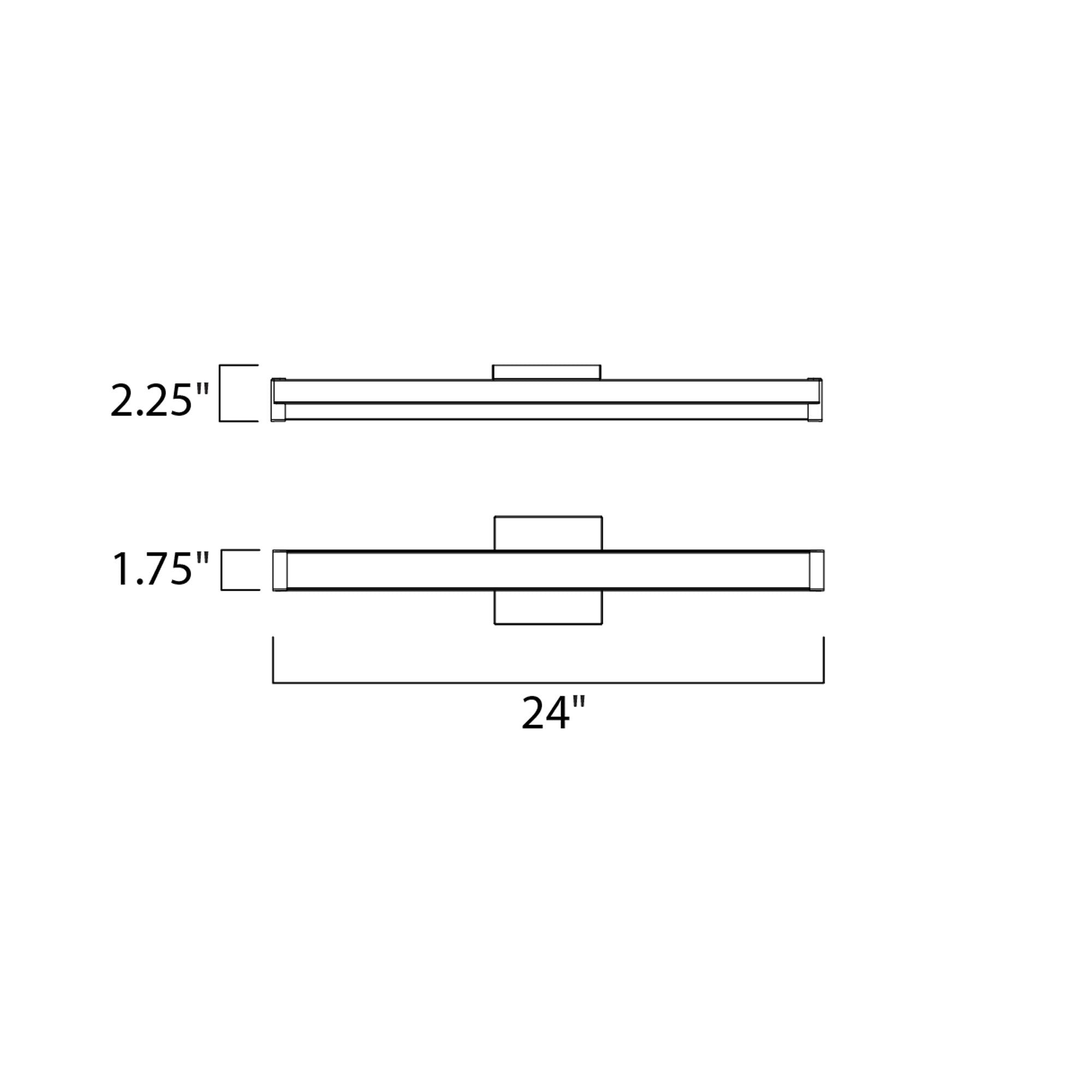 - Small/3000K: 24"W X 1.75"H; 2.25" Extension
