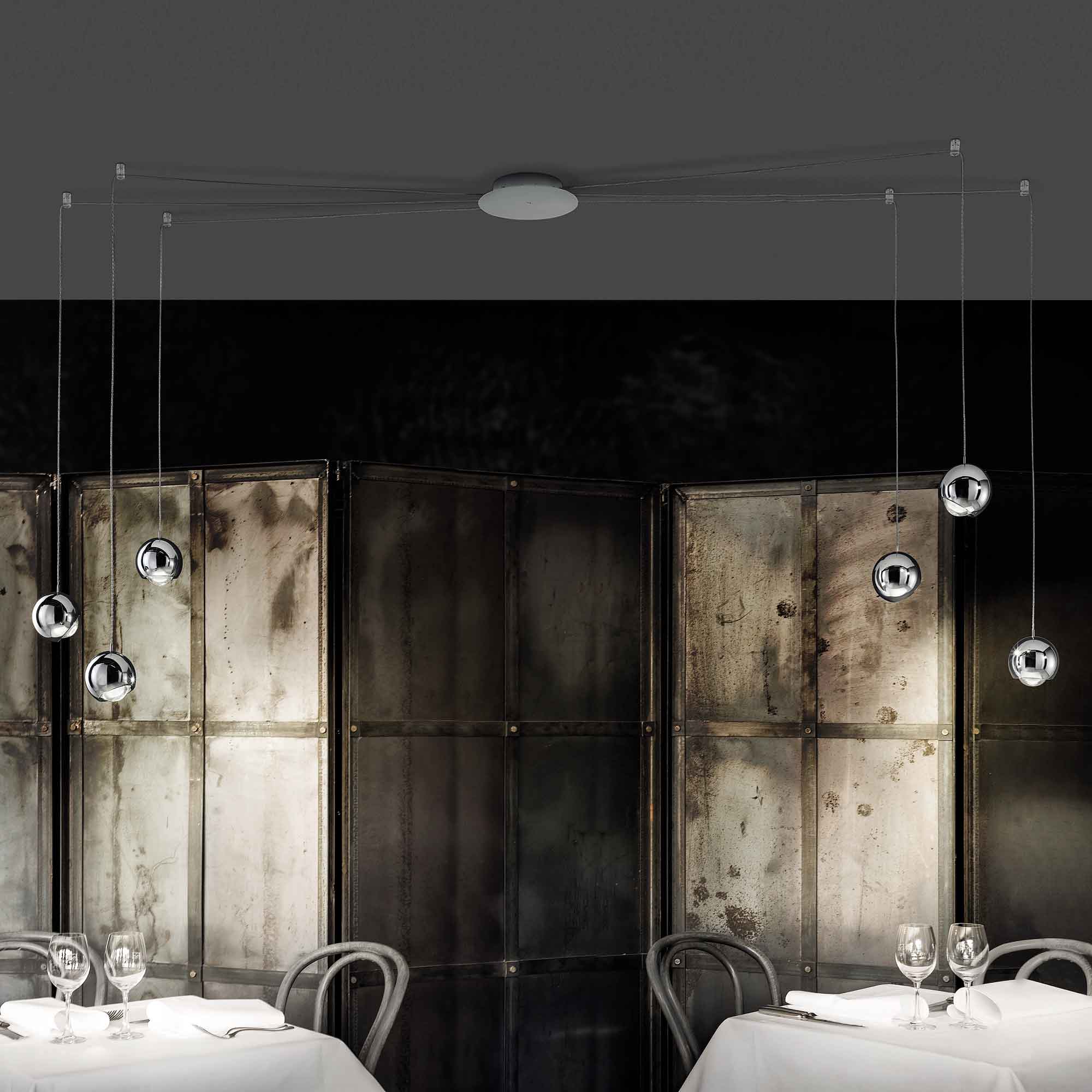 Sleek contemporary verve goes modern and retro simultaneously, creating a rounded silhouette and tons of personality to the Spider LED Mini Pendant Light from LODES. Spot and target lighting is a breeze with this fixture emanating a sliced ball with flexibility in aiming energy-efficient lighting in a compact reading space or dining nook.