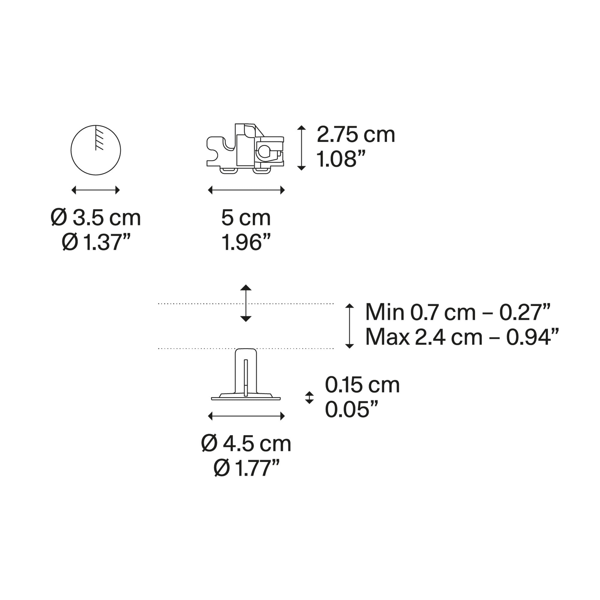 - Canopy: 1.37"D (recessed micro) OR 4.92"D (single standard)