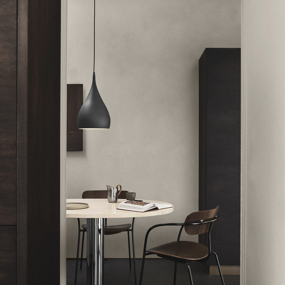 Subtle inspiration from a past era drives the design form of a light fixture with timeless beauty. The Spinning Pendant Light from &Tradition offers a romantically contoured shade fashioned of spun metal with continuity and versatility.