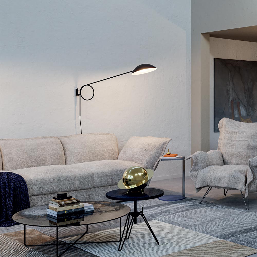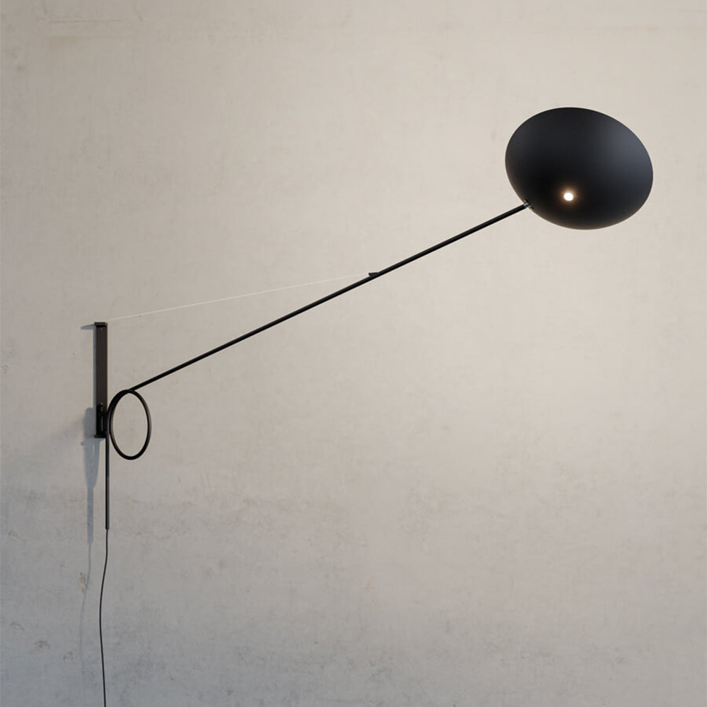 Bold personality speaks to a truly festive aesthetic when the Spring Wall Light from Diesel with Lodes delivers a bit of industrial attitude. Fashioned of bold matte black finish metal, this fixture represents light artistry with a demi-dome shade and creative looped element at the base of its wall mount. Bring extra attitude to a studio or workspace, or add character to a casual living space with this delightful wall light.