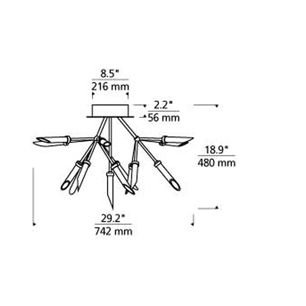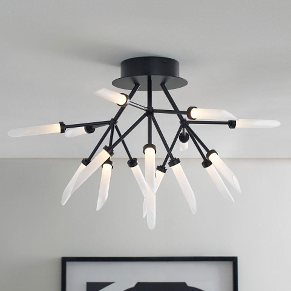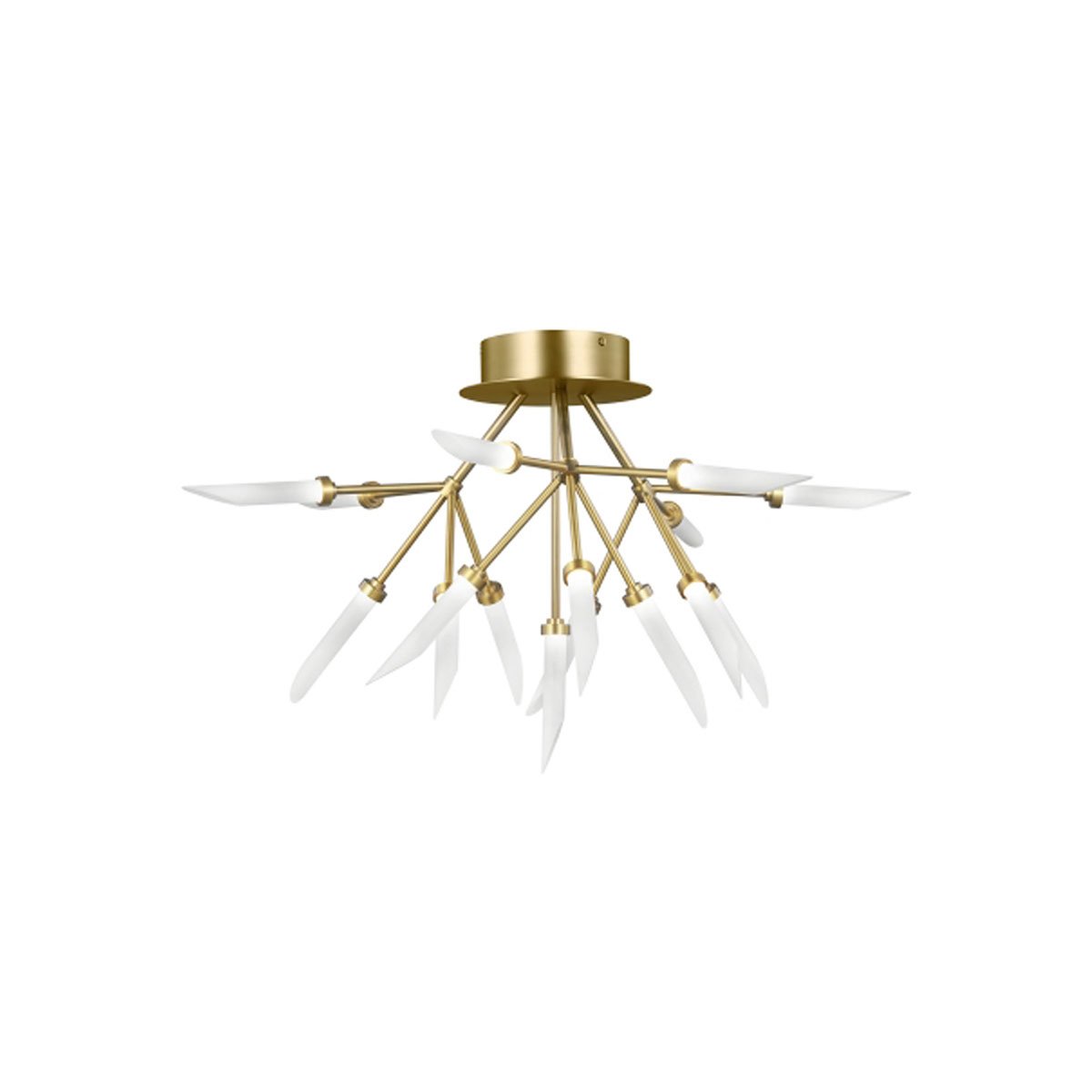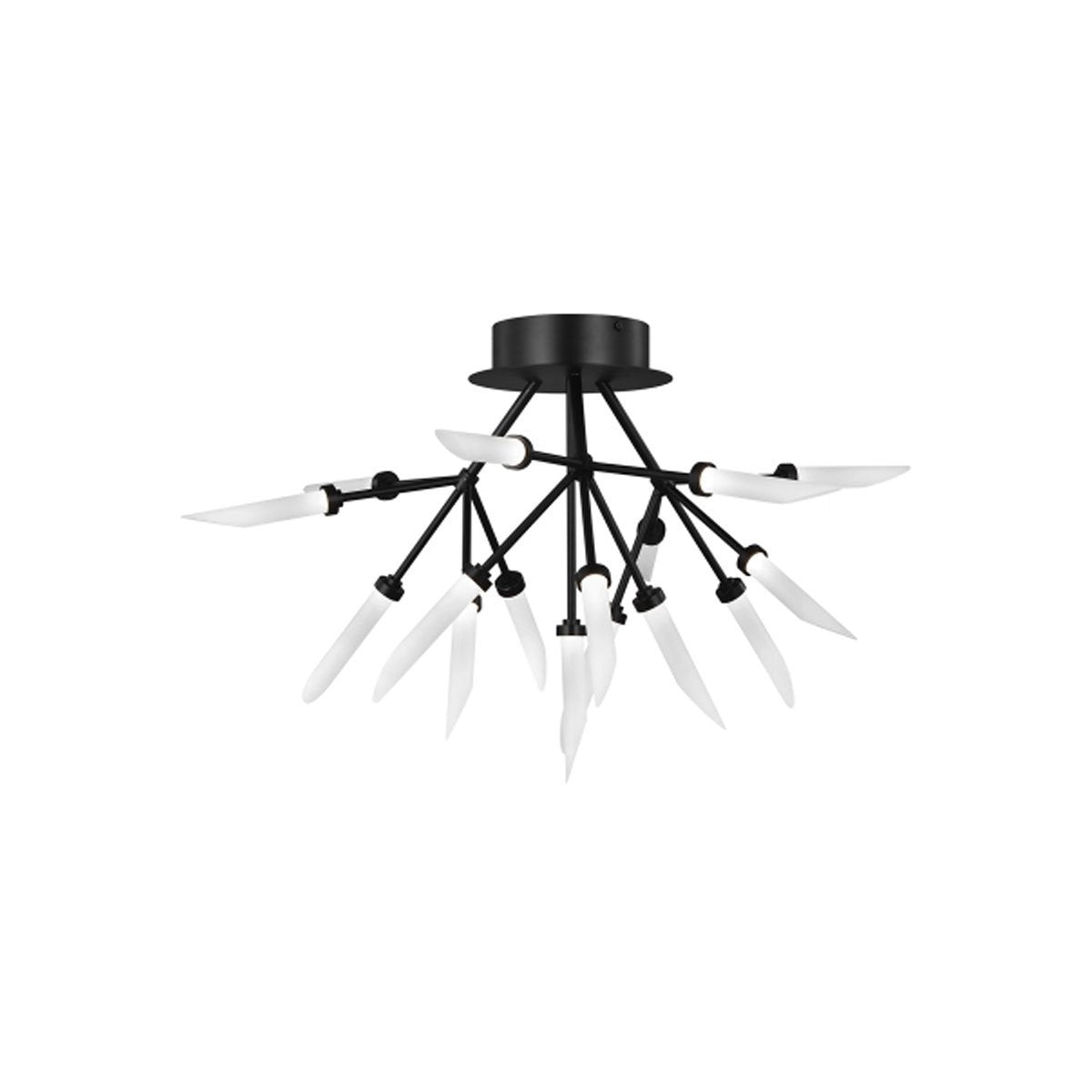 The Spur LED Semi Flush Mount Ceiling Light by Sean Lavin for Visual Comfort Modern is a smaller rendition of the grand chandelier. Three arms extend from the ceiling with clusters of five frosted glass spurs illuminated by a compact, diffused LED light source. Offered with energy efficient integrated LED in three distinct finishes, the Spur Ceiling Mount is a design-forward solution to your dining room, living room, bedroom and hallway. Complete your modern look with the Mara wall sconce, pendant and chandelier for full room coordination. Lamping options are compatible with most dimmers. Refer to Dimming Chart for more information.