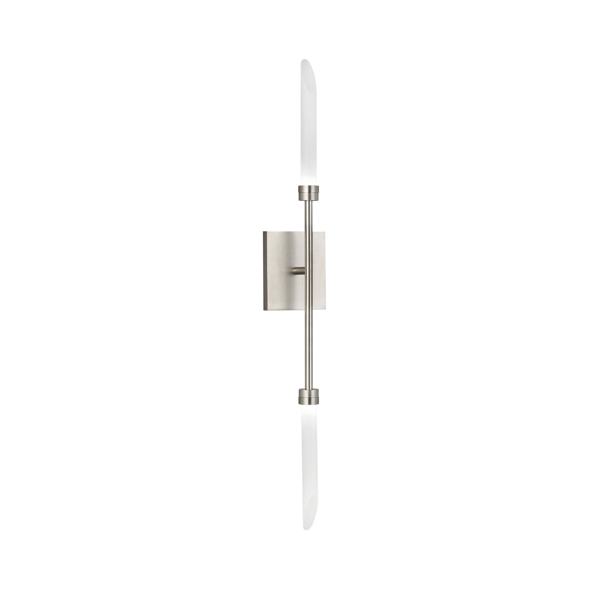 Two glass spurs dramatically extend in opposite directions, illuminated by a compact diffused LED light source. The Spur LED Wall Light by Sean Lavin for Visual Comfort Modern is offered in three distinct finishes, the Spur Wall Sconce rounds out the entire Spur family of chandeliers, pendant and ceiling mount. Mounting options include vertical or horizontal, great for any bathroom or vanity lighting. Lamping options are compatible with most dimmers. Refer to Dimming Chart for more information.