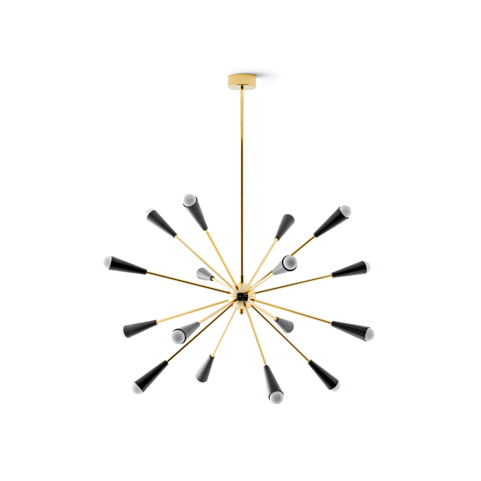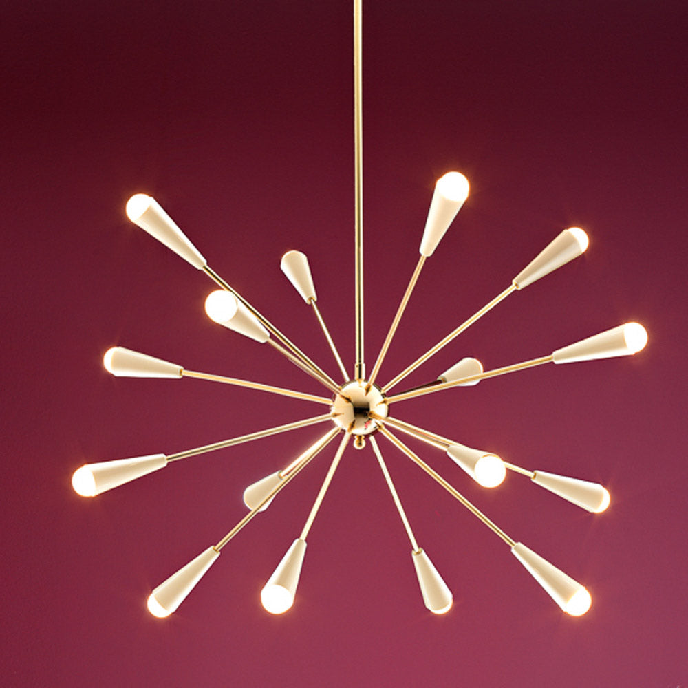 A veritable explosion of delightful shapes defines a futuristic vibe as the Sputnik Suspension Chandelier from Stilnovo creates a captivating look. Its style motif has roots in both retro-inspired Mid-Century Modern and truly contemporary, as a circular silhouette with a space-age vibe set the record straight on a festive design perfect for highlighting dining ensembles and foyers.