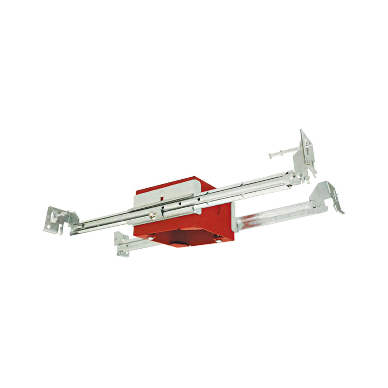 Start out a newly built structure with recessed lighting using this Square New Construction Box from Elco Lighting. Ceiling-mounted fixtures function properly with this assembly featuring standard spaced mounting holes and a height-adjustable bracket to accommodate flush alignment. Take advantage of swivel hanger bars and a low-profile design perfect for shallow plenum applications.