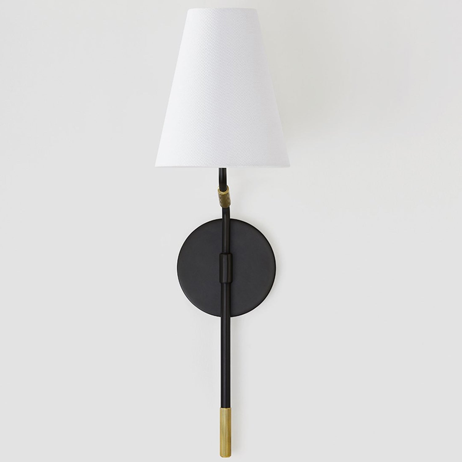 Gentle shaping offers a softening impact to bold industrial style as the Stanwyck Wall Light from Hudson Valley Lighting delivers the best of both worlds. Add tasteful, accessible lighting in a modern space with a fixture emulating a traditional lamp design. A crisp white linen shade contrasts with a distressed bronze and aged brass finish metal stem, sneaking in a fluid curve to make it interesting.