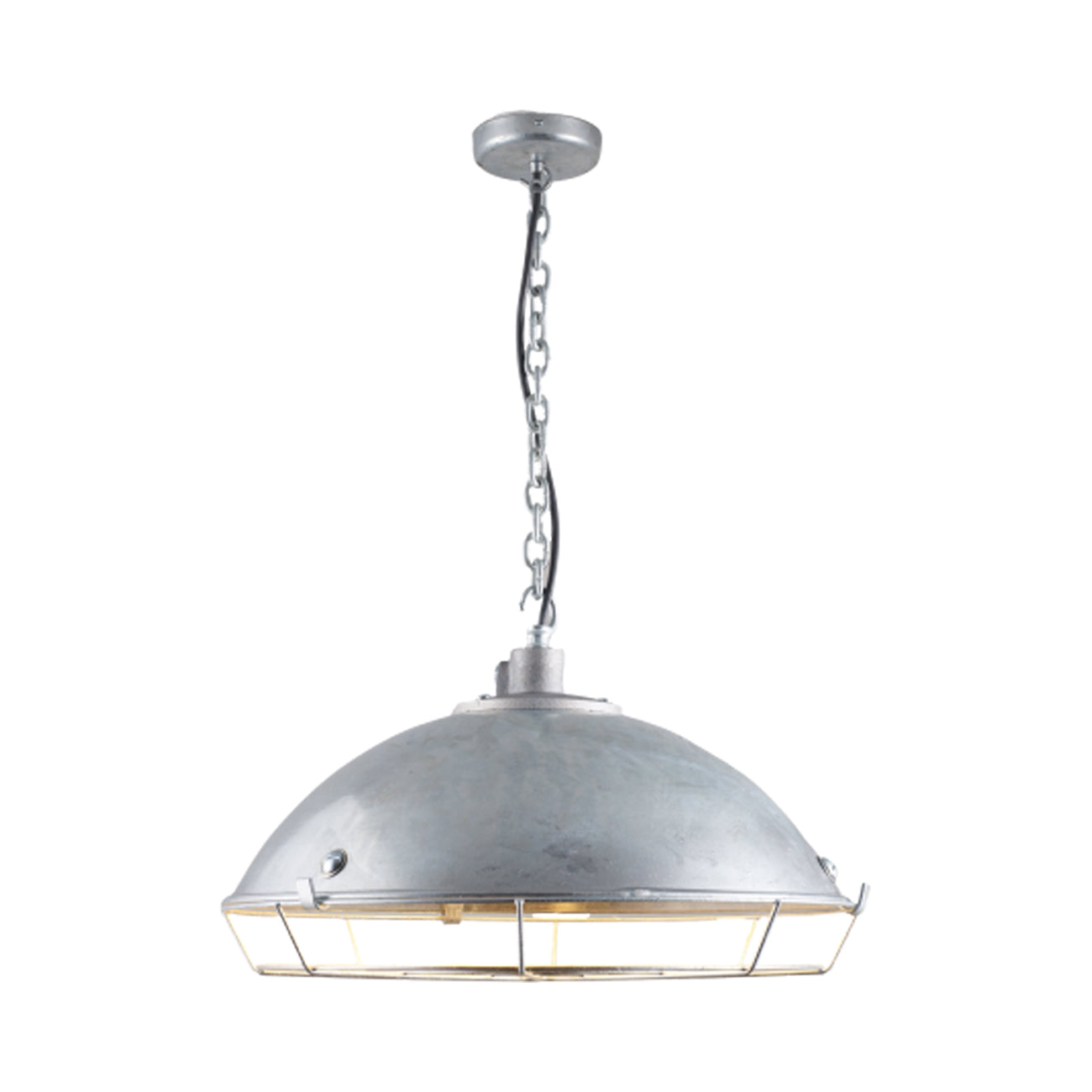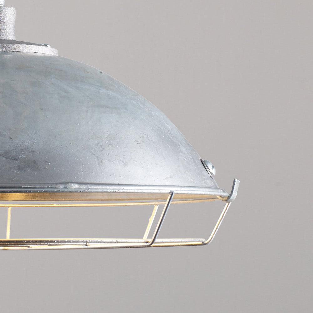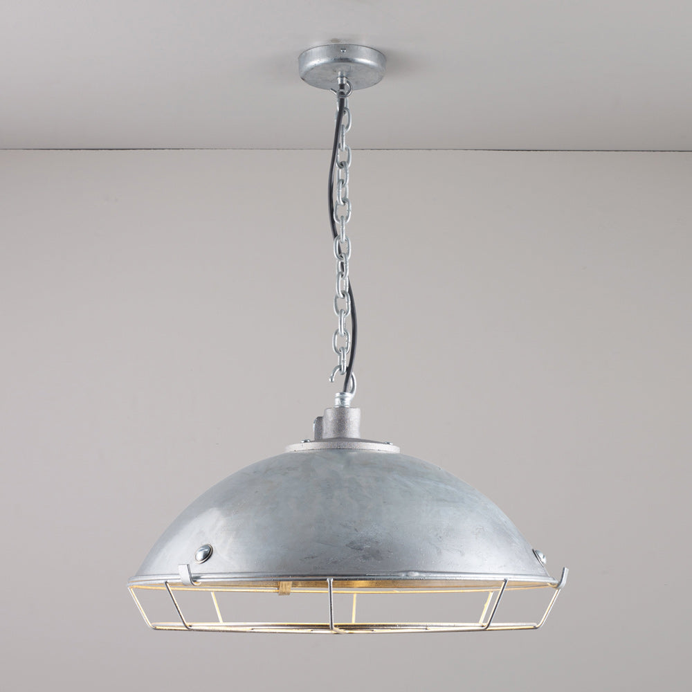 Authentic personality is on display to embellish a themed space with a romantic throwback to the industrial era. Embrace the gritty look of the Steel Working Pendant Light from Original BTC as it transforms a kitchen or foyer into a time capsule. Galvanized steel with a silver cast forms a dome shade with an openwork cage rim, as subtle but delightful accents capture the storied aesthetic you're searching for.