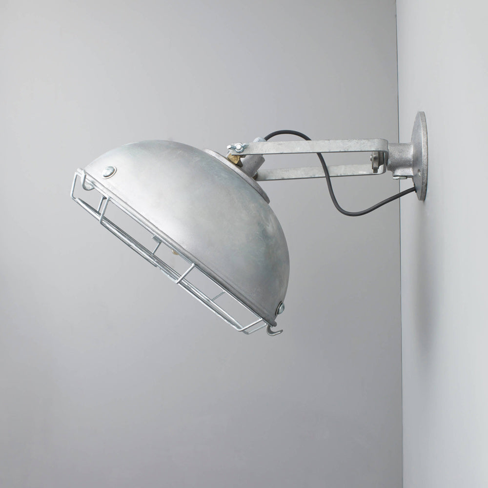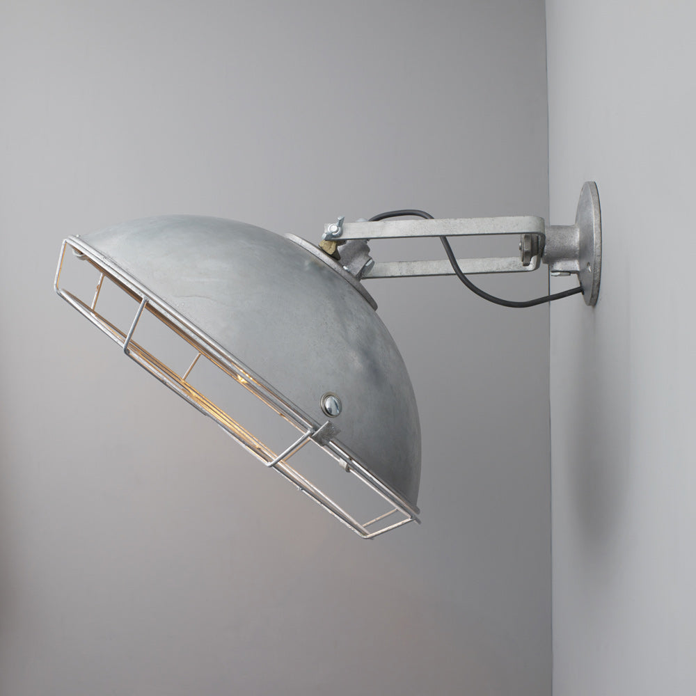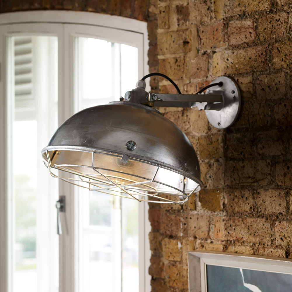 Inherent industrial character ups the game on authenticity as the Steel Working Wall Light from Original BTC reflects the functionality of a past era and spills it over to a custom space. Silver galvanized steel with subtle detail and an openwork rim takes a page from the iconic trouble light design, distressed and tempting. A dome shade creates spectacular silhouetting for placement in a dining room or foyer.