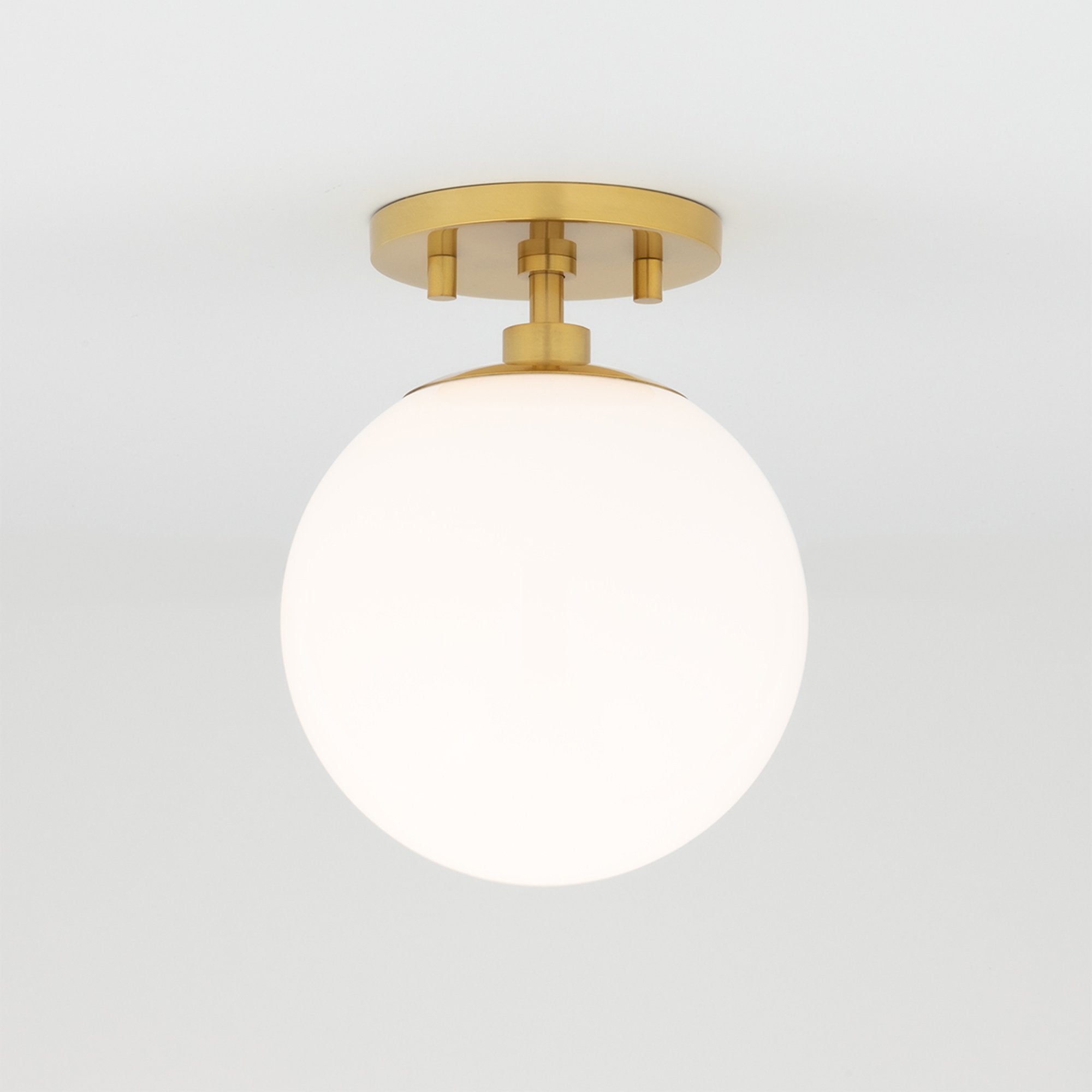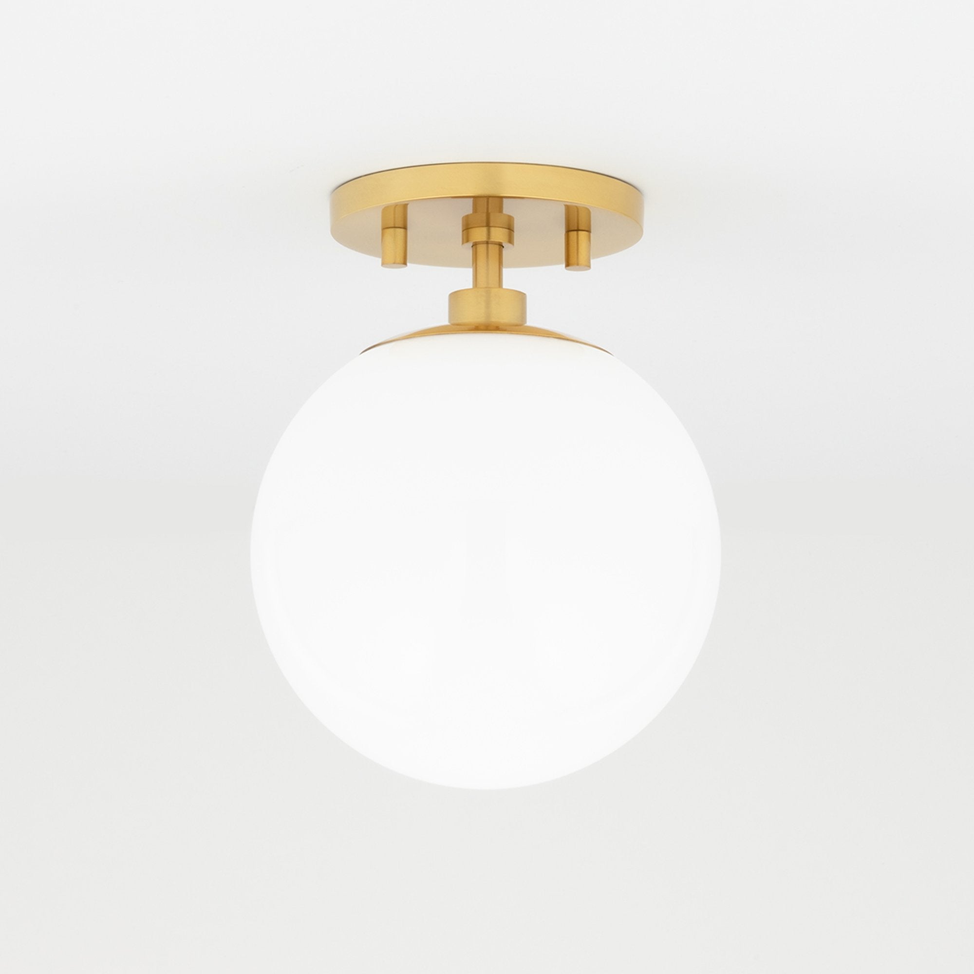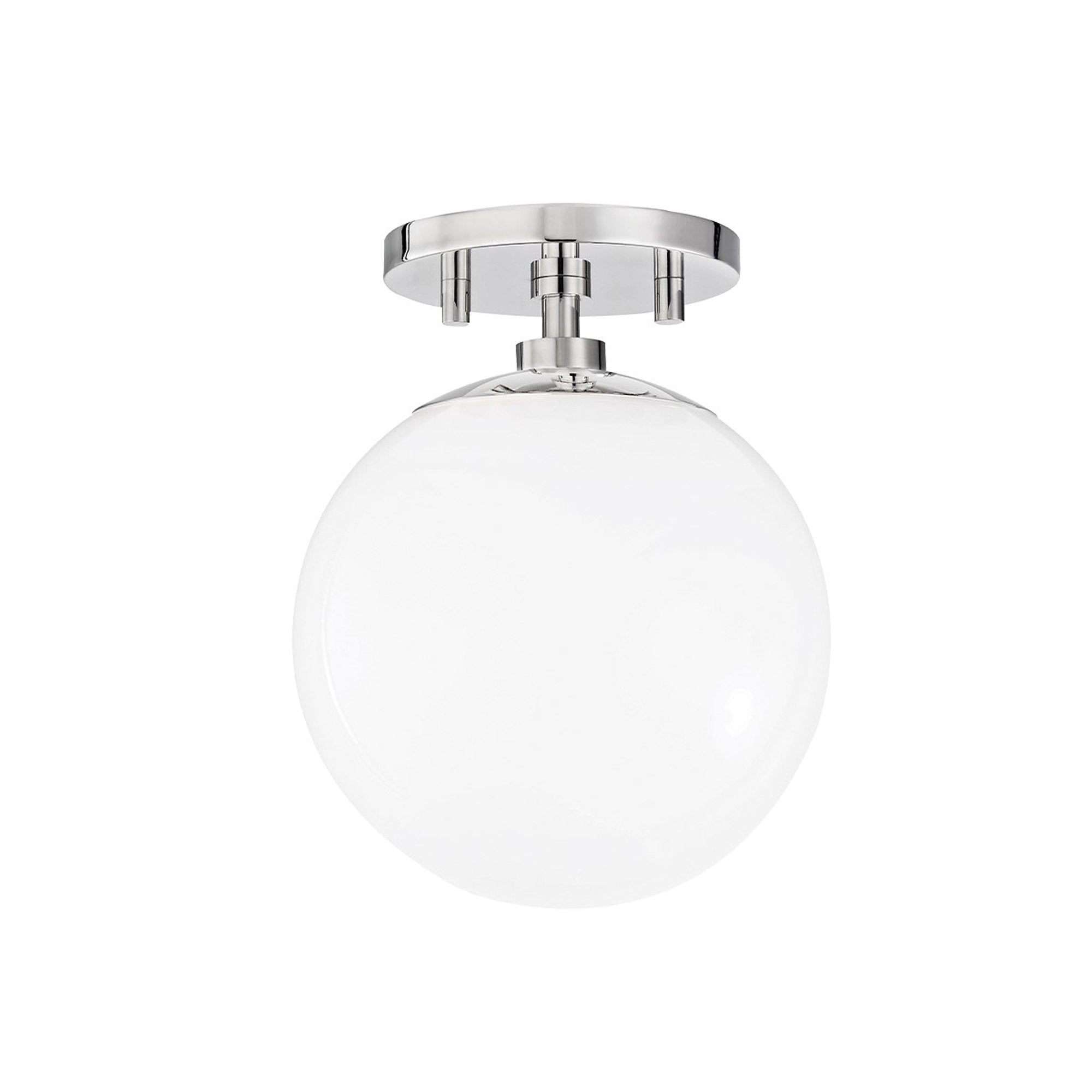 Designed to inspire, the Stella 1-Light Semi-Flush Mount Ceiling Light from Mitzi changes the mood in a contemporary living space, dining area, or bedroom. Illuminate in style with a sleek circular orb shade crafted of heady frosted glass and mounted to a metal canopy and holder with your choice of finish that will customize your space.