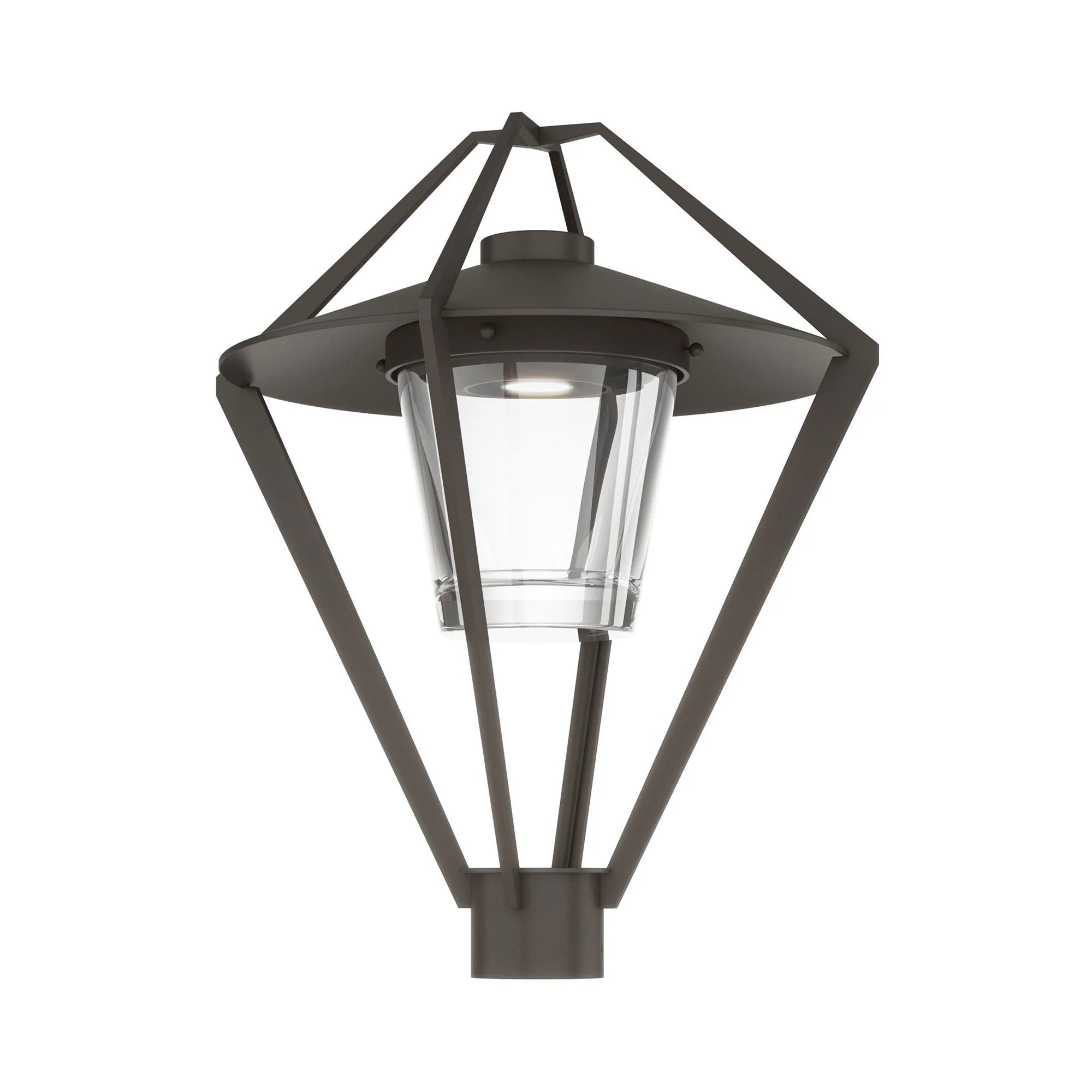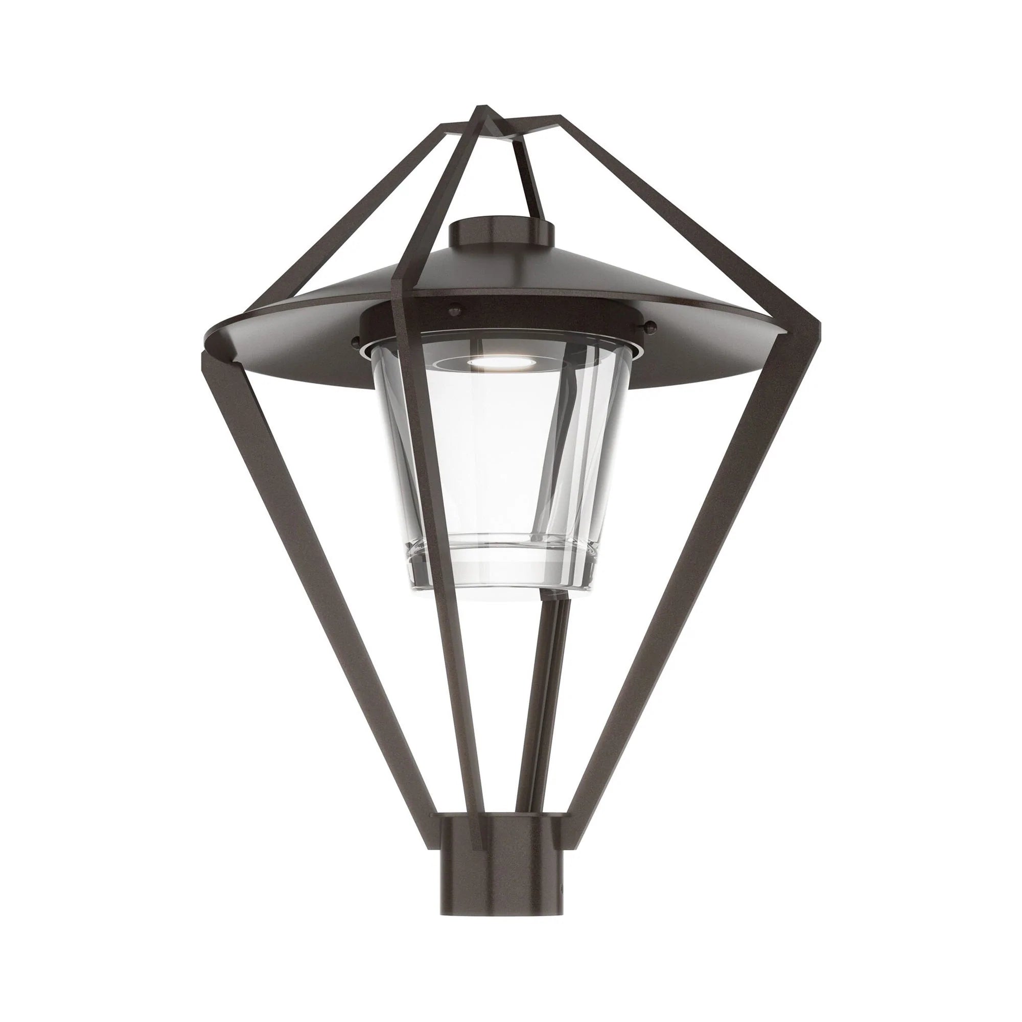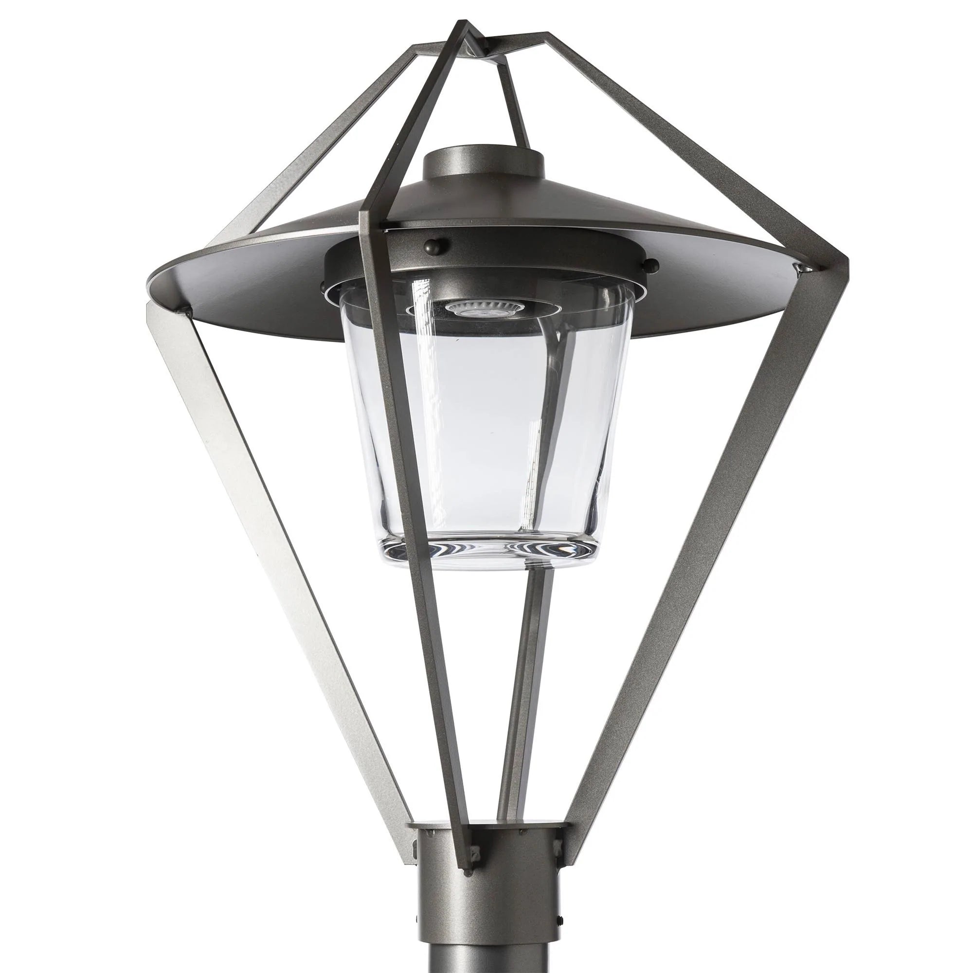 The Stellar Outdoor Post Light from Hubbardton Forge explores the dynamic design motif of geometry with an extra dose of sophistication. Call attention to customized yard spaces, driveways, and landscaped areas with this fixture delivering an openwork metal frame emulating lantern-style silhouetting. A thick clear glass tapered shade and metal hat top element embellish the storied artistry of an impactful outdoor fixture.