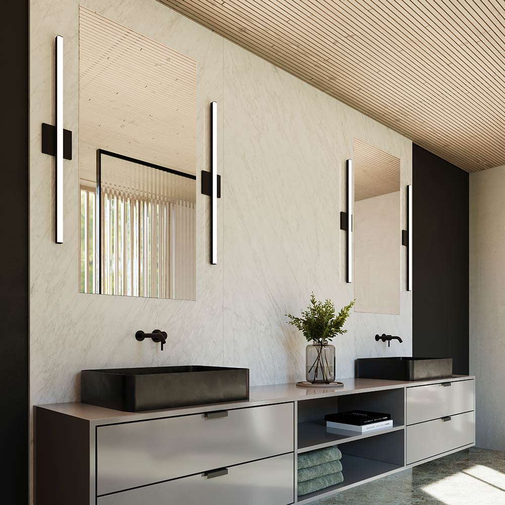 Indulgent with a sleek silhouette, the Stiletto LED Bath Vanity Light from Sonneman Lighting puts a signature design stamp on a custom bath space design, featuring construction of aluminum and acrylic and offering various finishes and sizes to suit your needs.
