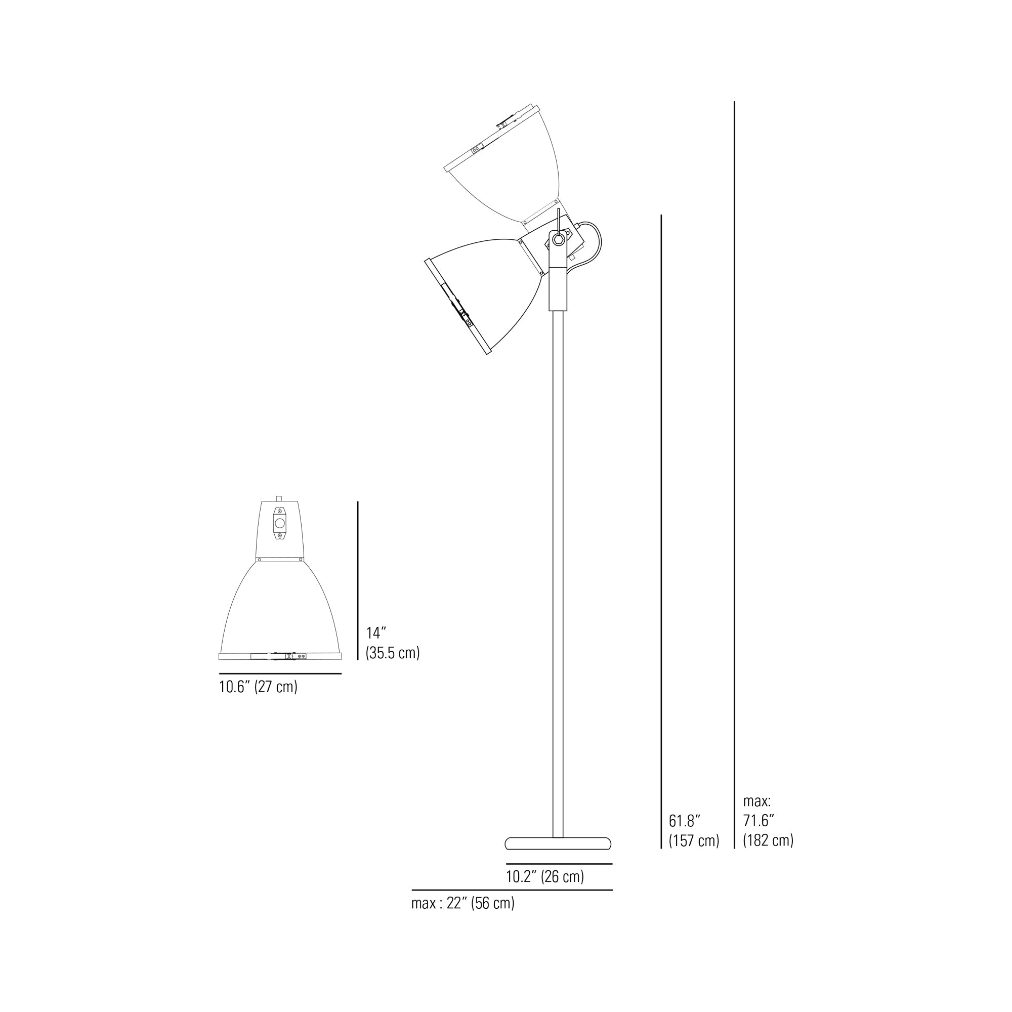 Saunter back to a past era to duplicate a searchlight motif with modern updates. The Stirrup Floor Lamp from Original BTC puts chic on blast with industrial influence providing period authenticity. A black palette begins with a smooth and shapely shade, adjustable to tailor light direction, and a frosted diffuser injecting a more artisan vibe.