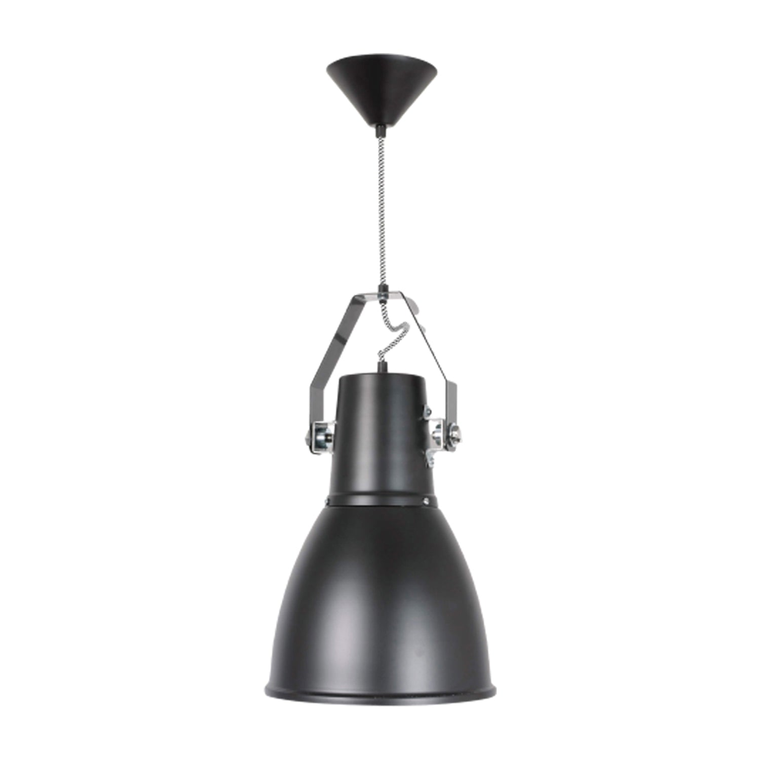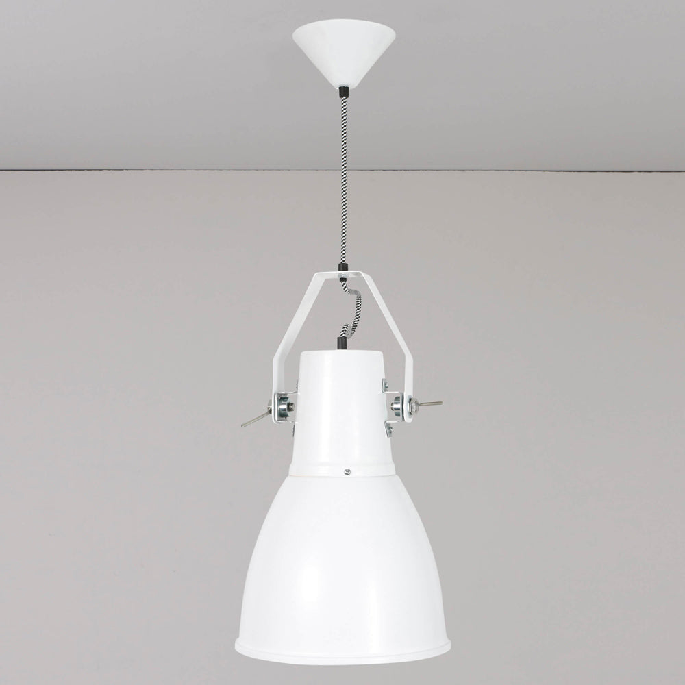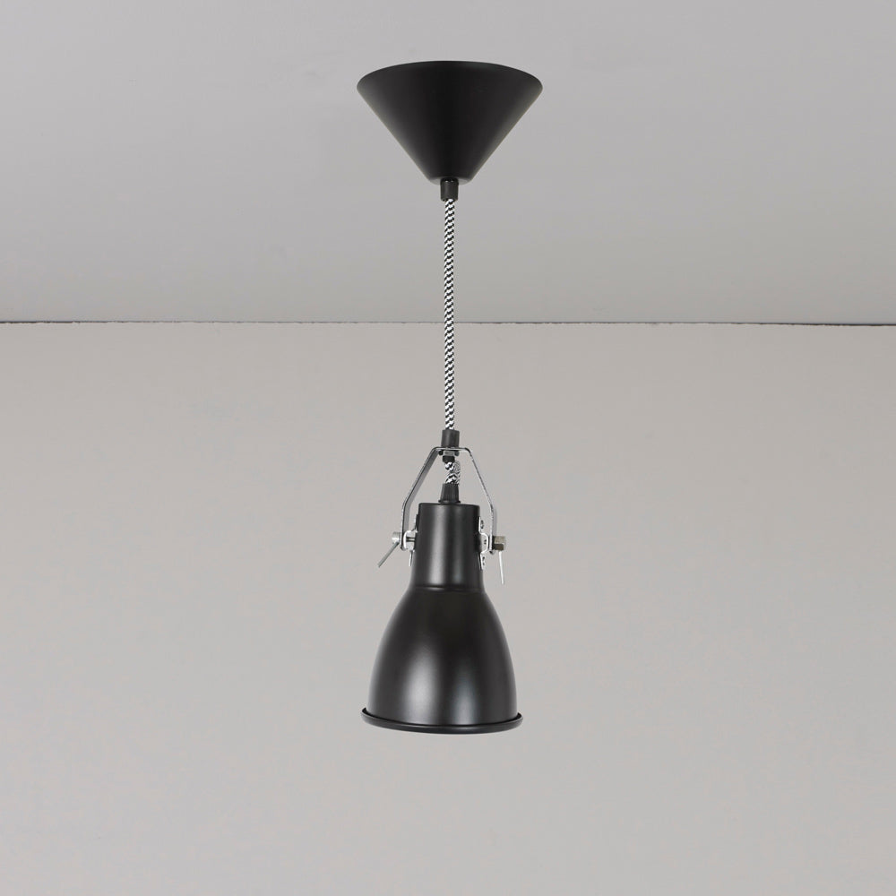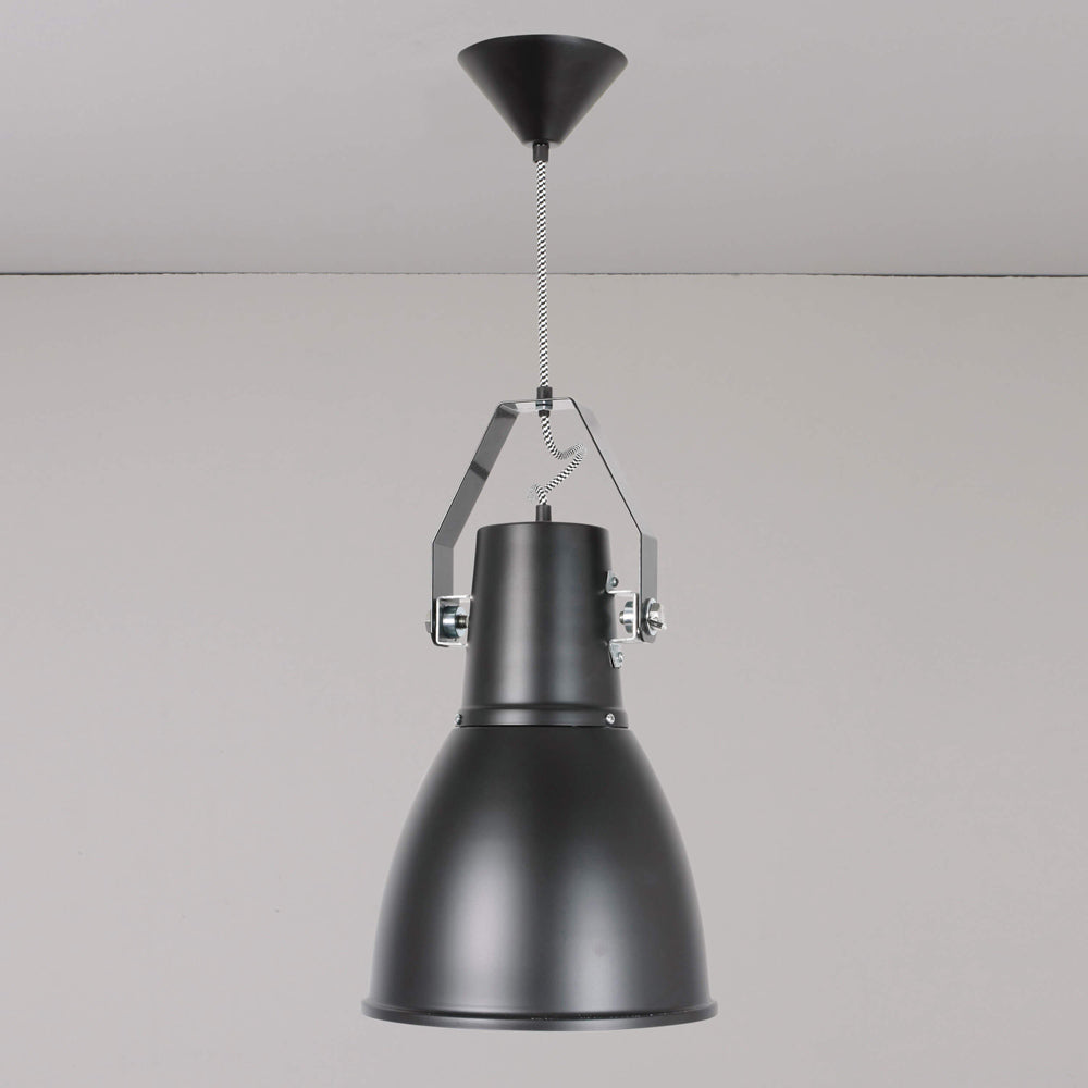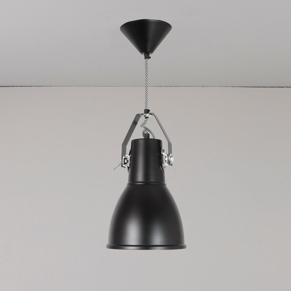 A heavy dose of industrial inspiration creates a romantic lookback in time as the Stirrup Pendant Light from Original BTC offers an easy look ideal for kitchens, dining rooms, and foyers. An extended dome shade with metal accents descends from a prominent canopy, with classic braided fabric cording adding a fun touch.