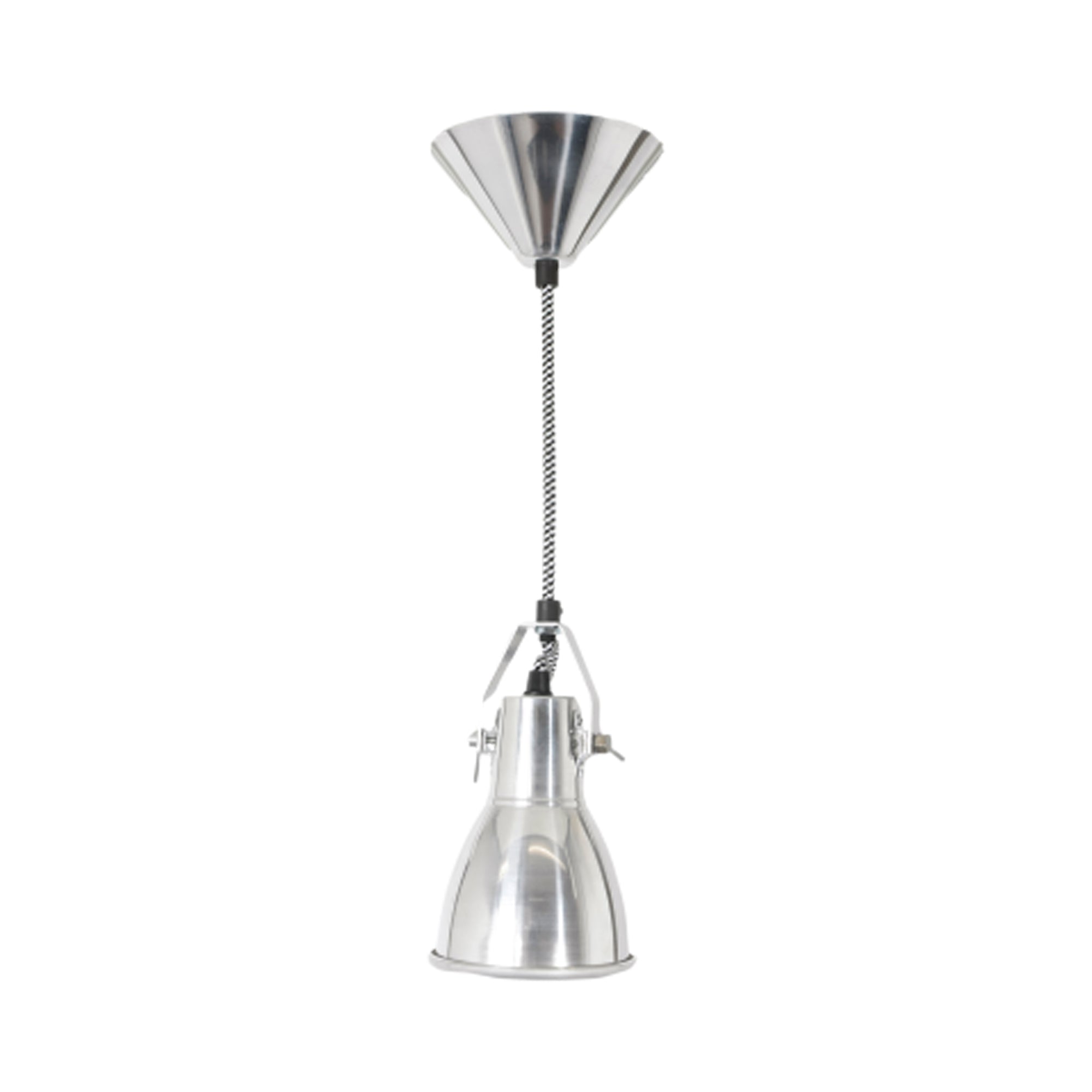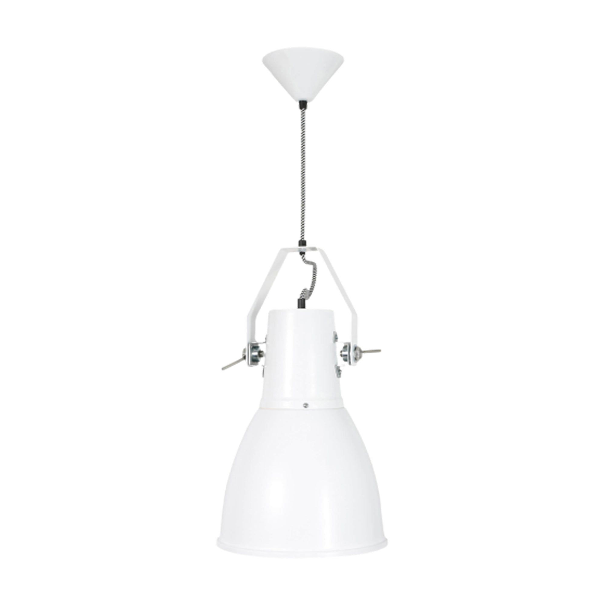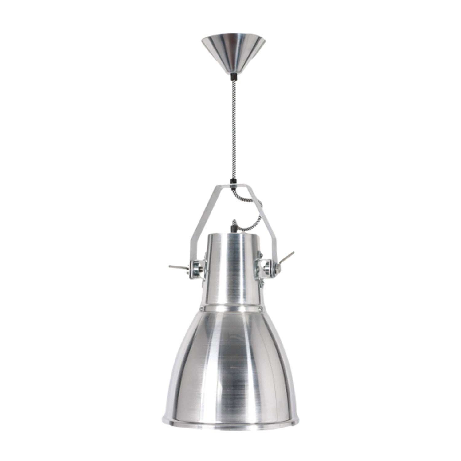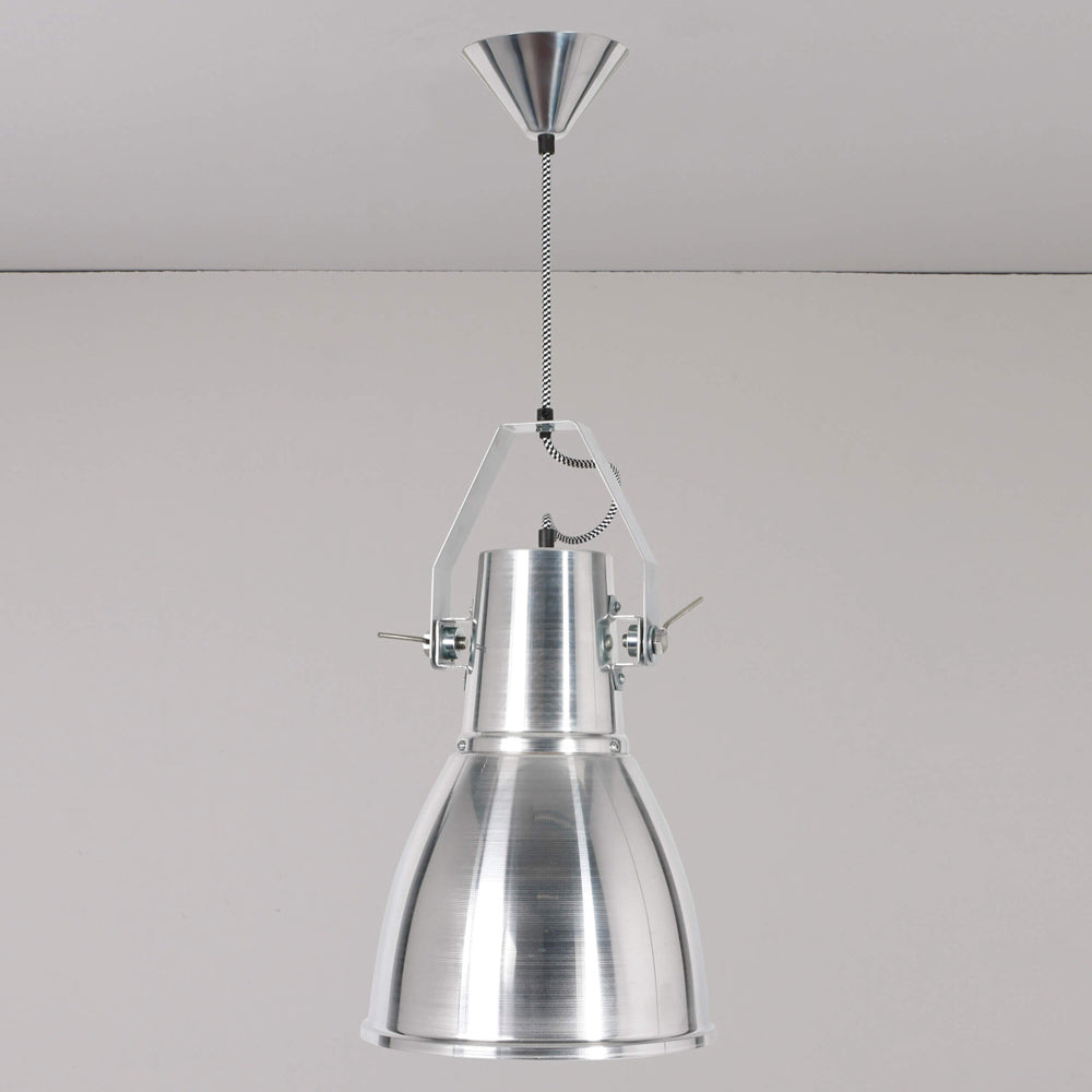 A heavy dose of industrial inspiration creates a romantic lookback in time as the Stirrup Pendant Light from Original BTC offers an easy look ideal for kitchens, dining rooms, and foyers. An extended dome shade with metal accents descends from a prominent canopy, with classic braided fabric cording adding a fun touch.