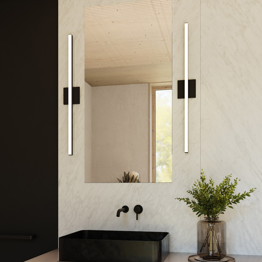 The Stix LED Bath Vanity Light from Sonneman Lighting creates a slender yet sensational look with chic elements blending aluminum and optical acrylic into a geometric silhouette and soothing dimming functions with the separate purchase of an ELV dimmer.