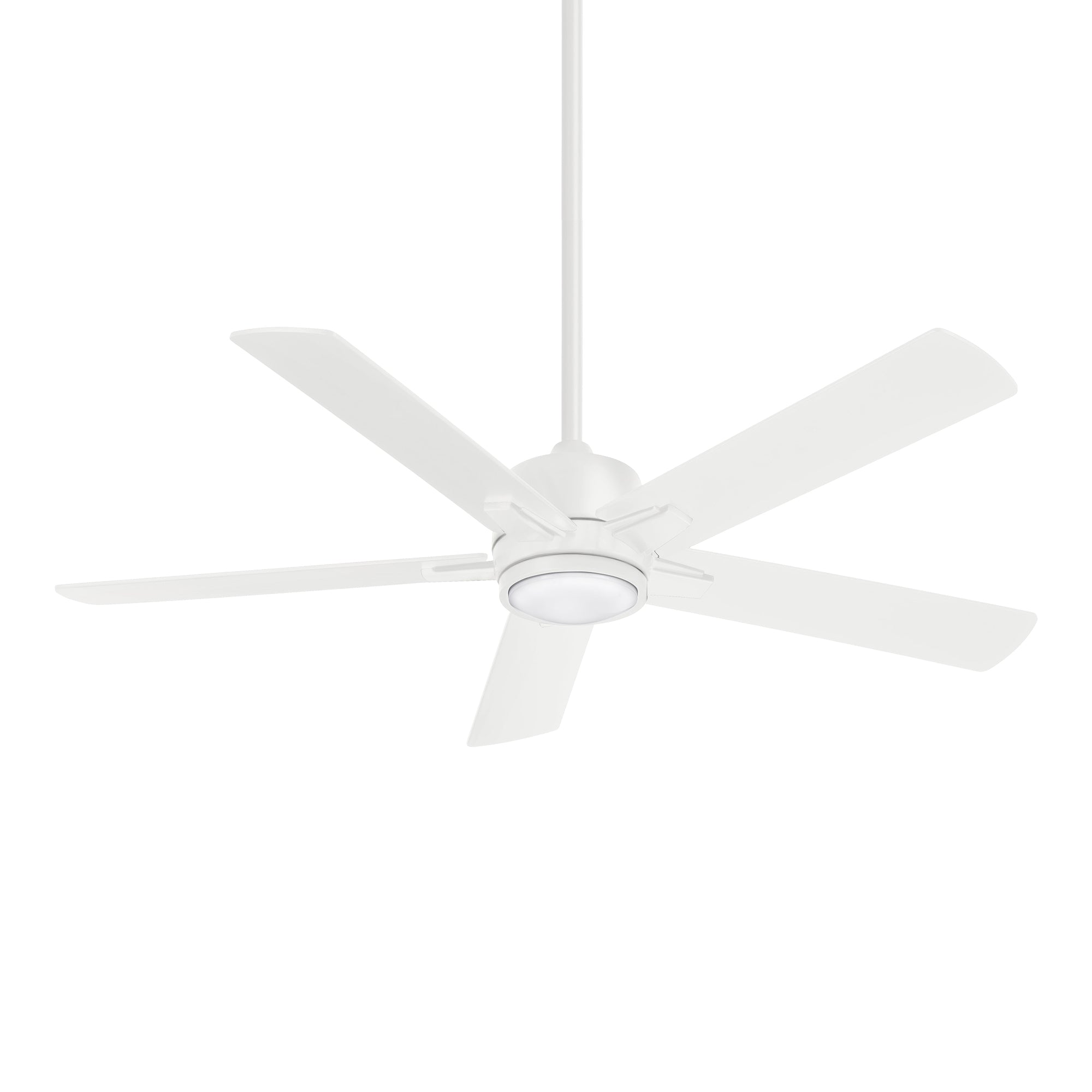 The Stout LED Ceiling Fan from Minka Aire delivers a tastefully crisp aesthetic that celebrates metal as a design accent. Bold accents and a frosted white glass shade add intrigue to a fan with energy-efficient illumination. Choose this five-blade fan, three-speed fan and light for its chic style, as well as a manual reverse function to redirect air flow according to seasonal needs.