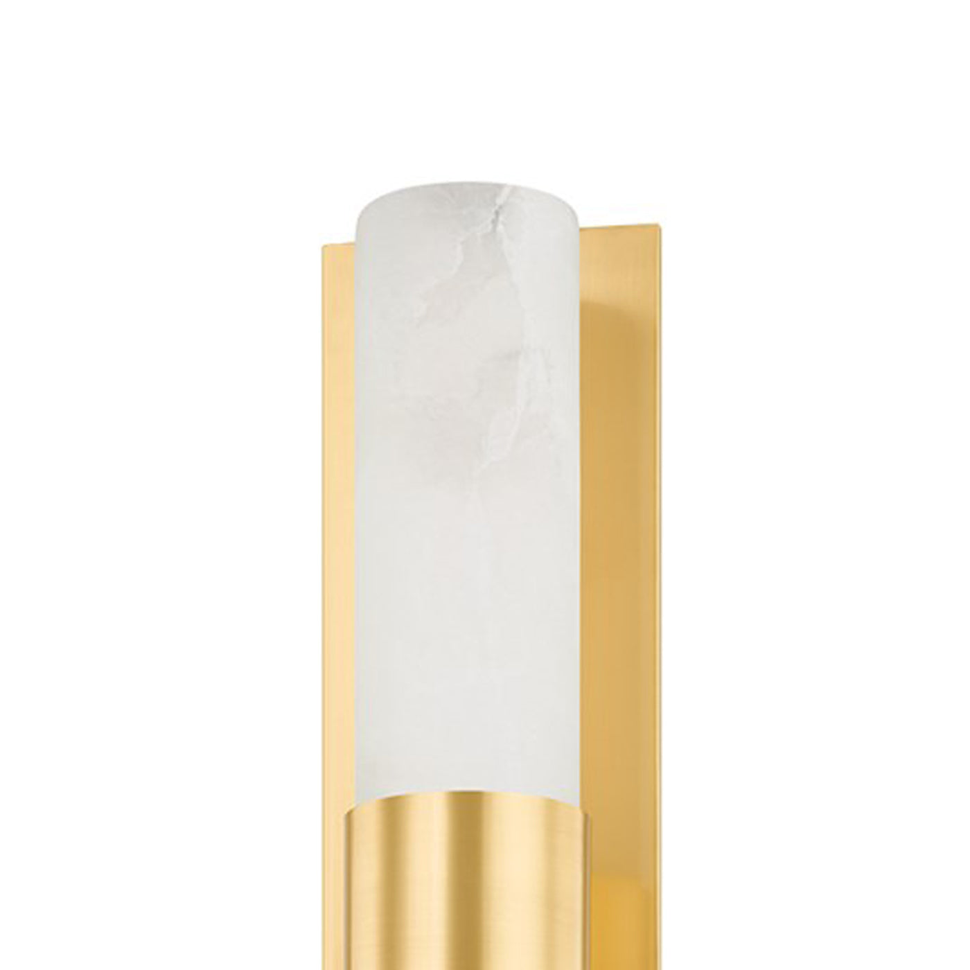 The benefit of elegant simplicity makes itself known in the form of a sophisticated light fixture with classic glam influence. The Stowe Wall Light from Hudson Valley Lighting emulates an organic sense of artistry with an alabaster cylindrical shade tucked into a gleaming aged brass finish metal frame. Minimalism translates to tempting, orderly style as this exquisite sconce-like wall light delivers accent lighting in hallways, bedrooms, or living areas.
