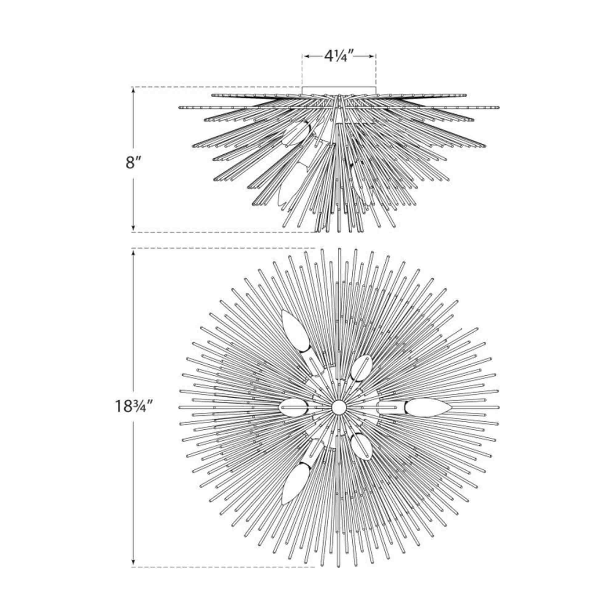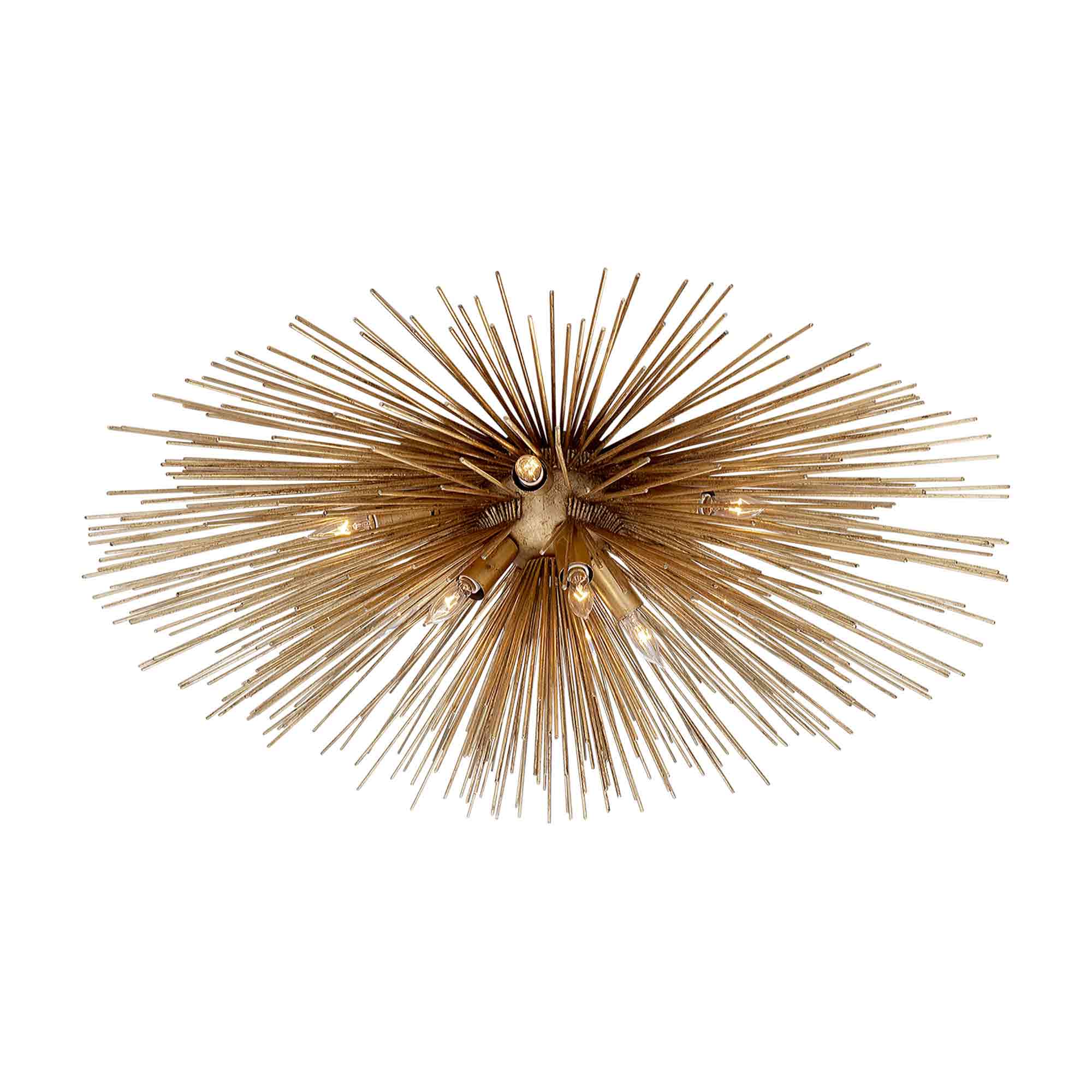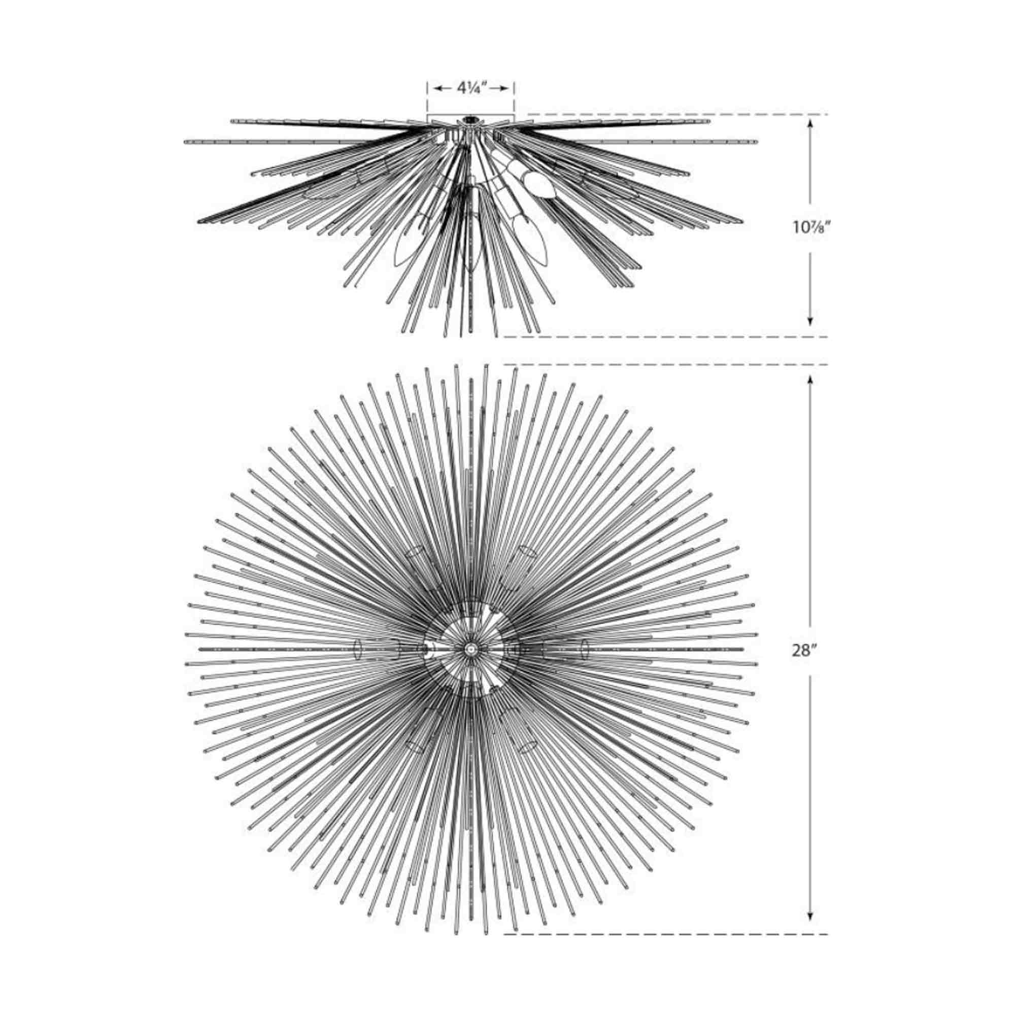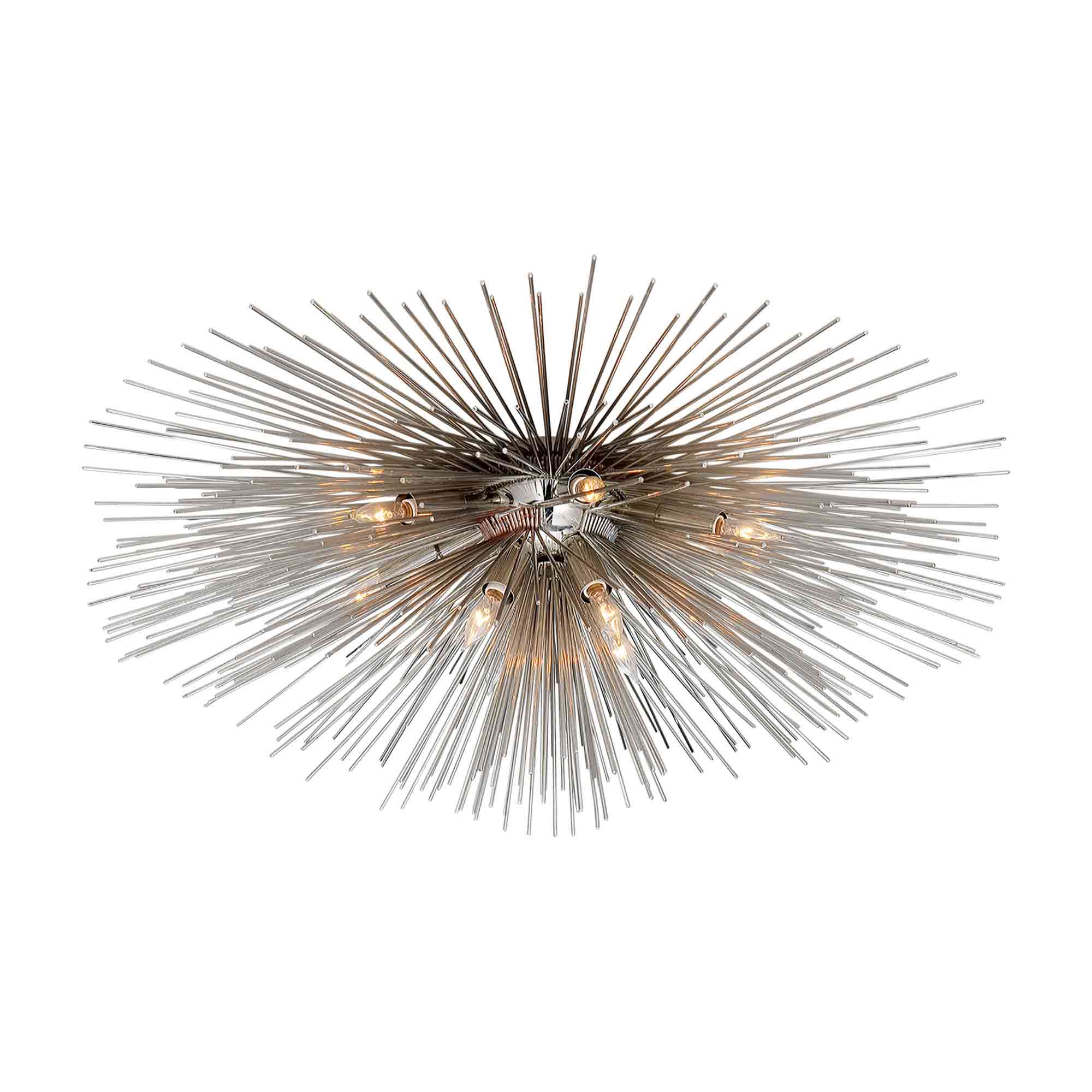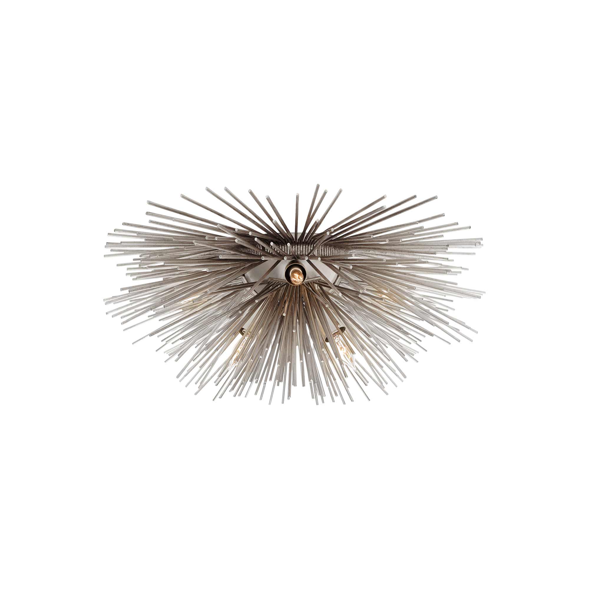 Slim rods gleam in the light of the textured Strada Flush Mount Ceiling Light from Visual Comfort Signature. Organic in its conception, the fixture is a striking choice for a sophisticated living space.