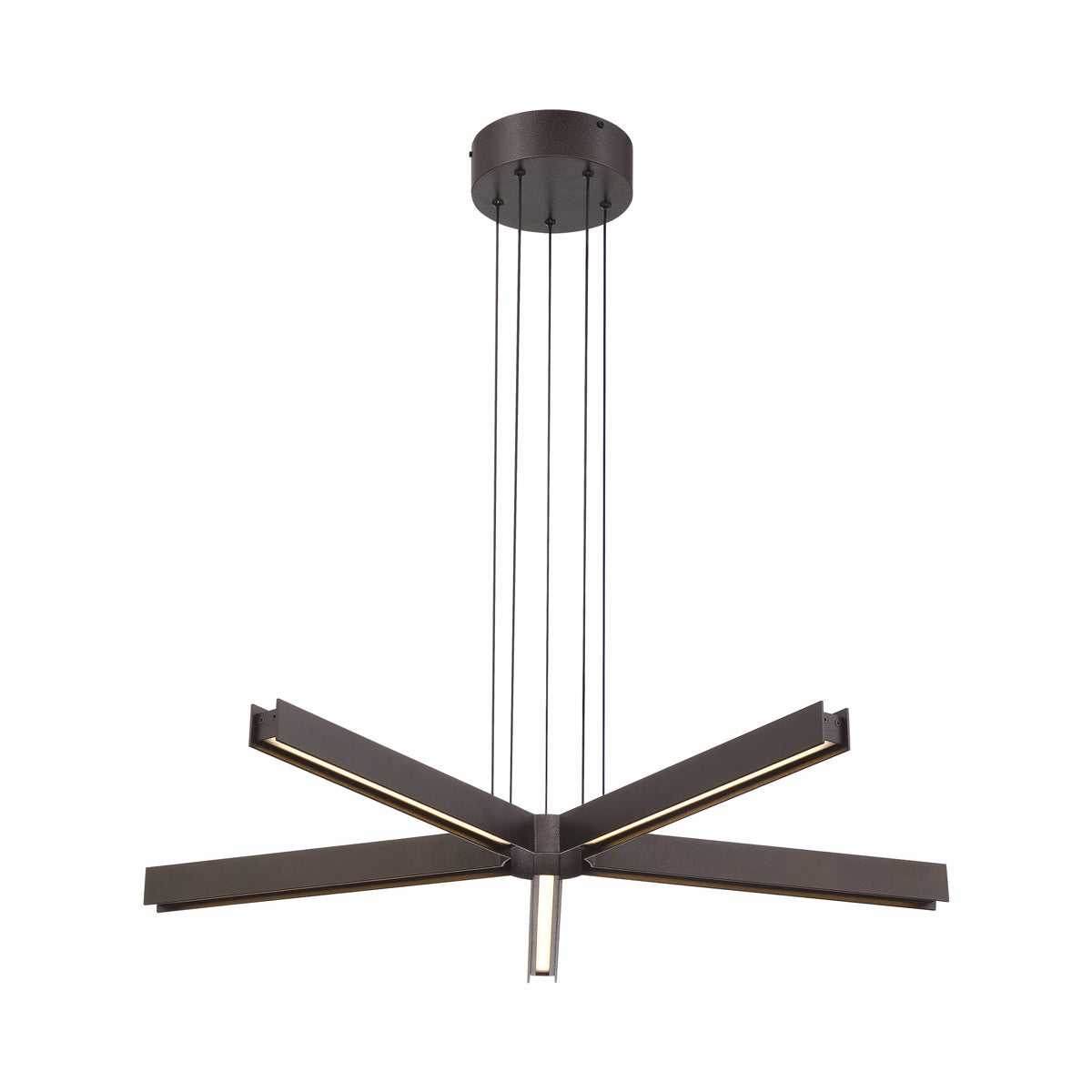 Crisp geometric attitude adds an orderly aesthetic perfect for modern spaces as the Structure LED Chandelier from George Kovacs makes elegance simple. Deliver energy-efficient accent lighting through white glass diffusers nestled in sleek smoked iron finish metal framing that offers a multi-faceted silhouette.
