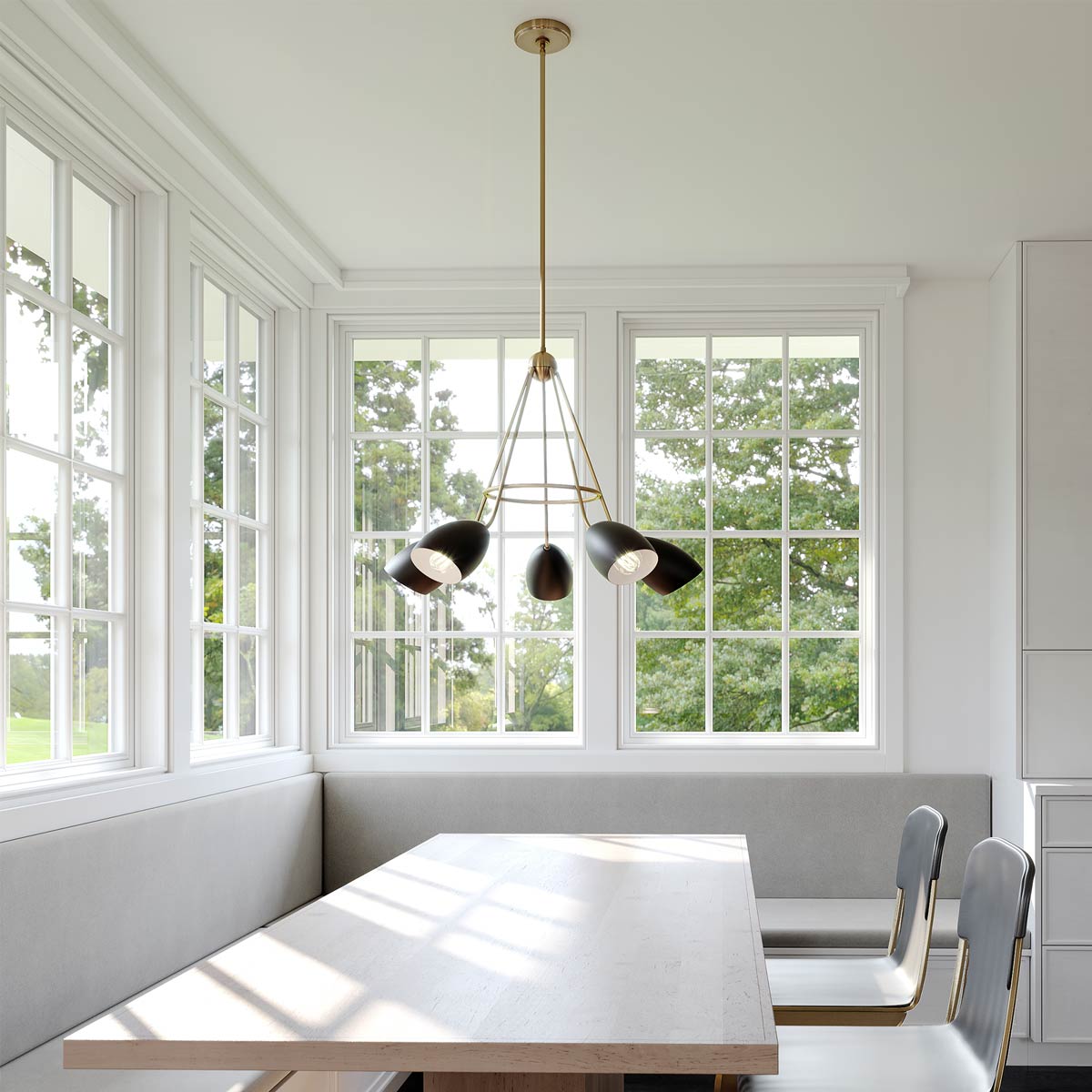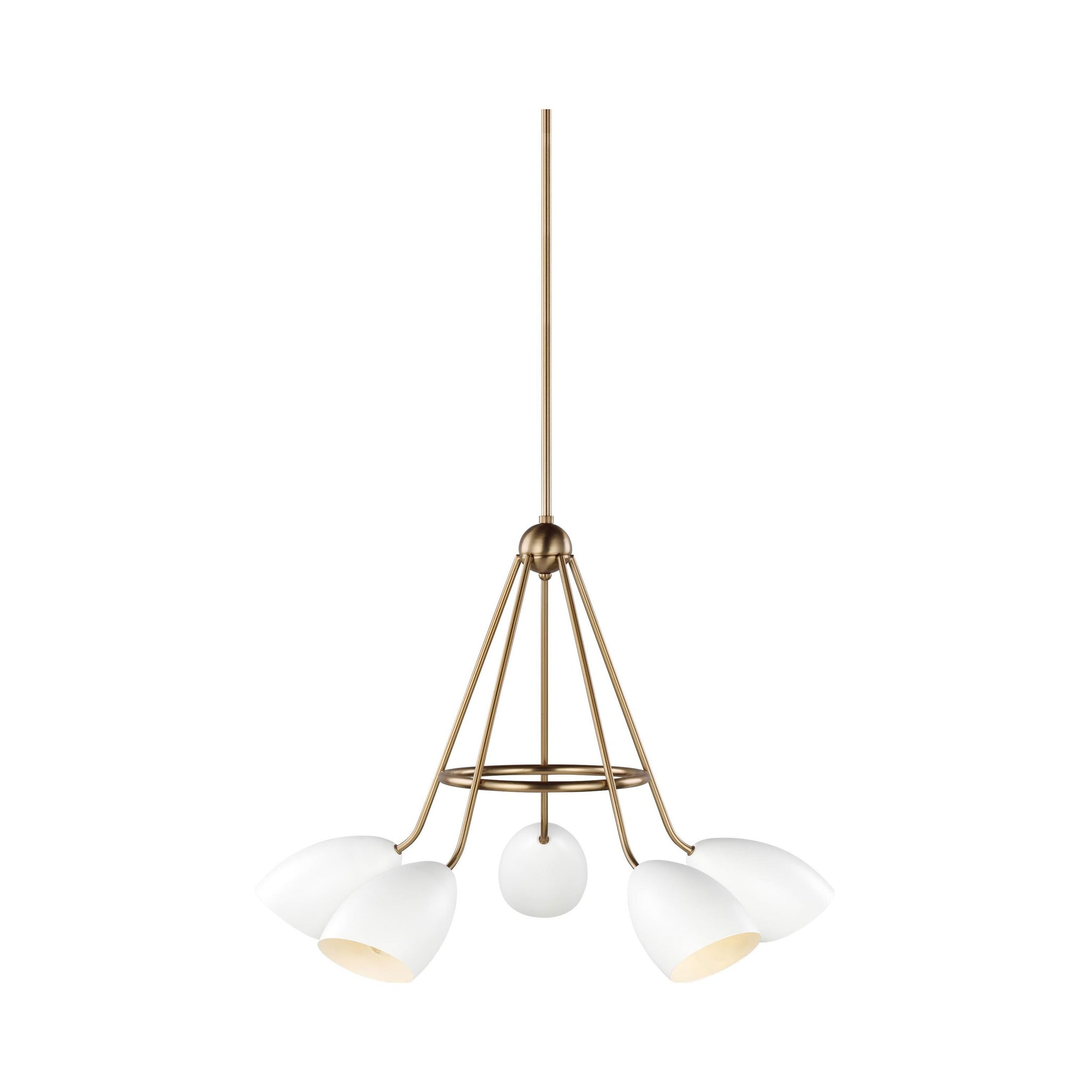 Contrasting steel shades add bold character to the modern silhouette of the Summer Chandelier from Visual Comfort Studio.