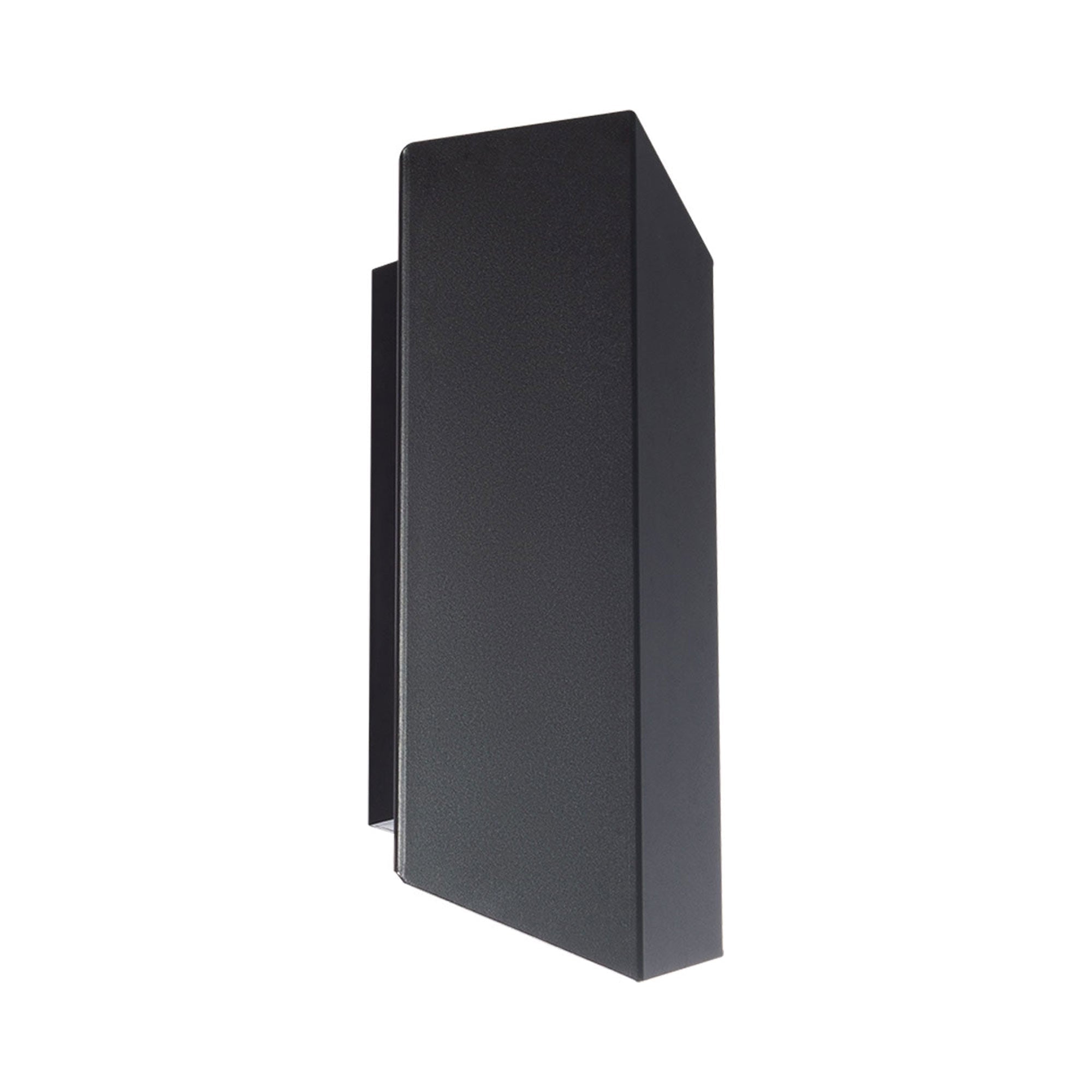 Amplify the boldness of this two-way exterior wall luminaire with equally distributed robust illumination above on facades and below on paths.