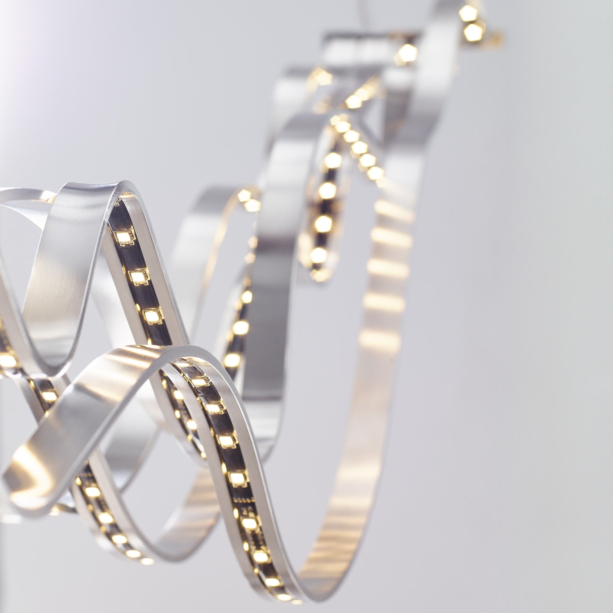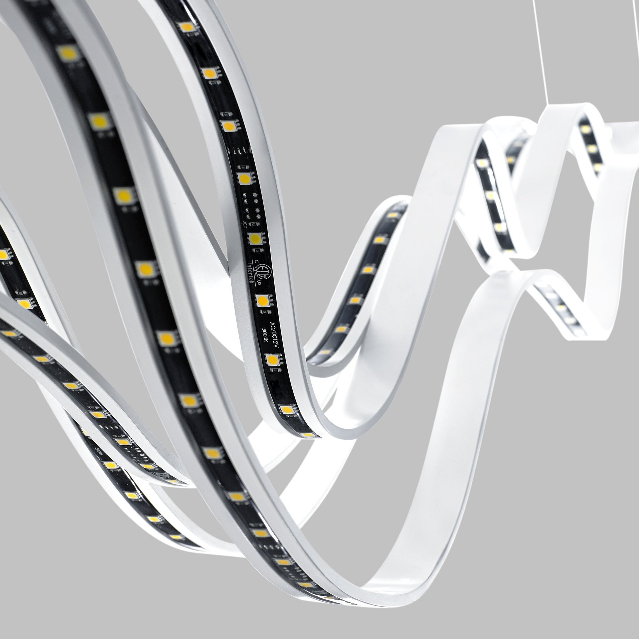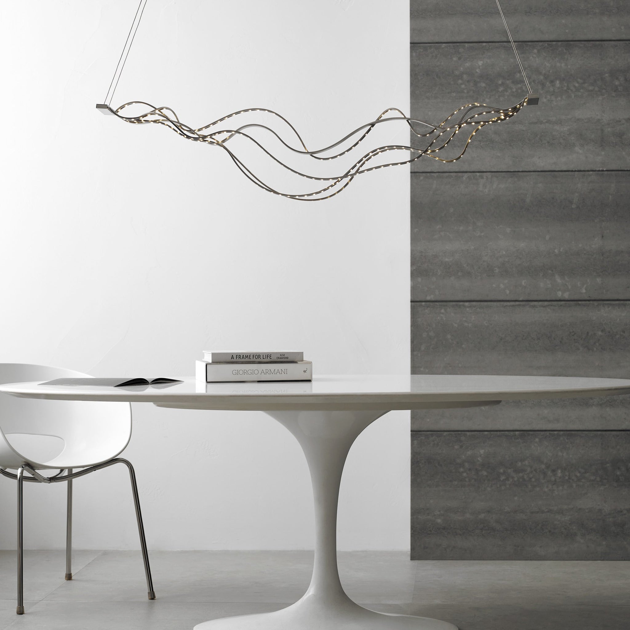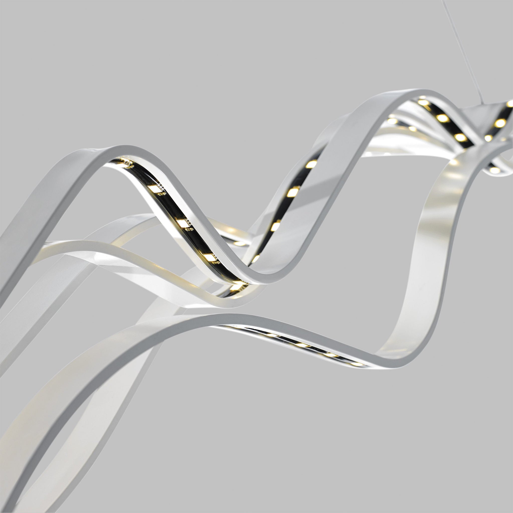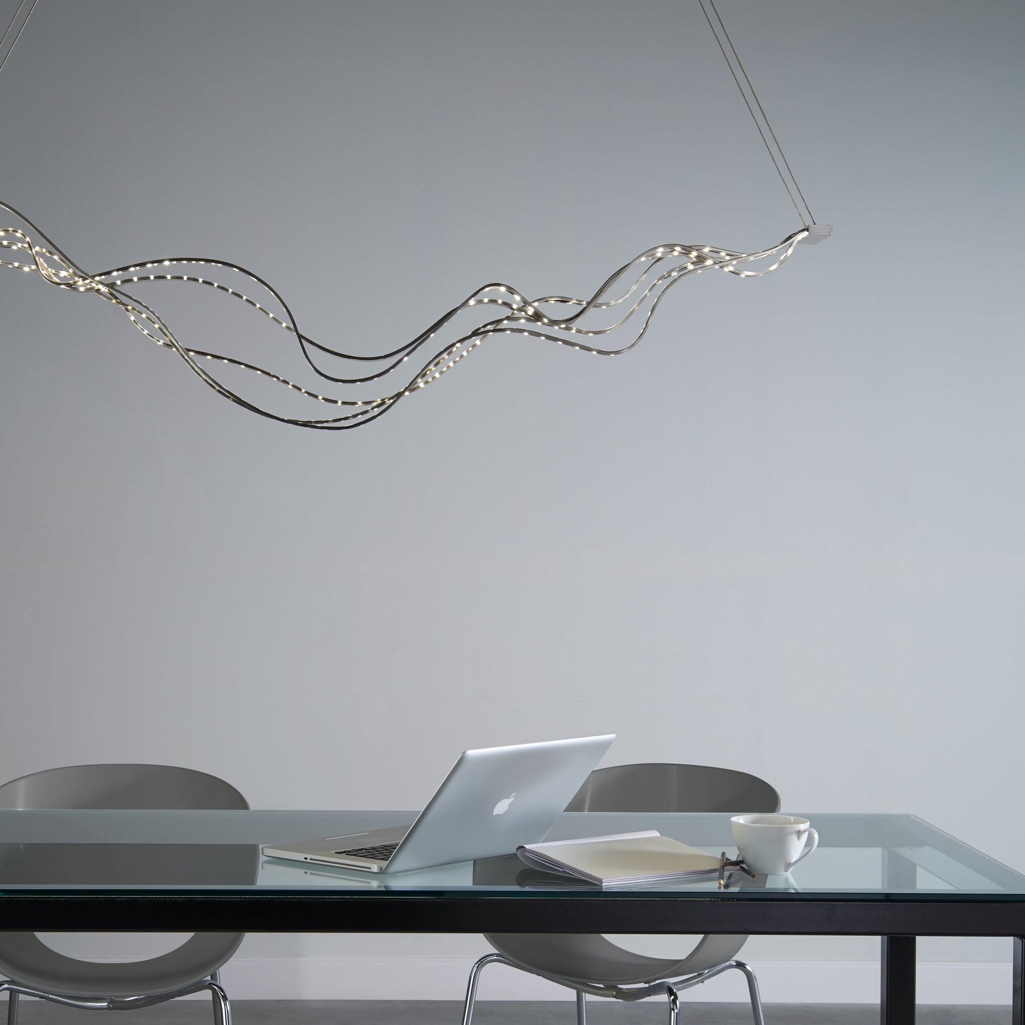 The Surge LED Linear Suspension Light by Visual Comfort Modern appears to float effortlessly with its smooth wavy lines. The graceful force of ocean waves is captured when gently undulating bands of downward and upward firing LED strips join to form a striking fixture capable of creating layers of illumination. Fixtures can be linked together end-to-end to create longer, continuous runs using the optional Mechanical Connector. The Surge fixture spans 54” in length making it ideal for conference room lighting, foyer lighting and a host of commercial and residential lighting applications. Your choice of fully dimmable LED lamping ships with the Surge saving you both time and money. Downward and upward facing LED strips provides downlight and uplight to create layers of illumination. To empower lighting designers to create unique applications, fixtures can be linked together end-to-end to create longer, continuous runs using optional Mechanical Connector.