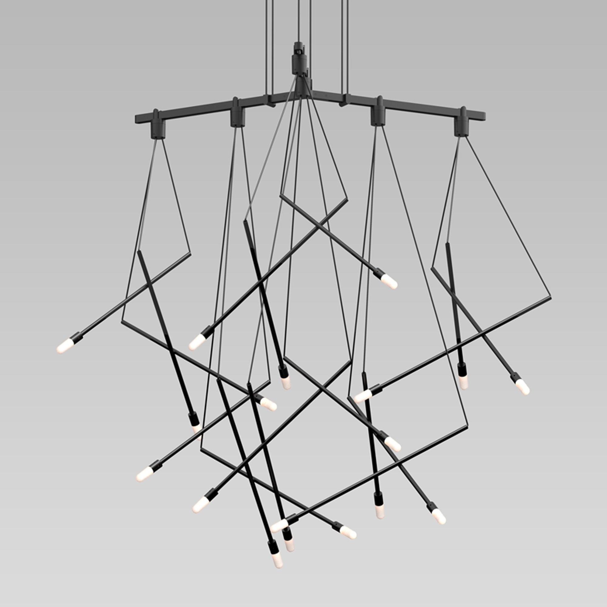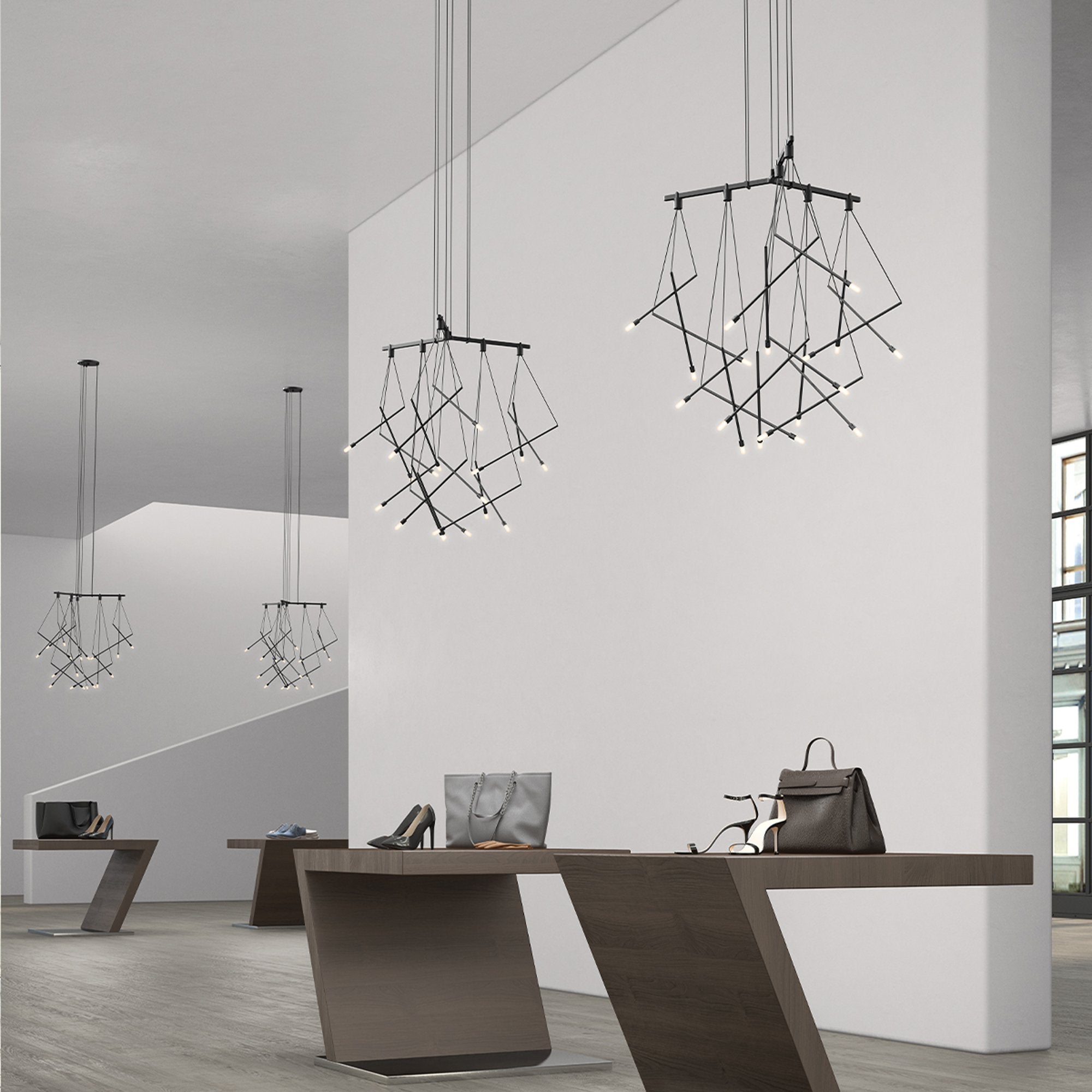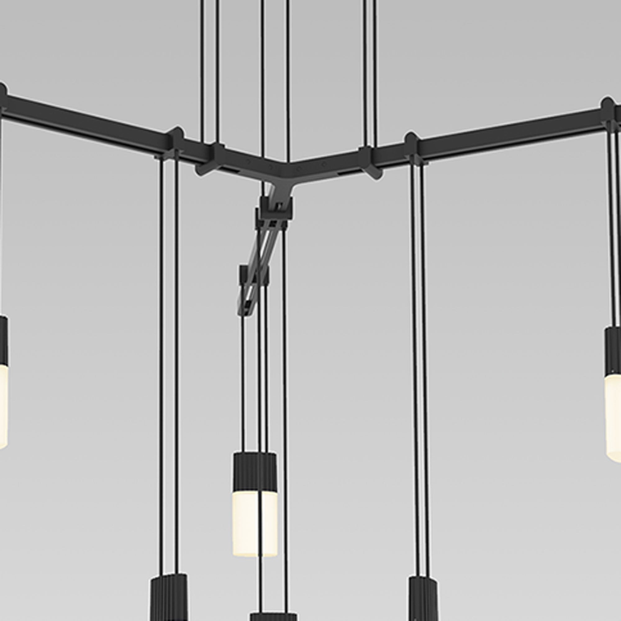 The Suspenders® 1-Tier Tri-Bar LED Pendant Light from Sonneman Lighting lightens the mood in a contemporary space with geometric flair and whimsical attitude, offering dangling lenses in a choice of etched chiclet or branch pendants.