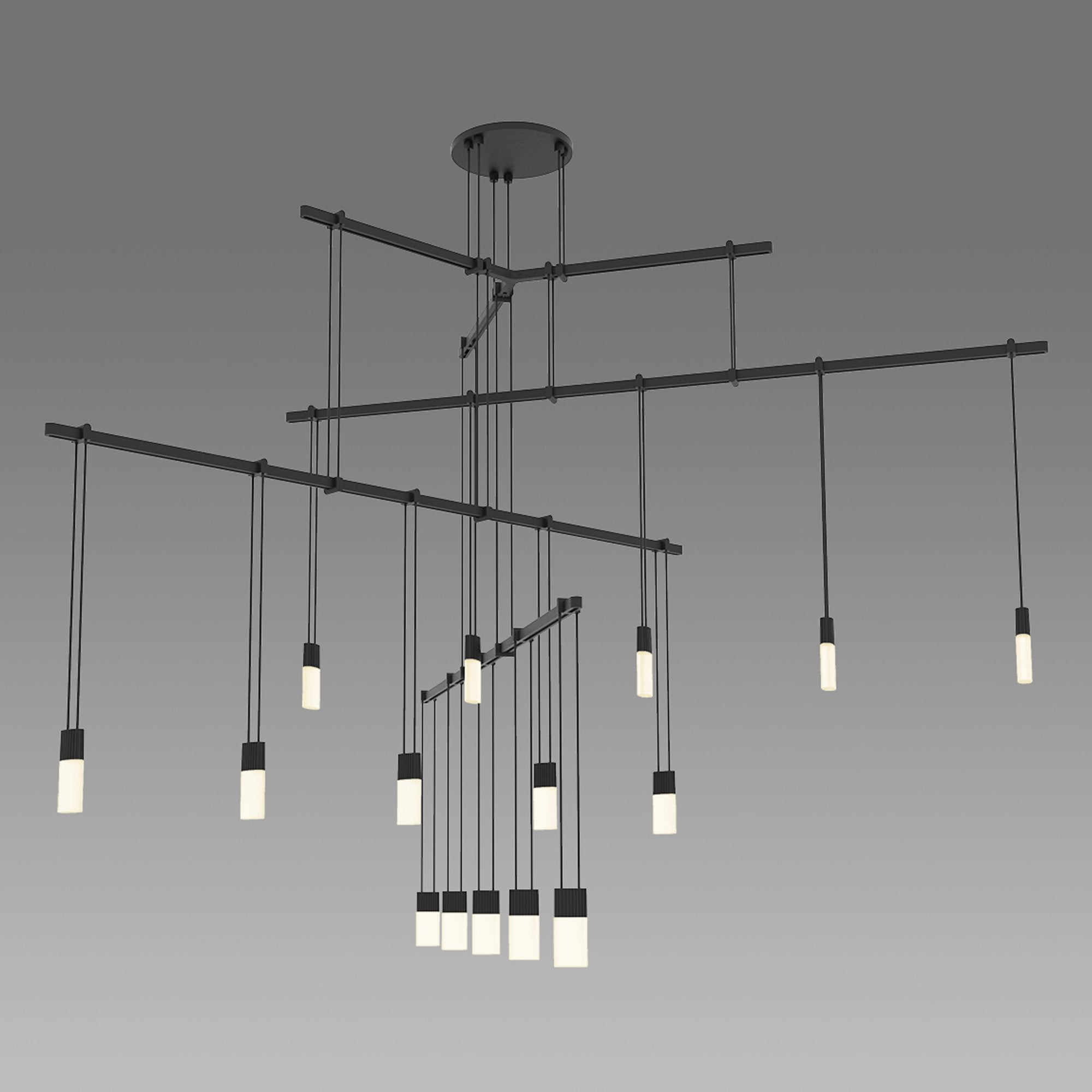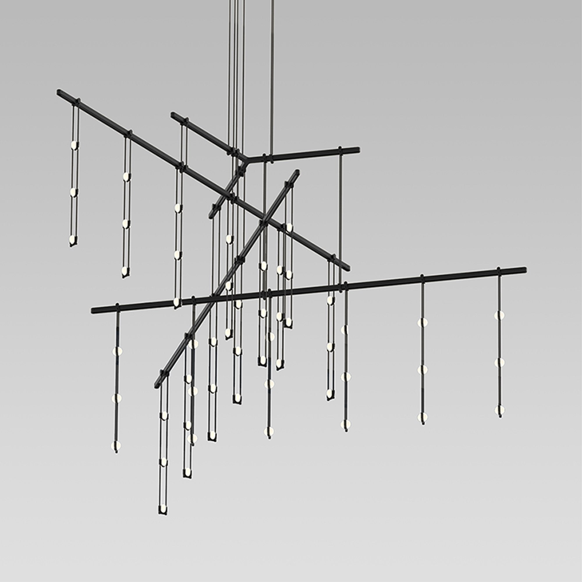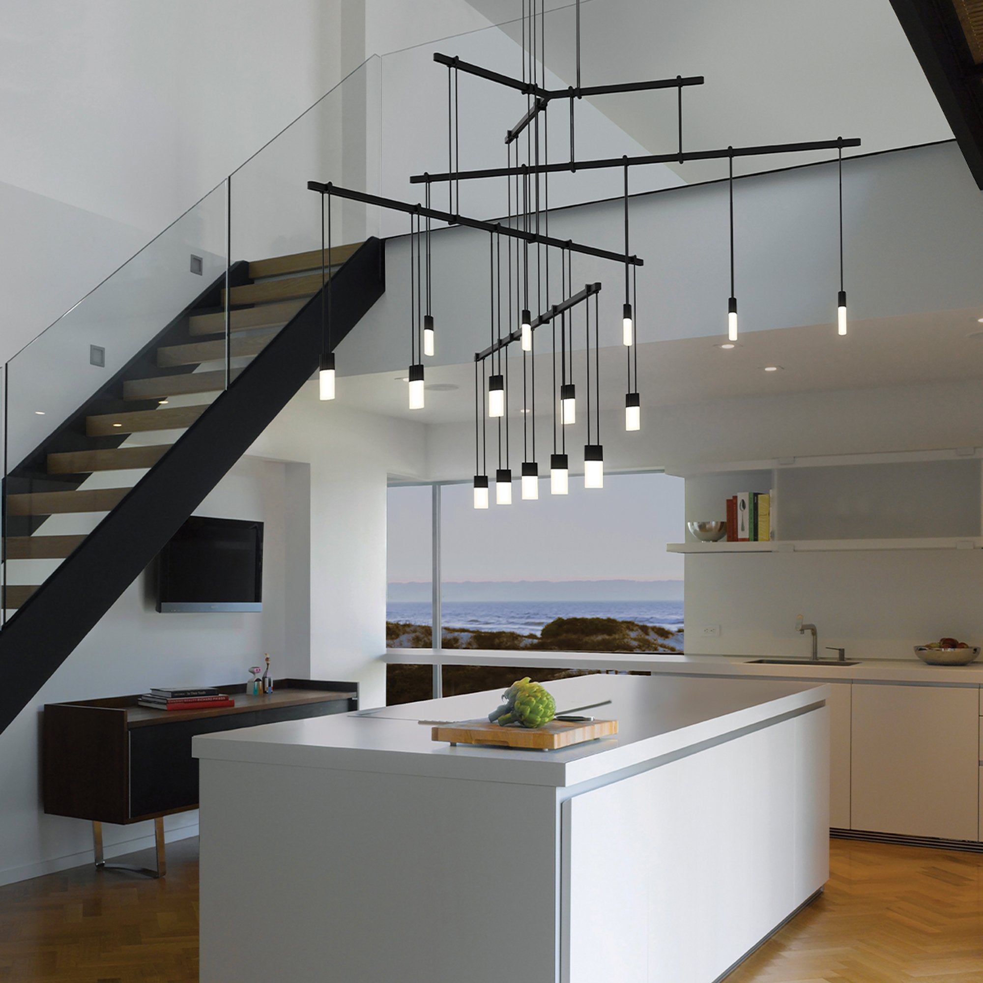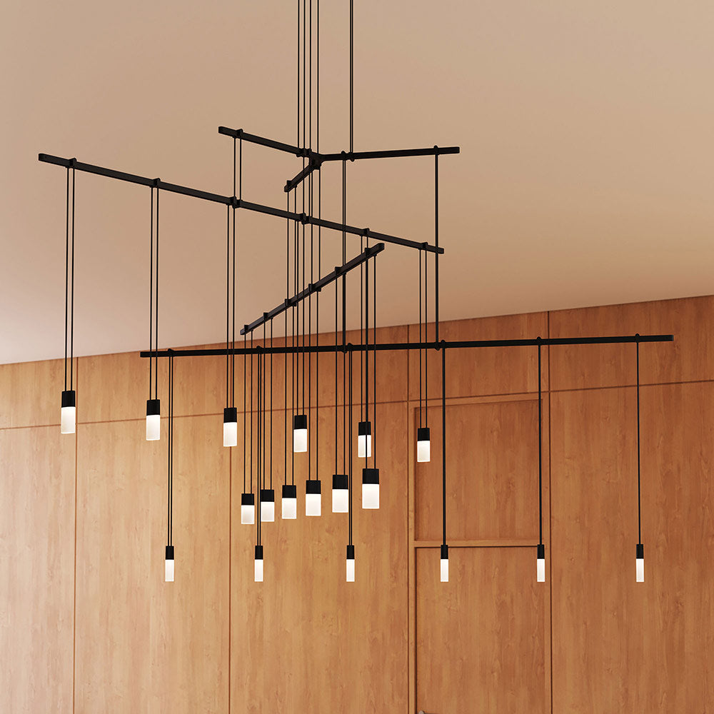 Orchestrate a sleek modern look with the Suspenders® 4-Tier Tri-Bar LED Pendant Light from Sonneman Lighting and its fun layered linear design offering dangling lenses with an iconic pick-up-stix silhouette.