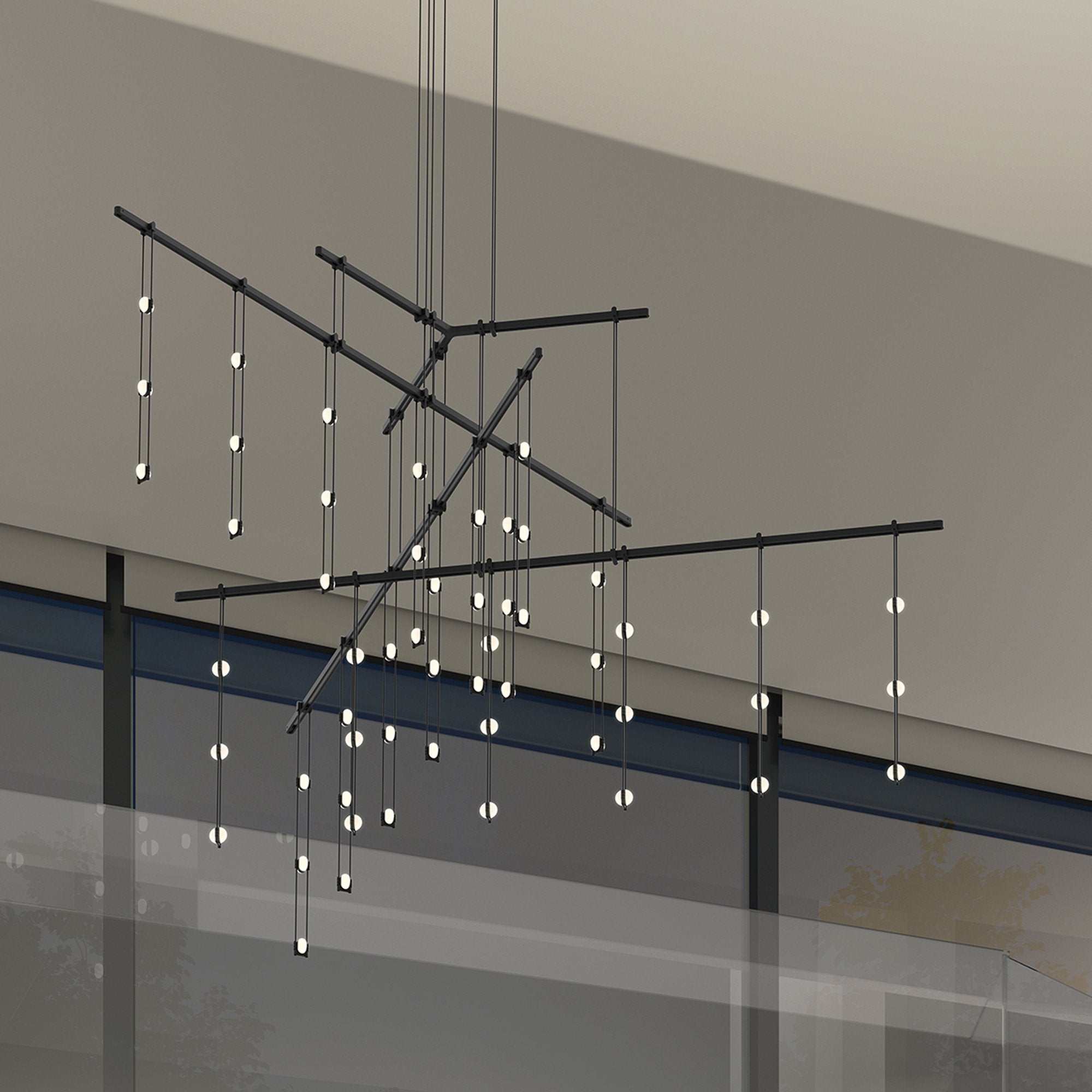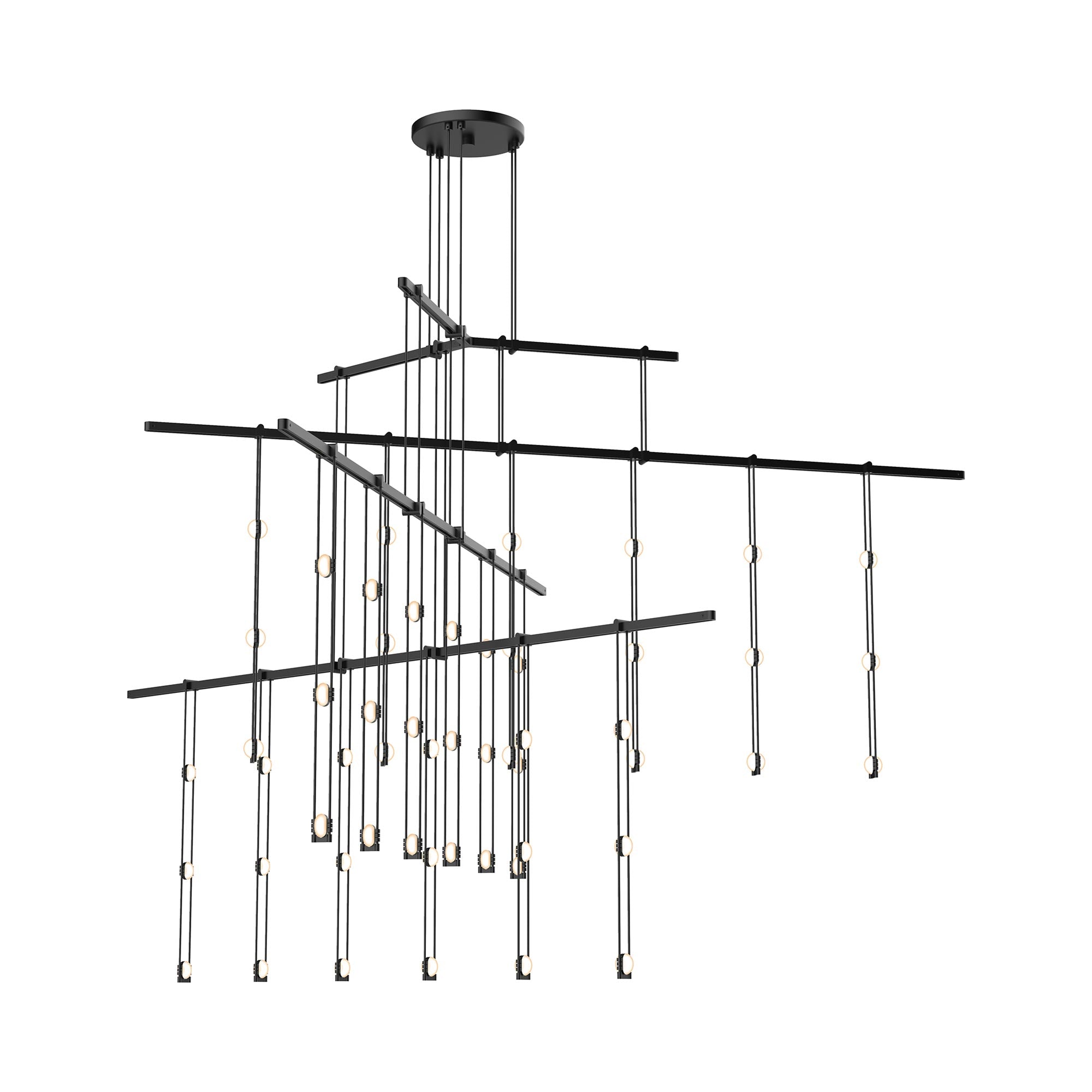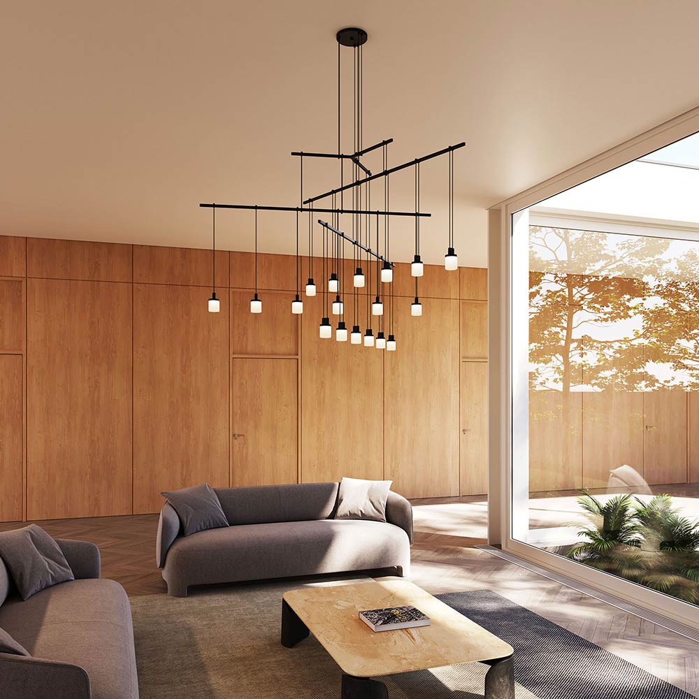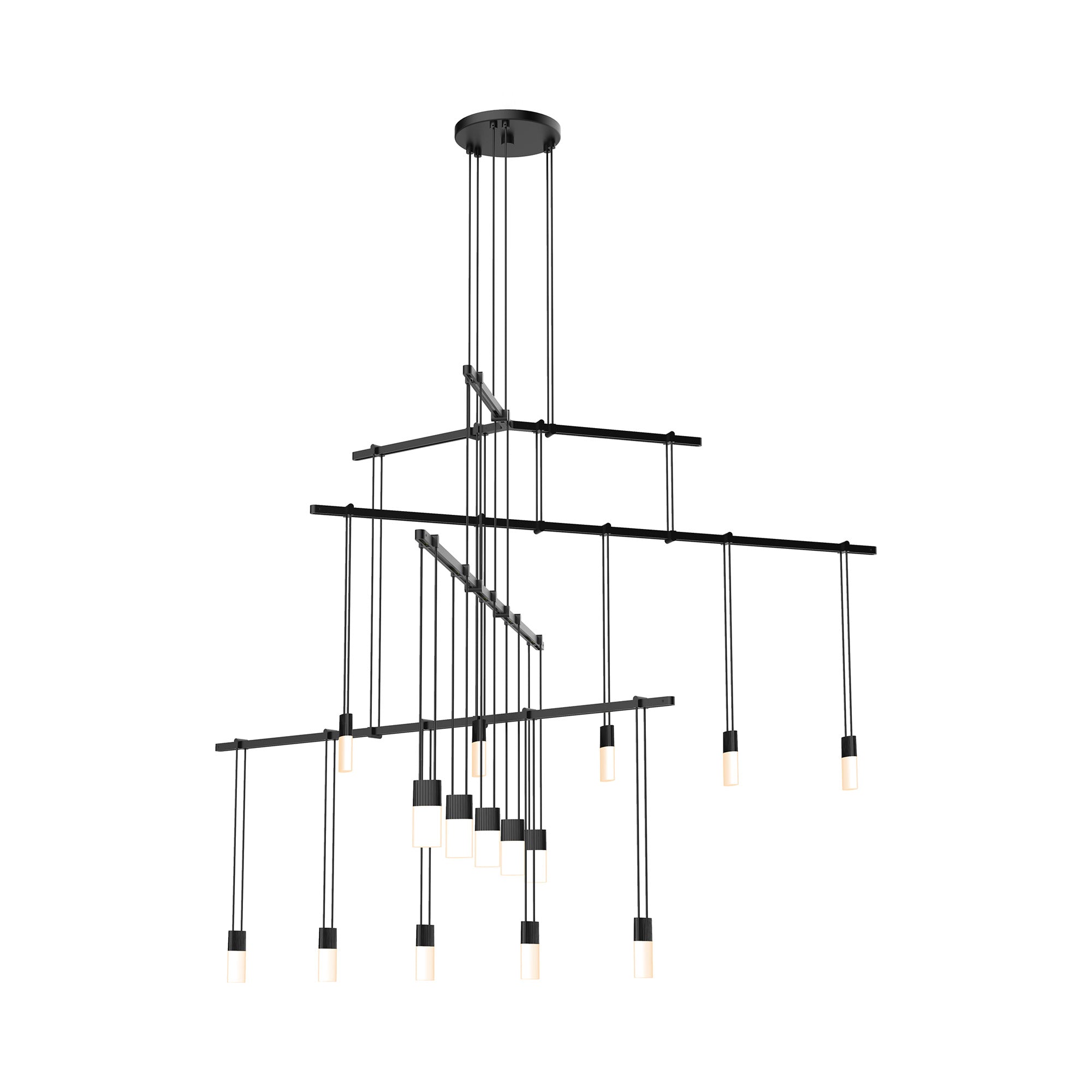 Orchestrate a sleek modern look with the Suspenders® 4-Tier Tri-Bar LED Pendant Light from Sonneman Lighting and its fun layered linear design offering dangling lenses with an iconic pick-up-stix silhouette.