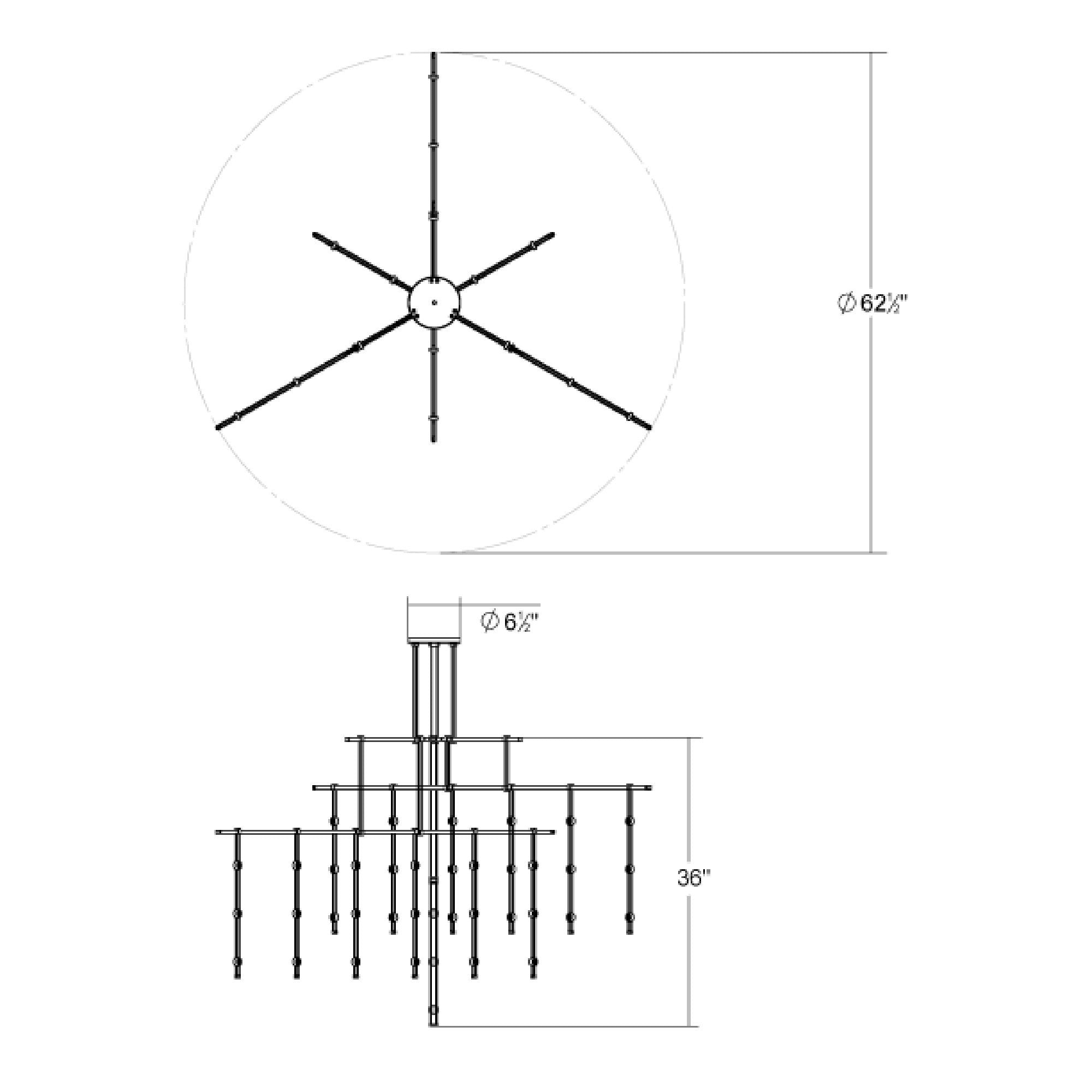 - Crystal Ladder Light: 61"D X 36"H; 109" max height