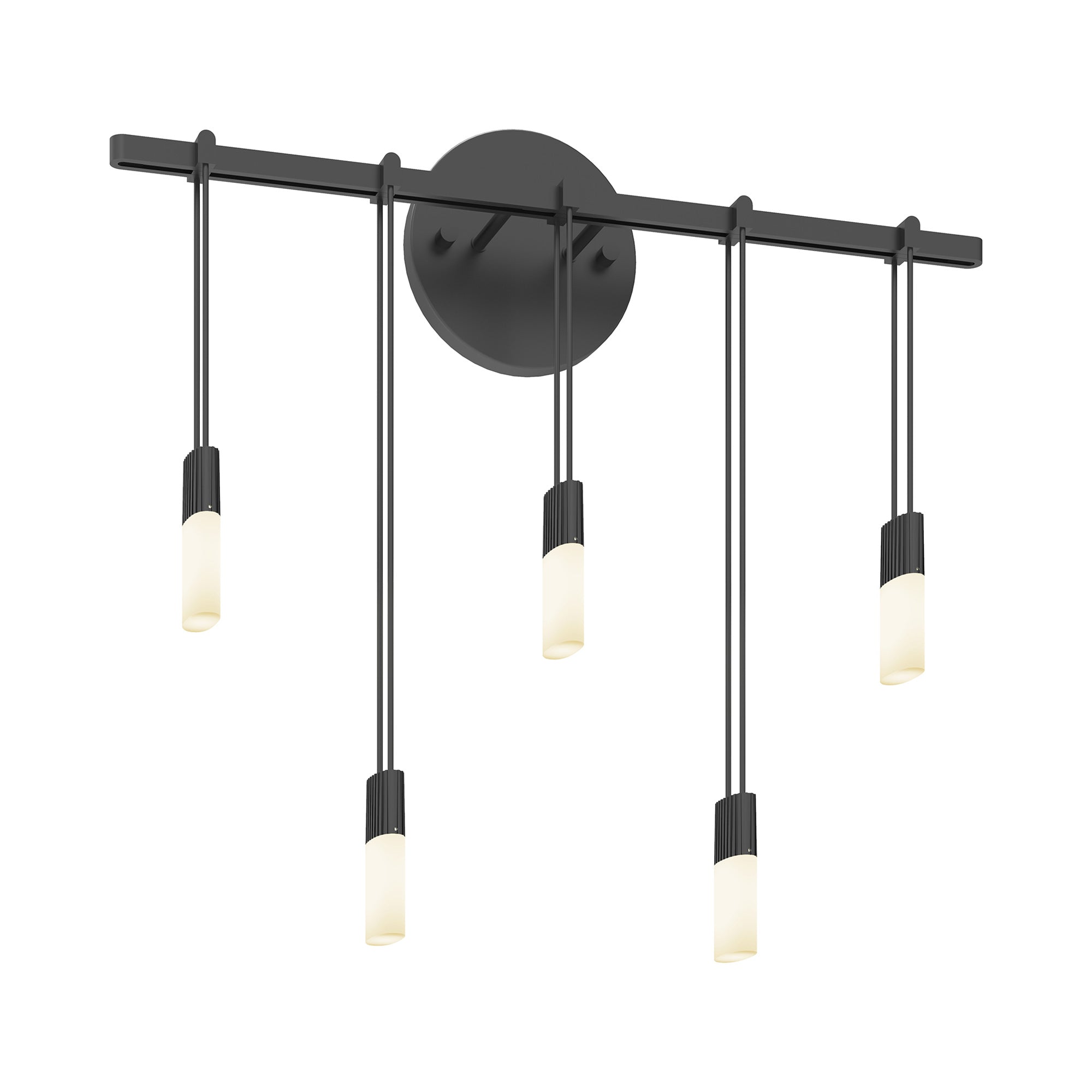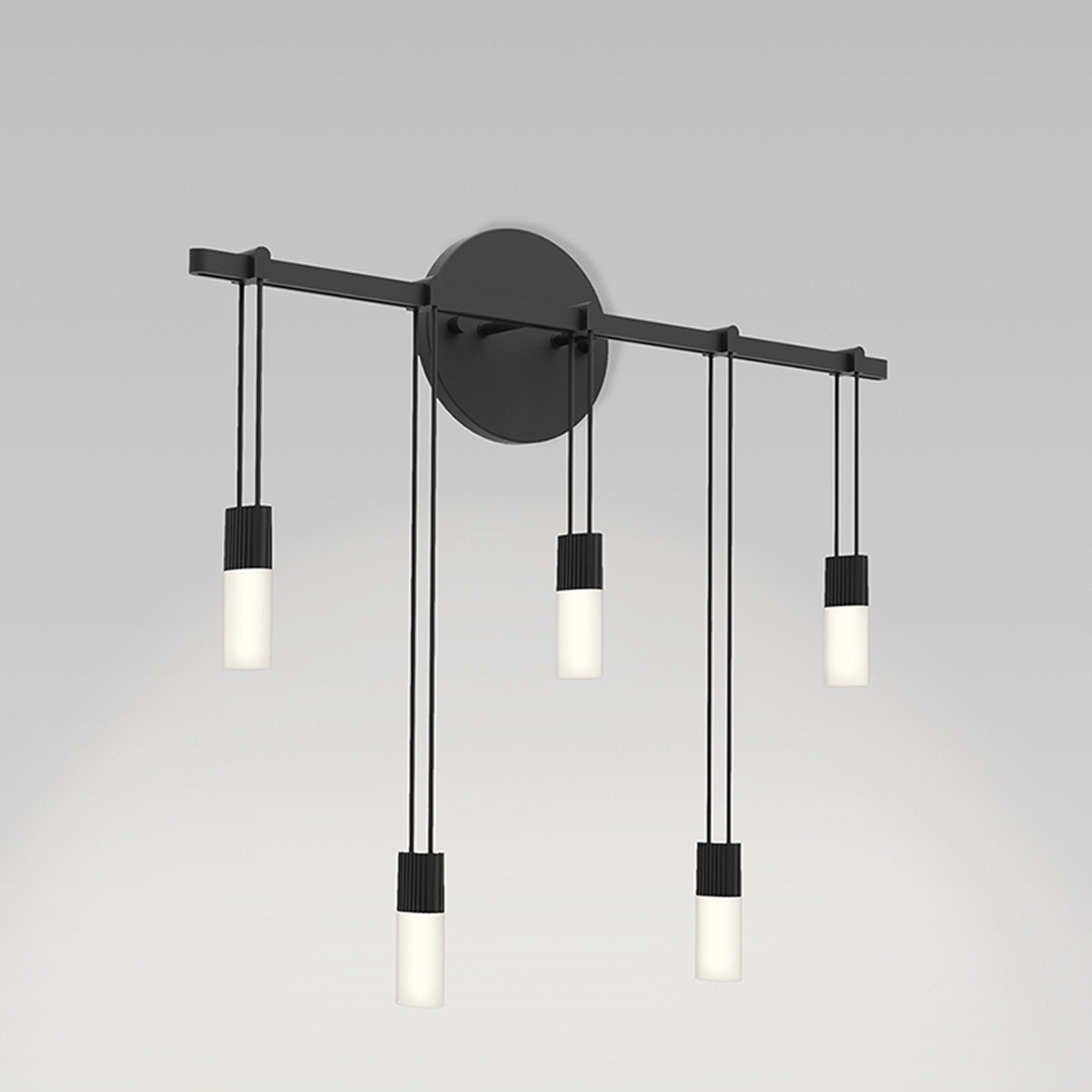 Keep an orderly motif alive with the linear design of the Suspenders® Bar LED Wall Light from Sonneman Lighting, embracing slender silhouetting and dangling lenses made of etched glass and ribbed seeded crystals.
