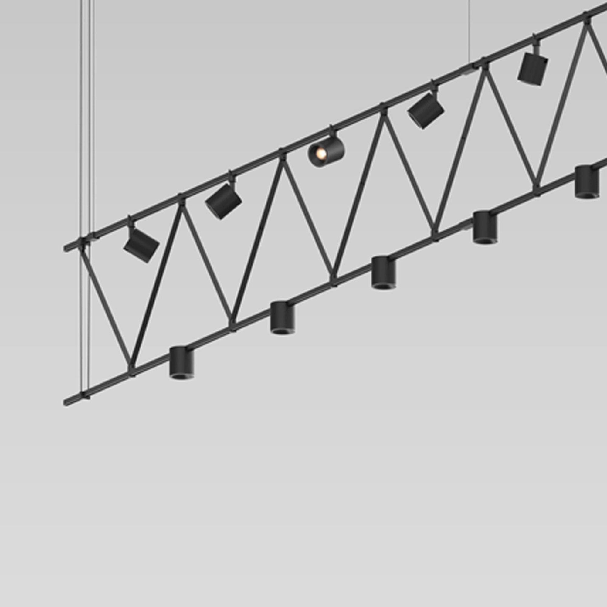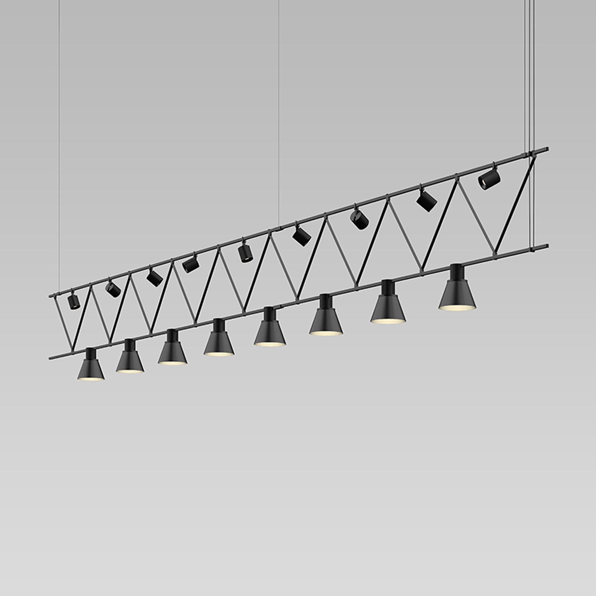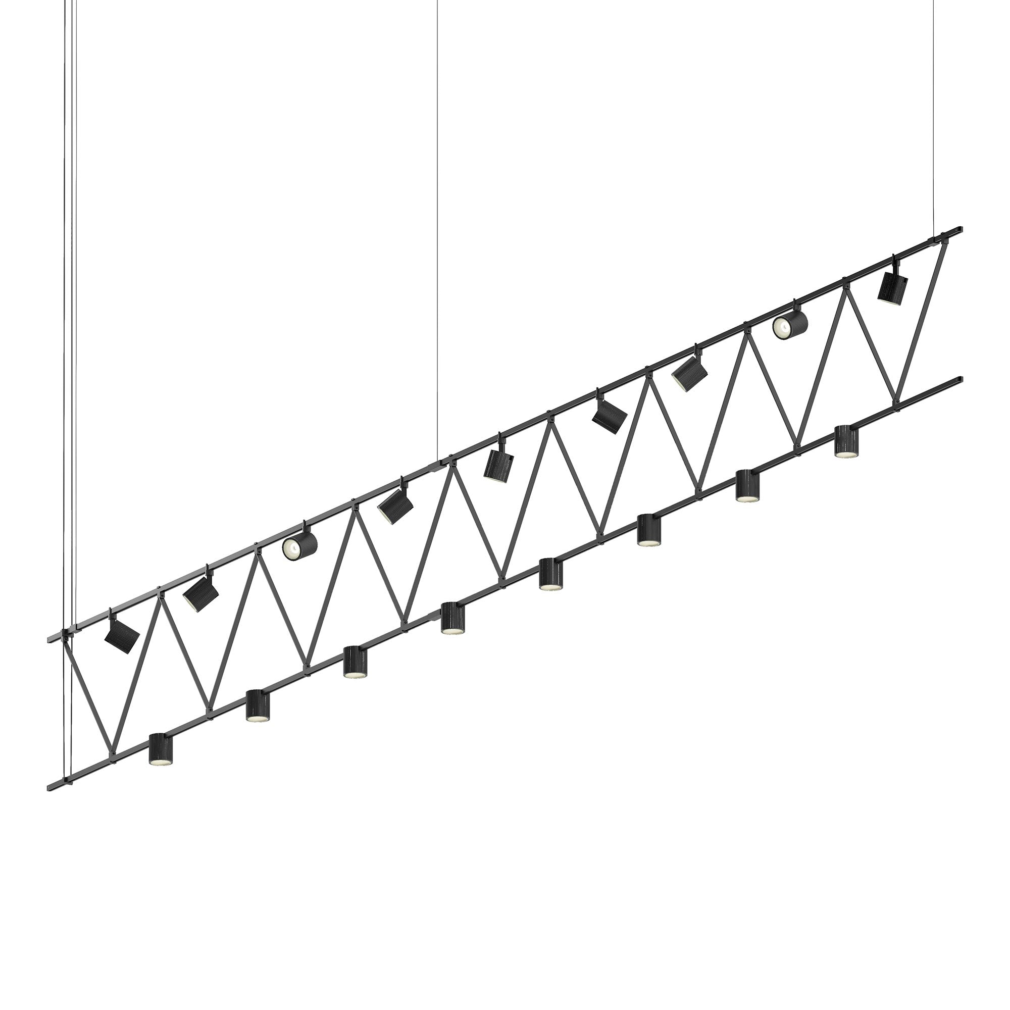 Customized with a choice of lens types, the Suspenders® Flat Truss Linear LED Suspension Light from Sonneman Lighting delivers a delightful look with zig-zag linear silhouetting and petite studio-style shades offering flexible positioning that sends lighting in tailored directions.