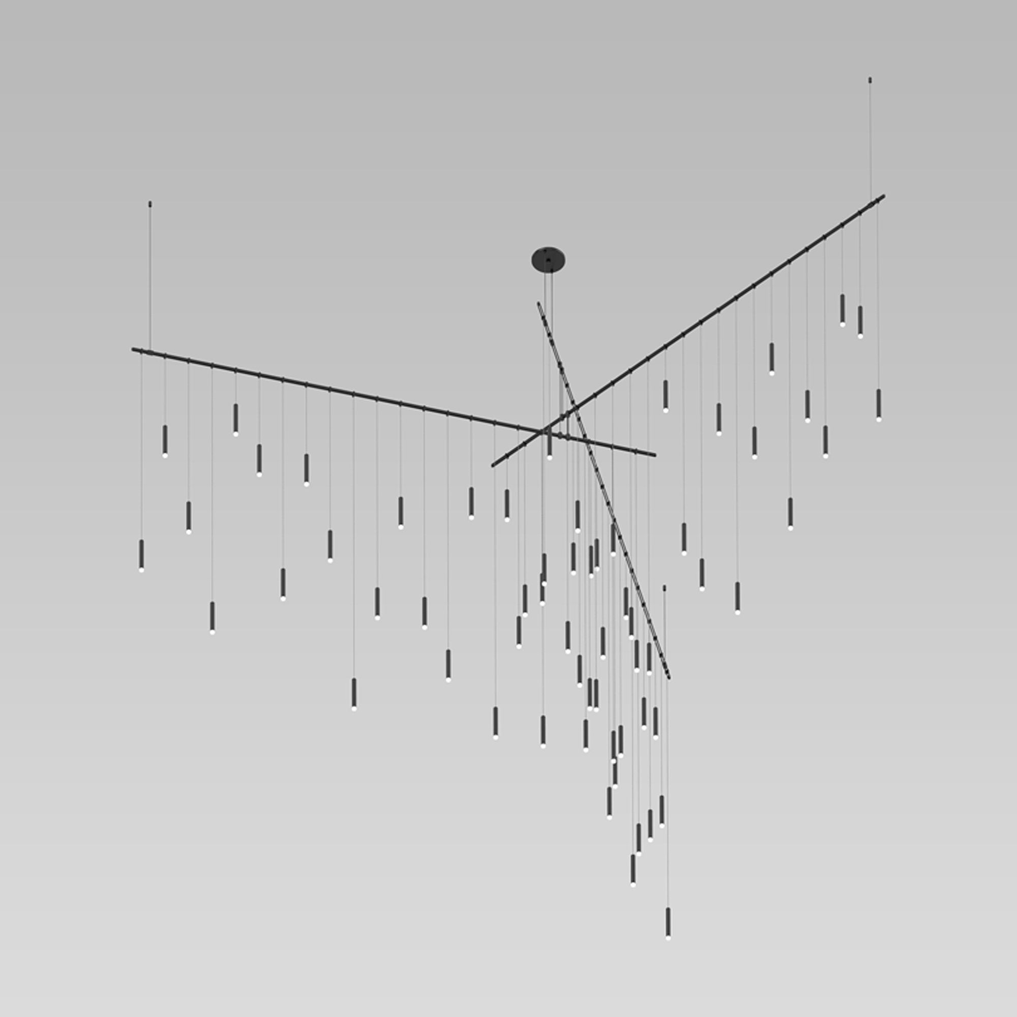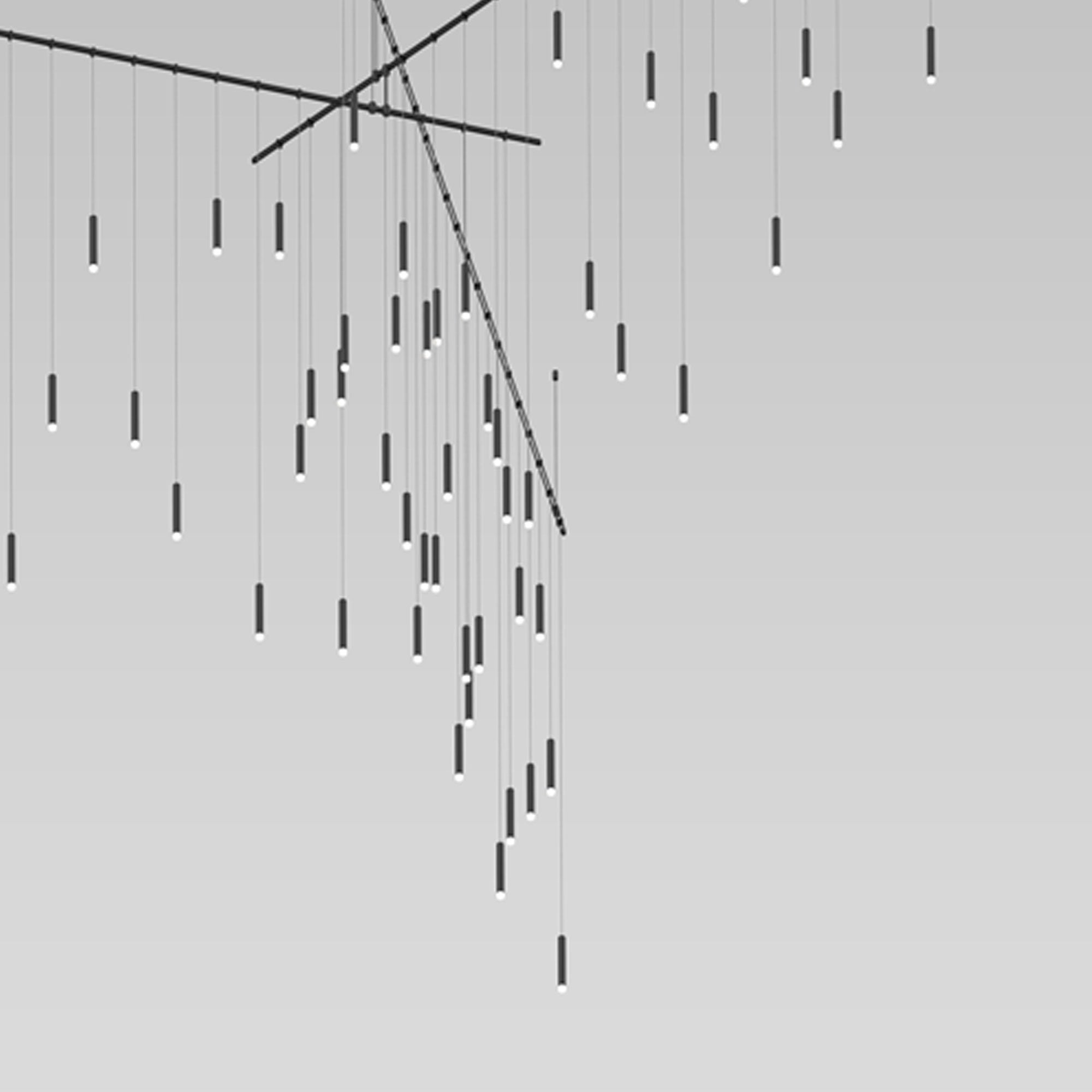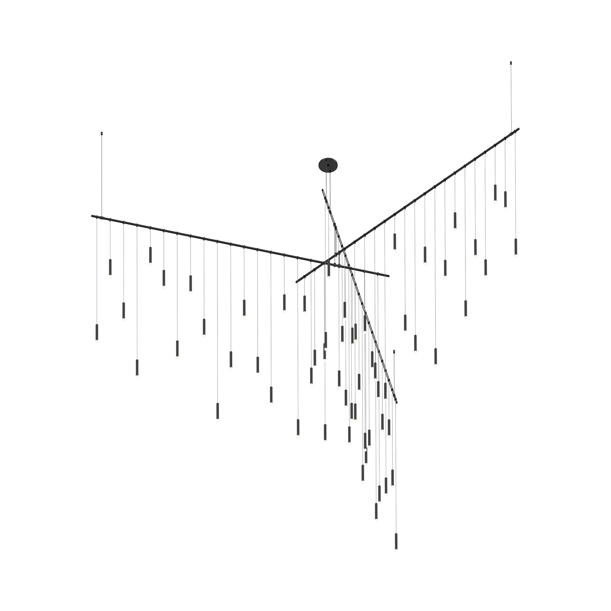 Aluminum construction pads the light essence and sleek design of the Suspenders® Freeform Tri-Bar LED Pendant Light from Sonneman Lighting, creating a festive contemporary mood out of linear styling and a sea of petite gleaming lenses.