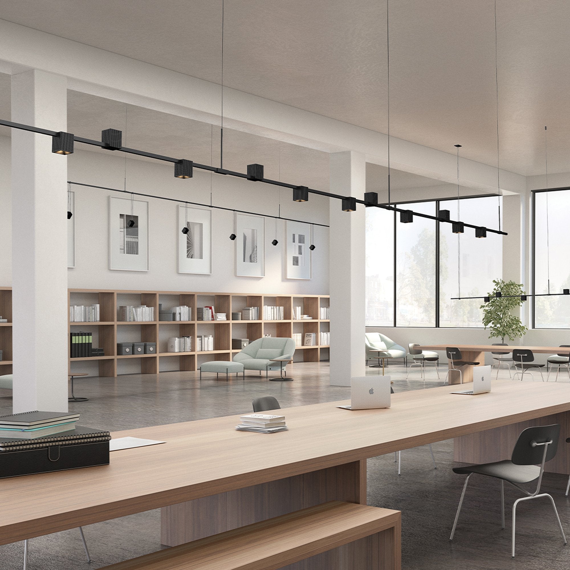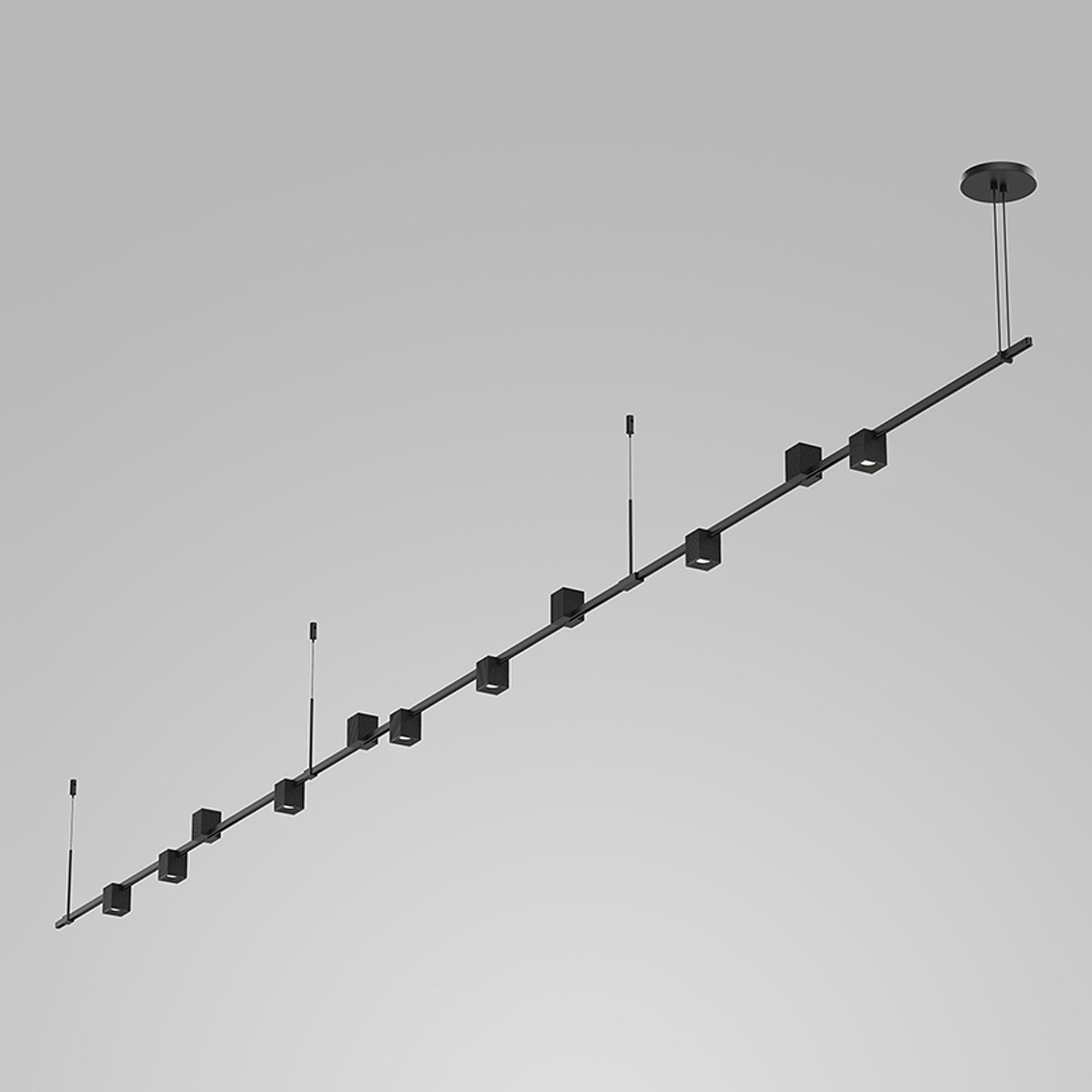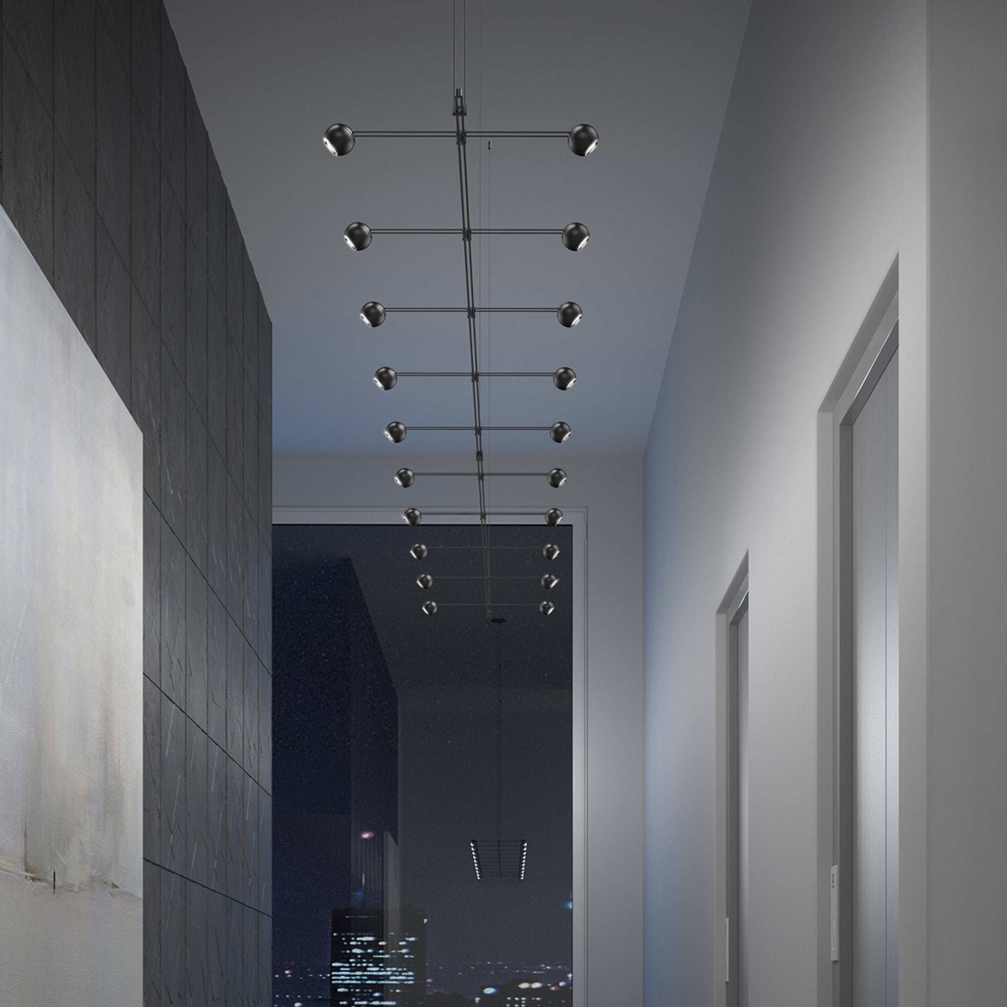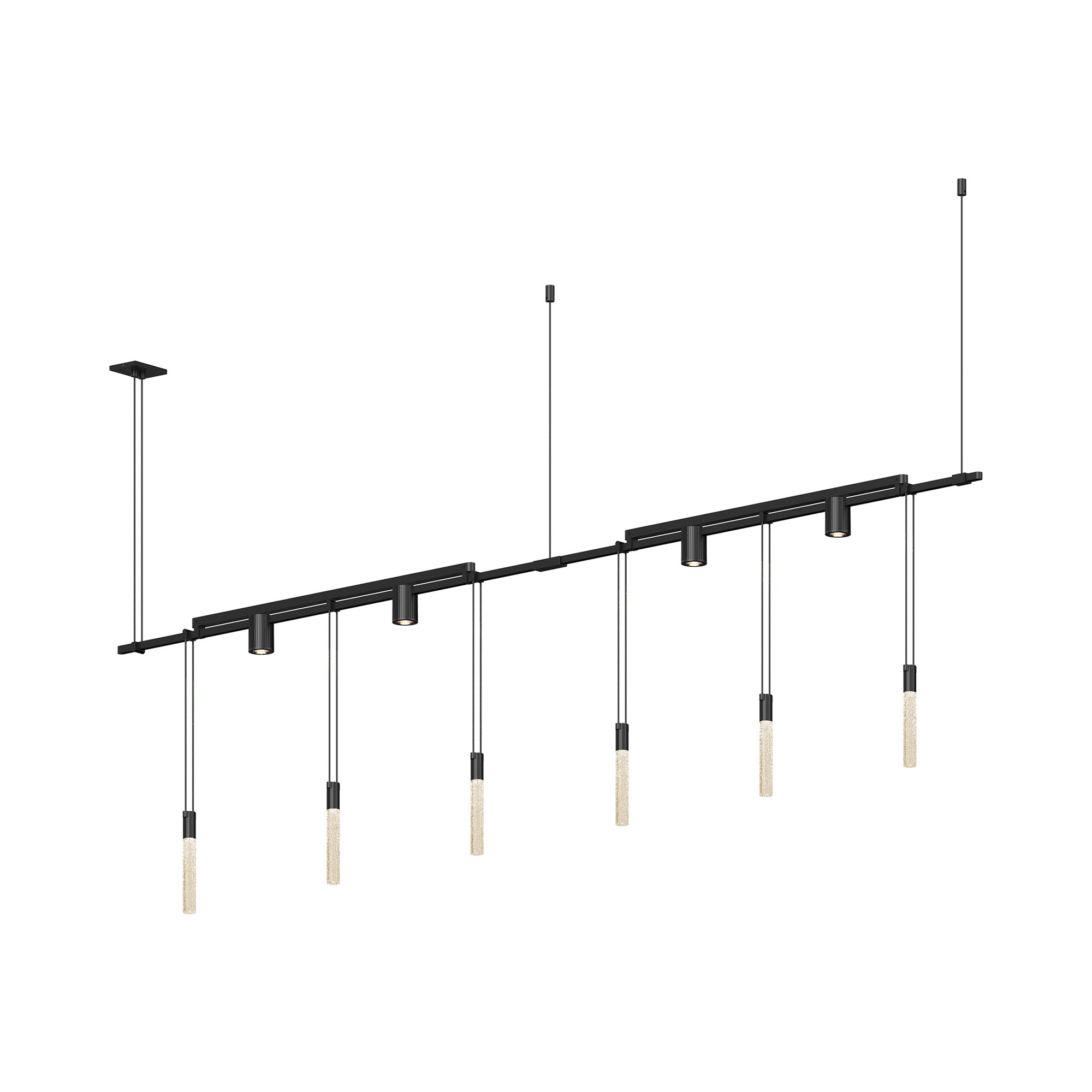 A striking contemporary aesthetic mixing geometric with artisanal offers a studio-inspired industrial feel to the Suspenders® In-Line Linear LED Pendant Light from Sonneman Lighting, embracing a linear silhouette with a dye-cast aluminum frame and diffusers featuring either ribbed seeded crystal or acrylic shades.