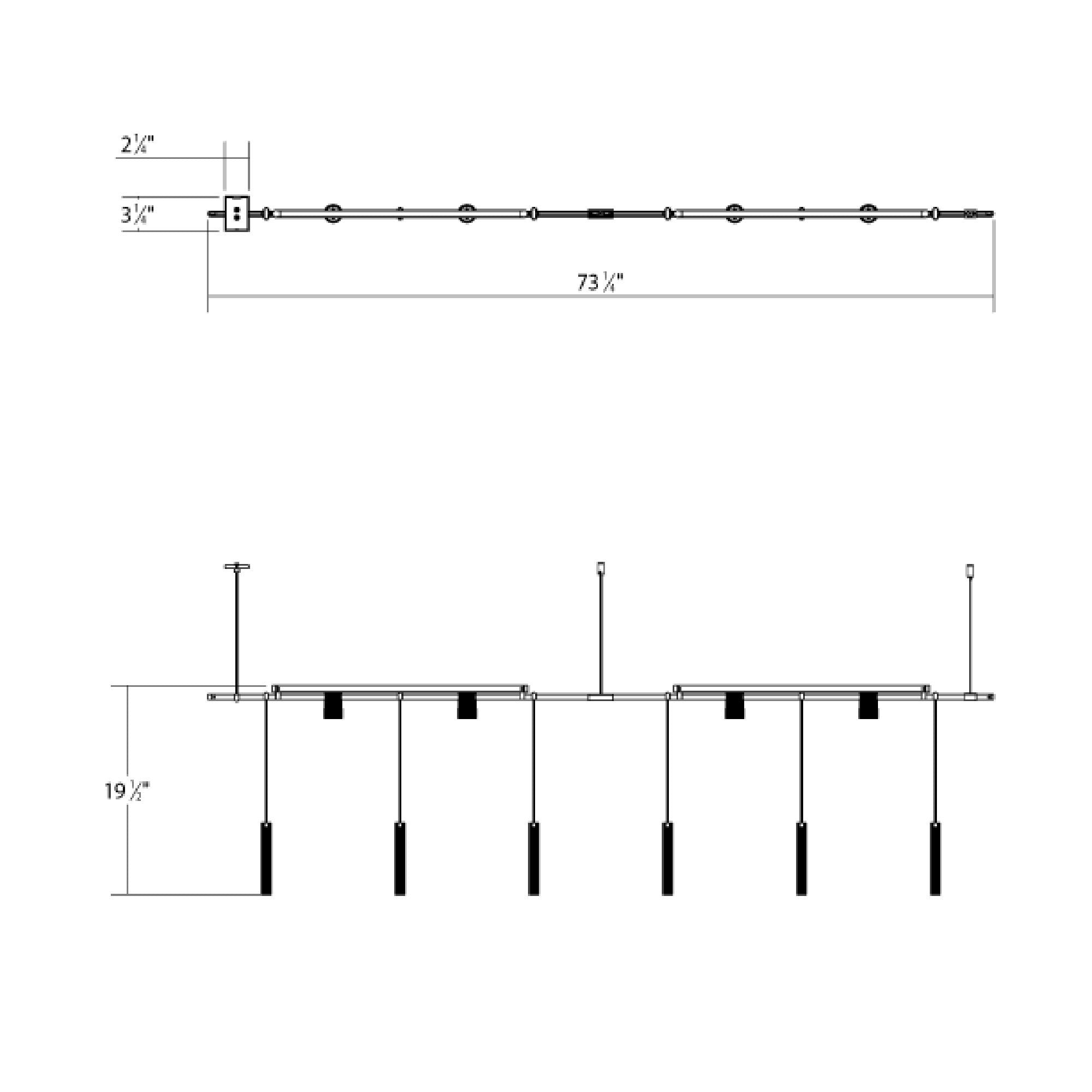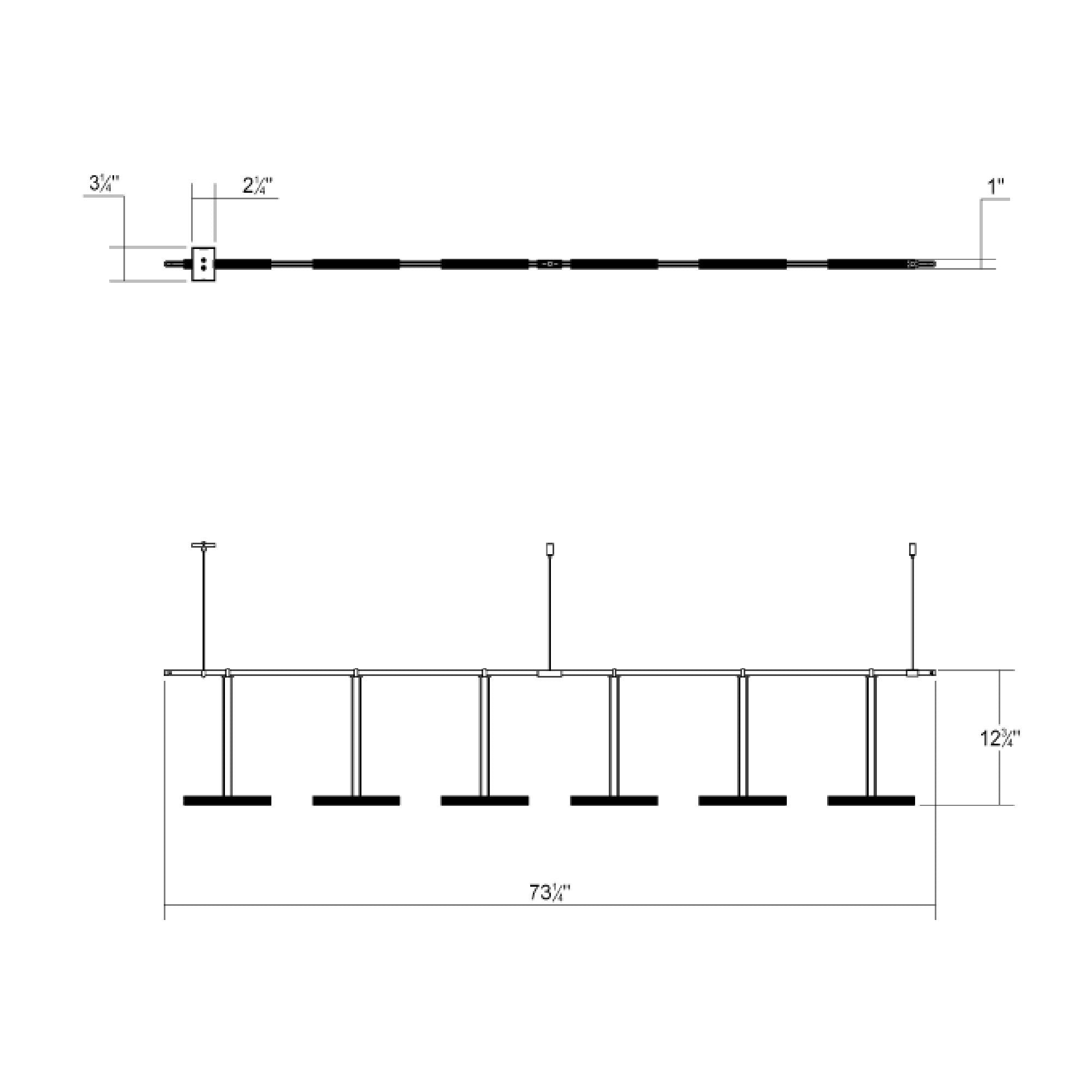 - Mezzaluna Luminaires: 146"W X 6"H; 4" max height