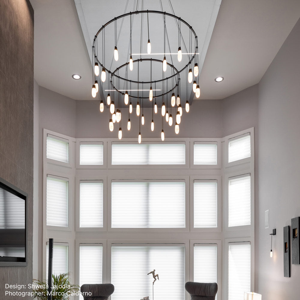 - Etched Rod: 36 X 2W 120V integrated LED modules; 4320 lumens, 90 CRI, 3000K (included)