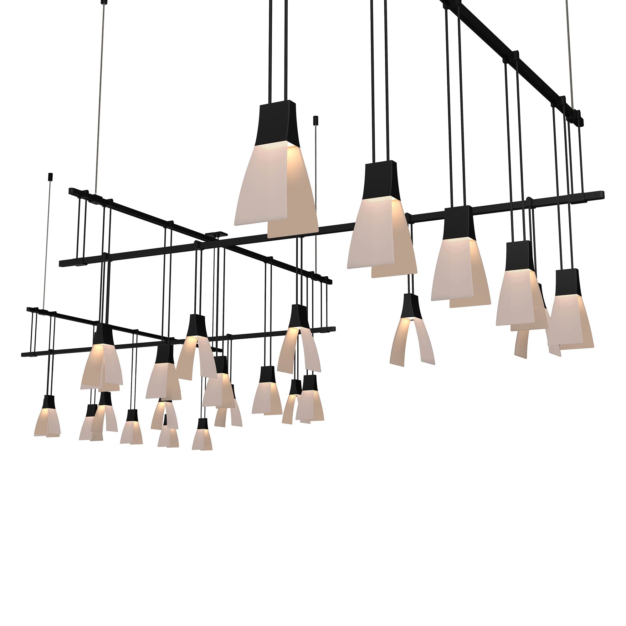 Impressive retro-influenced style takes shape in the Suspenders® Zig Zag LED Pendant Light with Wings Luminaires from Sonneman Lighting, bringing character and ambient lighting with etched glass V-shape diffusers and bold black finish suspension elements.