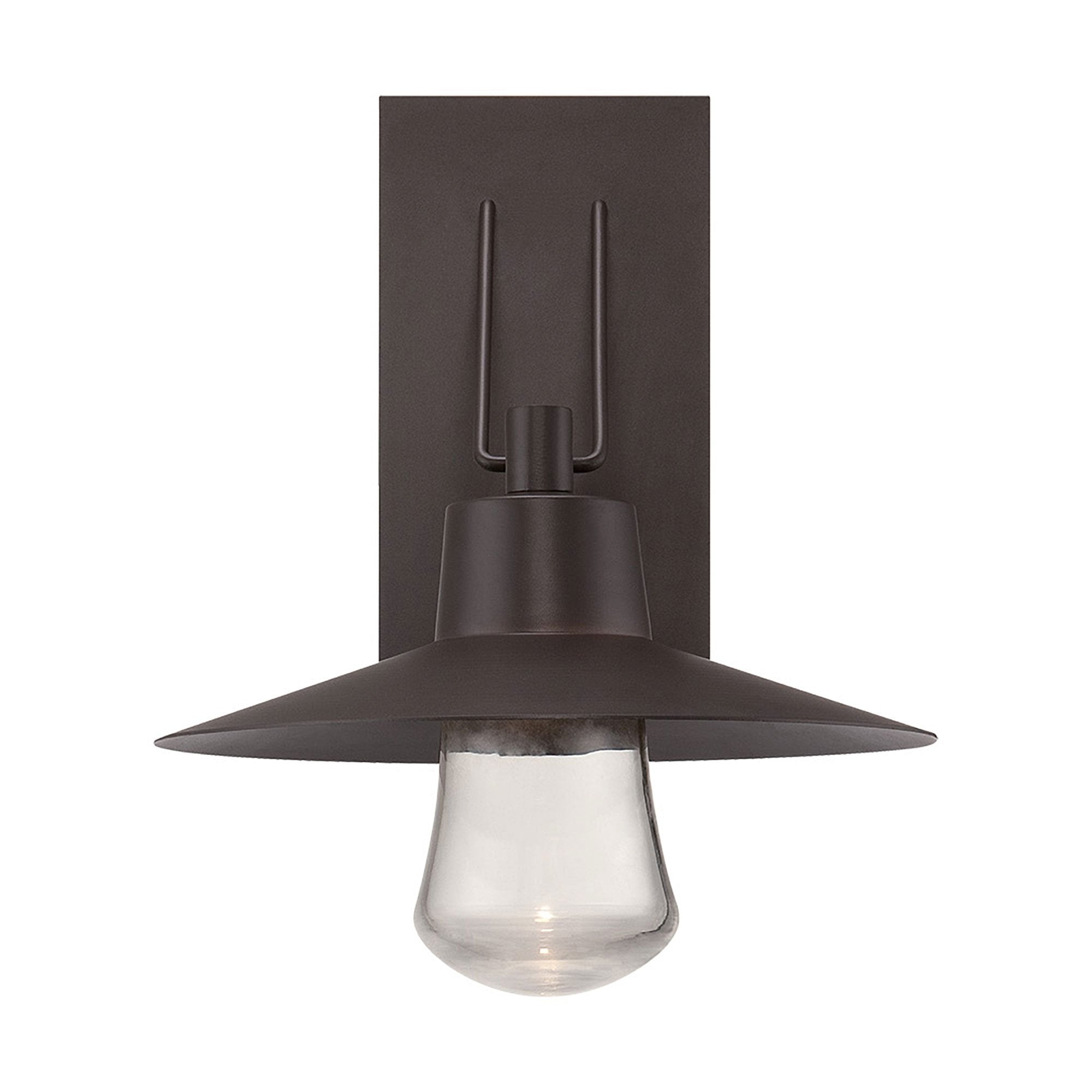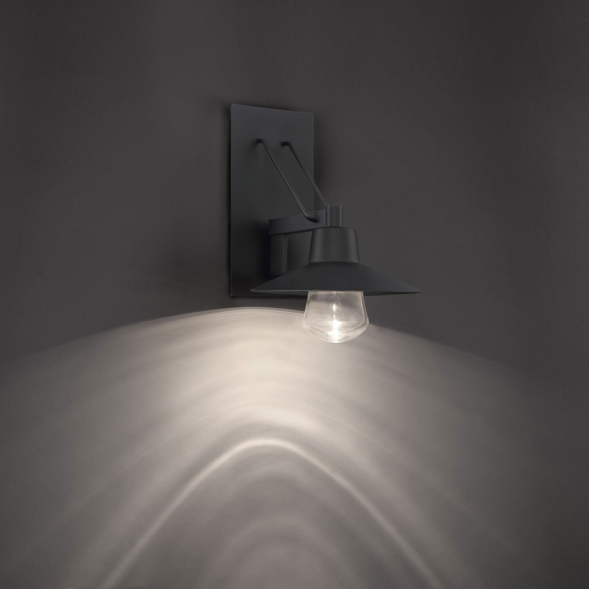 Lighten the mood in an exterior space with the farmhouse-industrial inspired Suspense Outdoor LED Wall Light from Modern Forms, offering a classic vintage theme and a metal hat shade offering an exposed bulb with energy-efficient lighting.