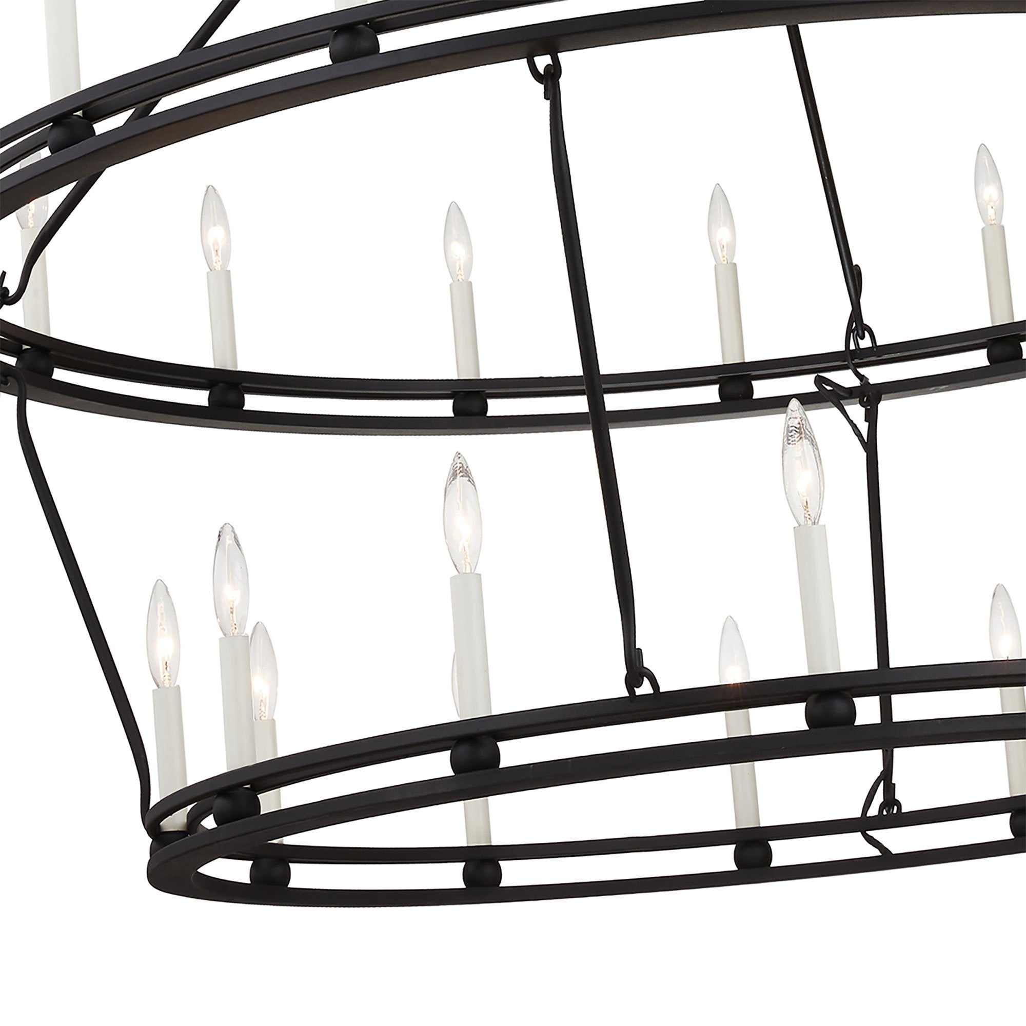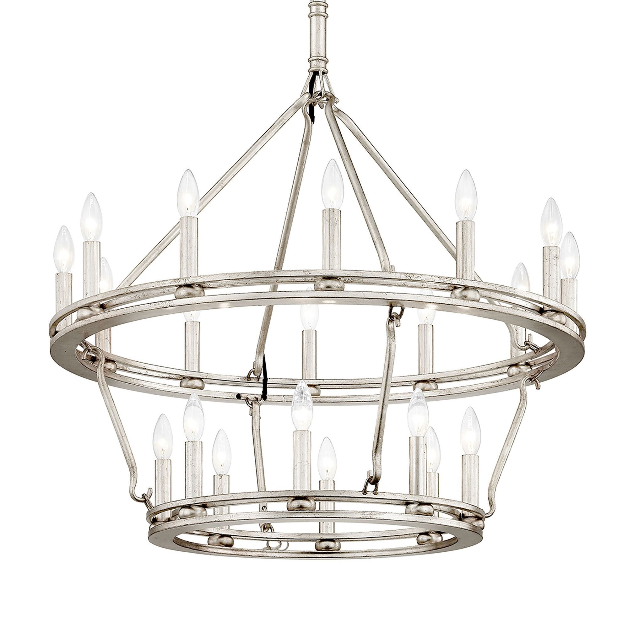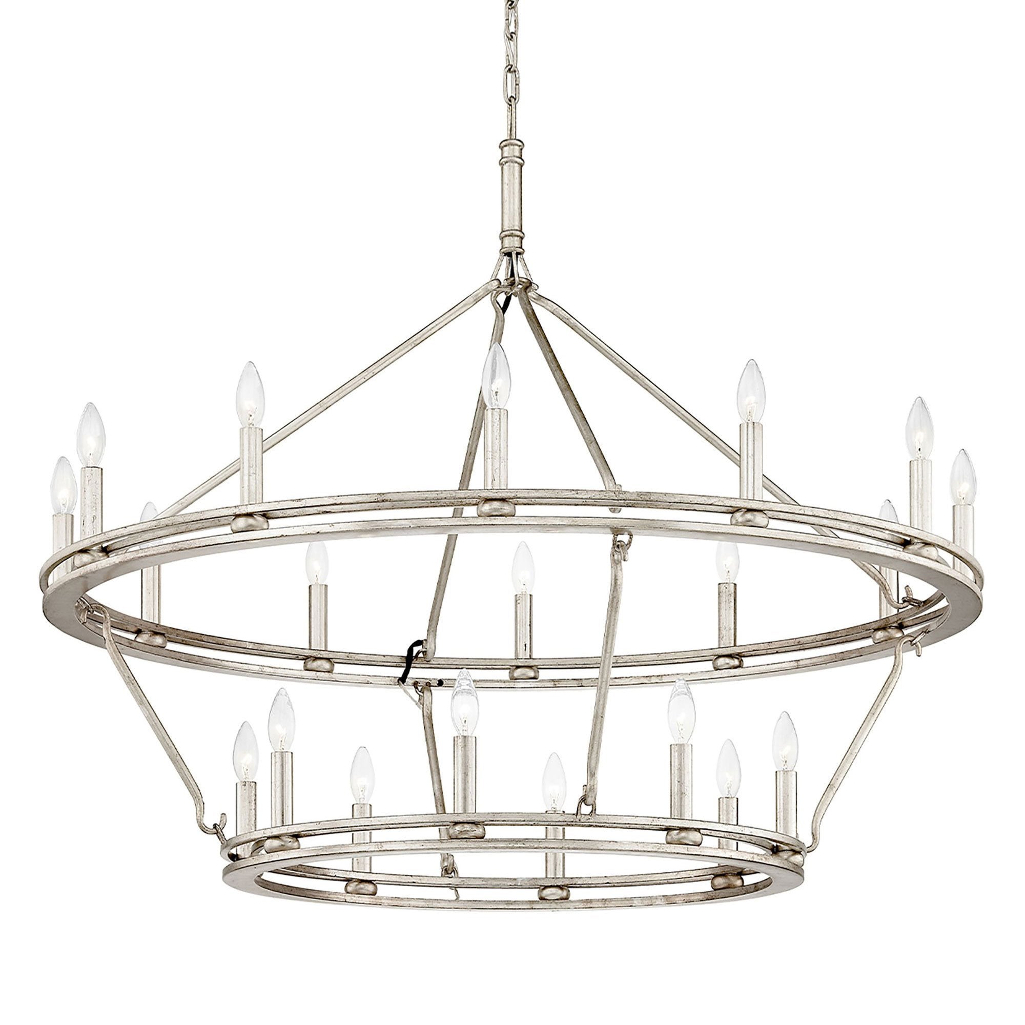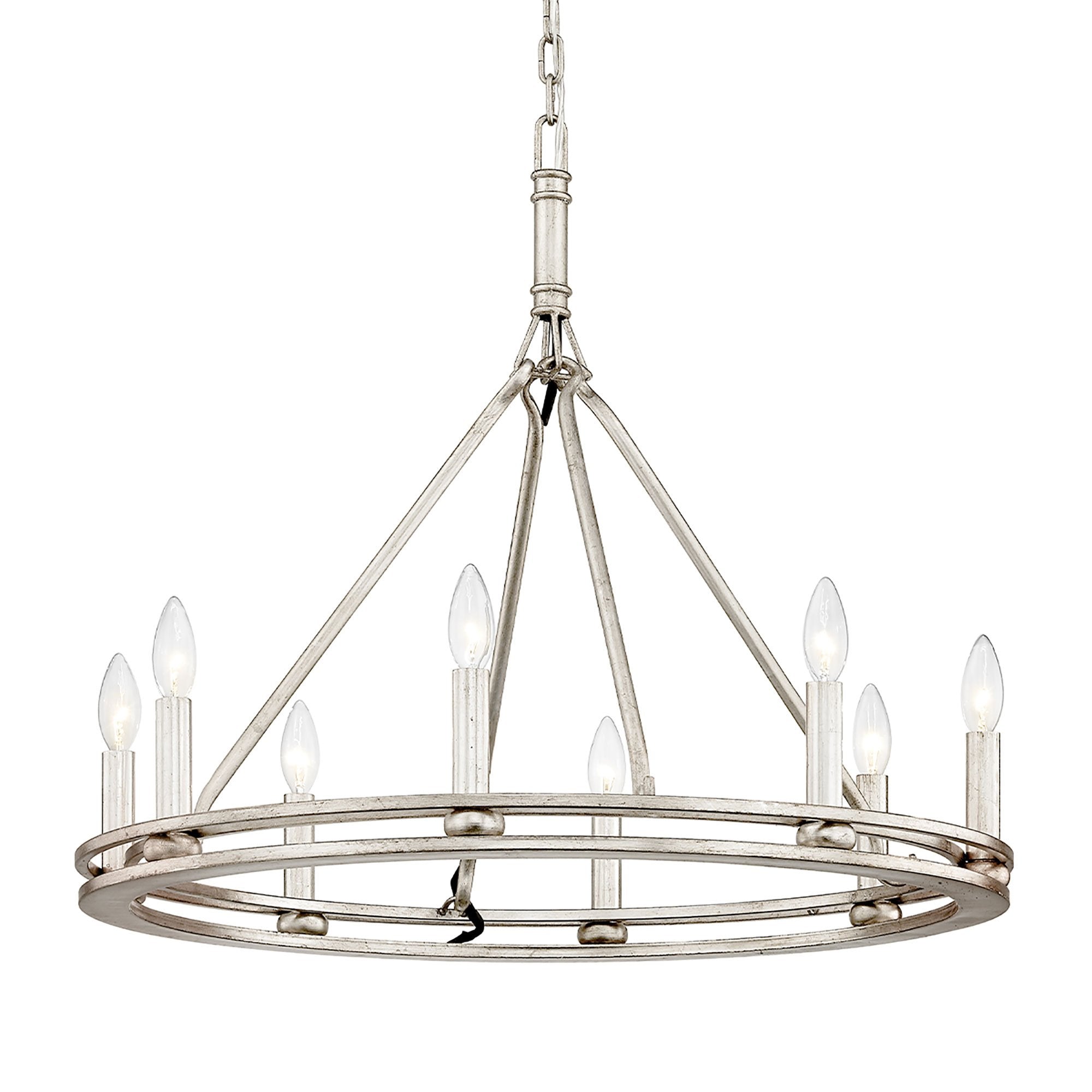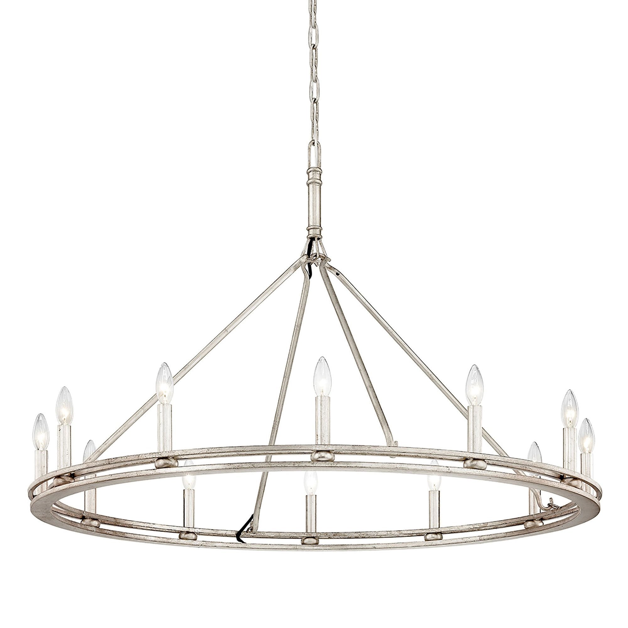 Light and airy, the Sutton Chandelier from Troy Lighting pairs a wagon wheel silhouette with unadorned candles for a simple, authentic look and feel.